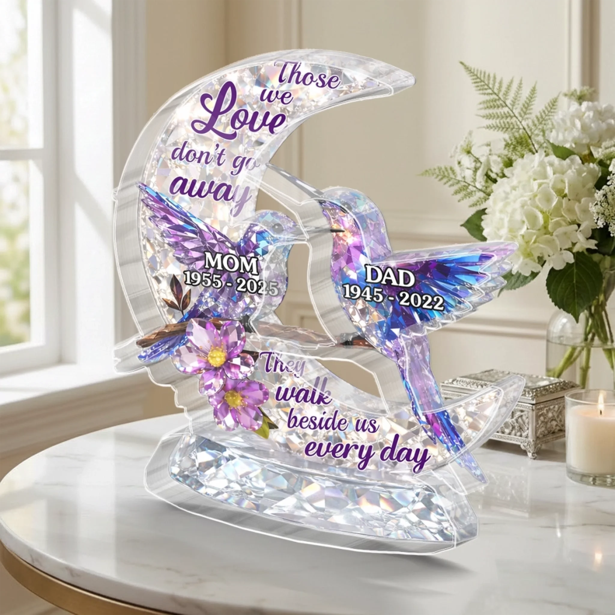 Custom Acrylic Plaque - Personalized Memorial Sympathy Gifts For Loss Of Mom, Dad - Love Never Dies
