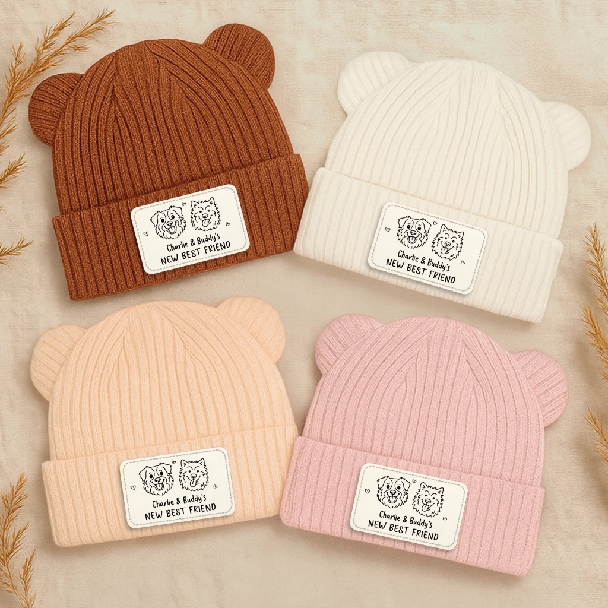 Custom Baby Beanie And Mittens Set - Personalized Baby Shower, Gender Reveal Gifts For New Moms, New Dads, New Parents, Dog Dad And Mom - A Tiny Spark Lights Our World