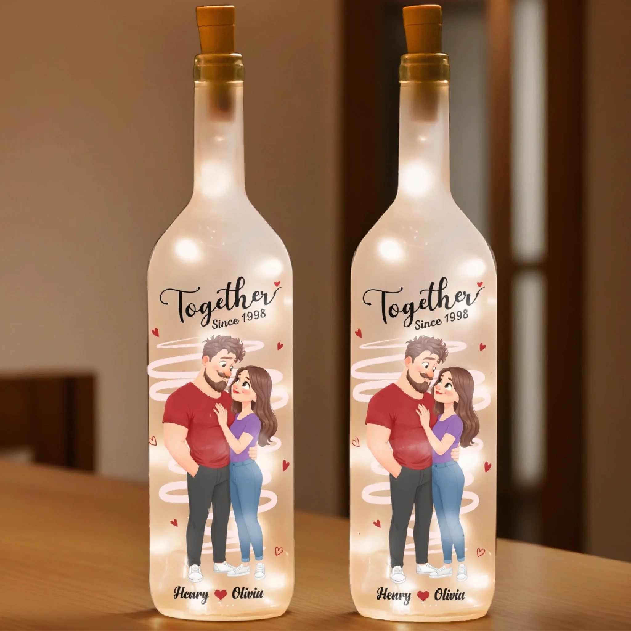 This bottle lamp is a unique and stylish decor item, blending sleek design with a soft, warm glow that brightens any space while adding a cozy, inviting touch. Perfect as a charming addition to your home, it radiates elegance and positivity. An ideal gift for anyone, suitable for all occasions: birthdays, holidays, anniversaries, graduations, Valentine's Day, Mother's Day, Father's Day, and just because! Whether for friends, family, or that special someone, this versatile gift is guaranteed to bring joy and make lasting memories.