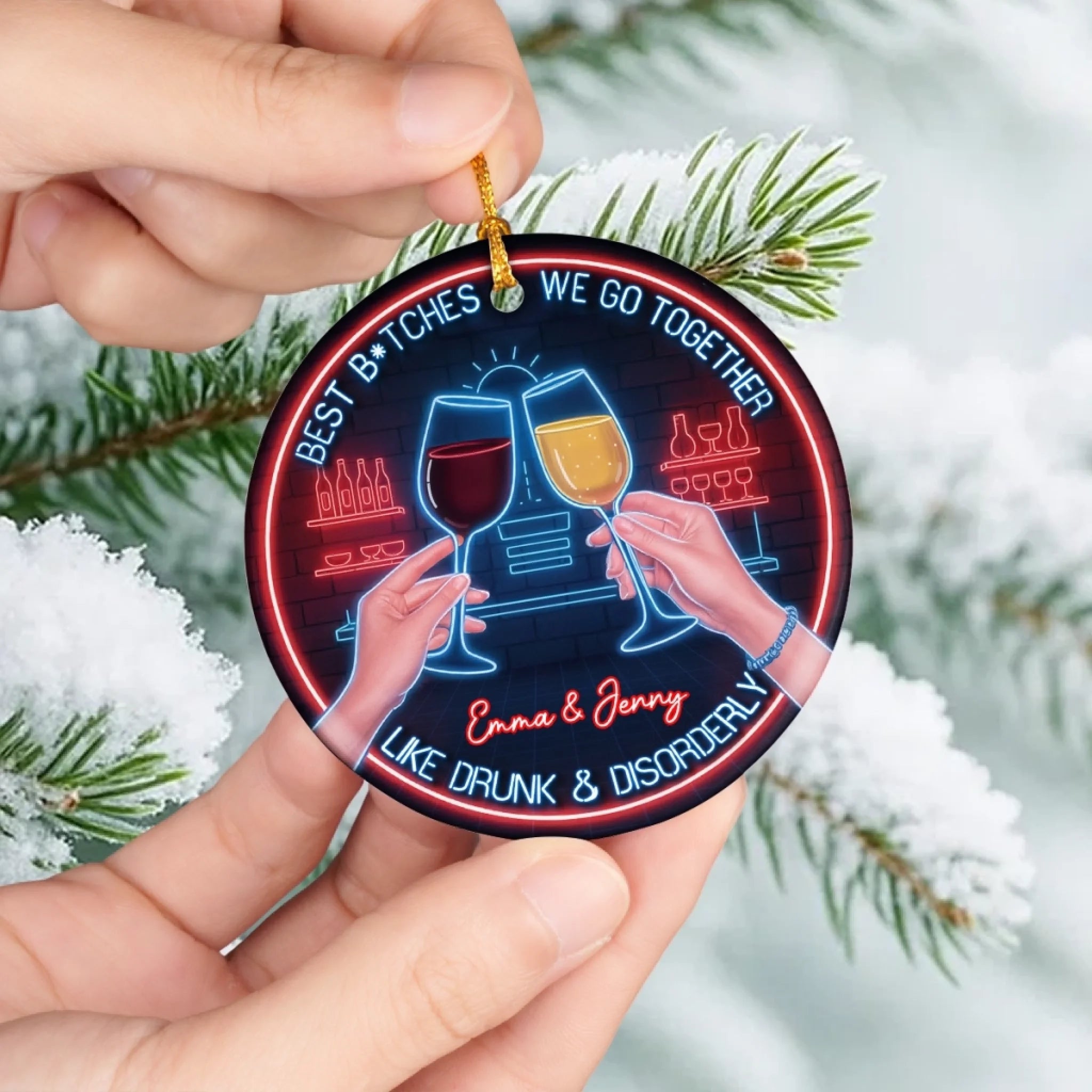 Custom Ceramic Ornament - Personalized Best Friend Christmas Birthday Gifts For Women, Besties, Sisters, BFF - Sparkles Shine Brighter With You