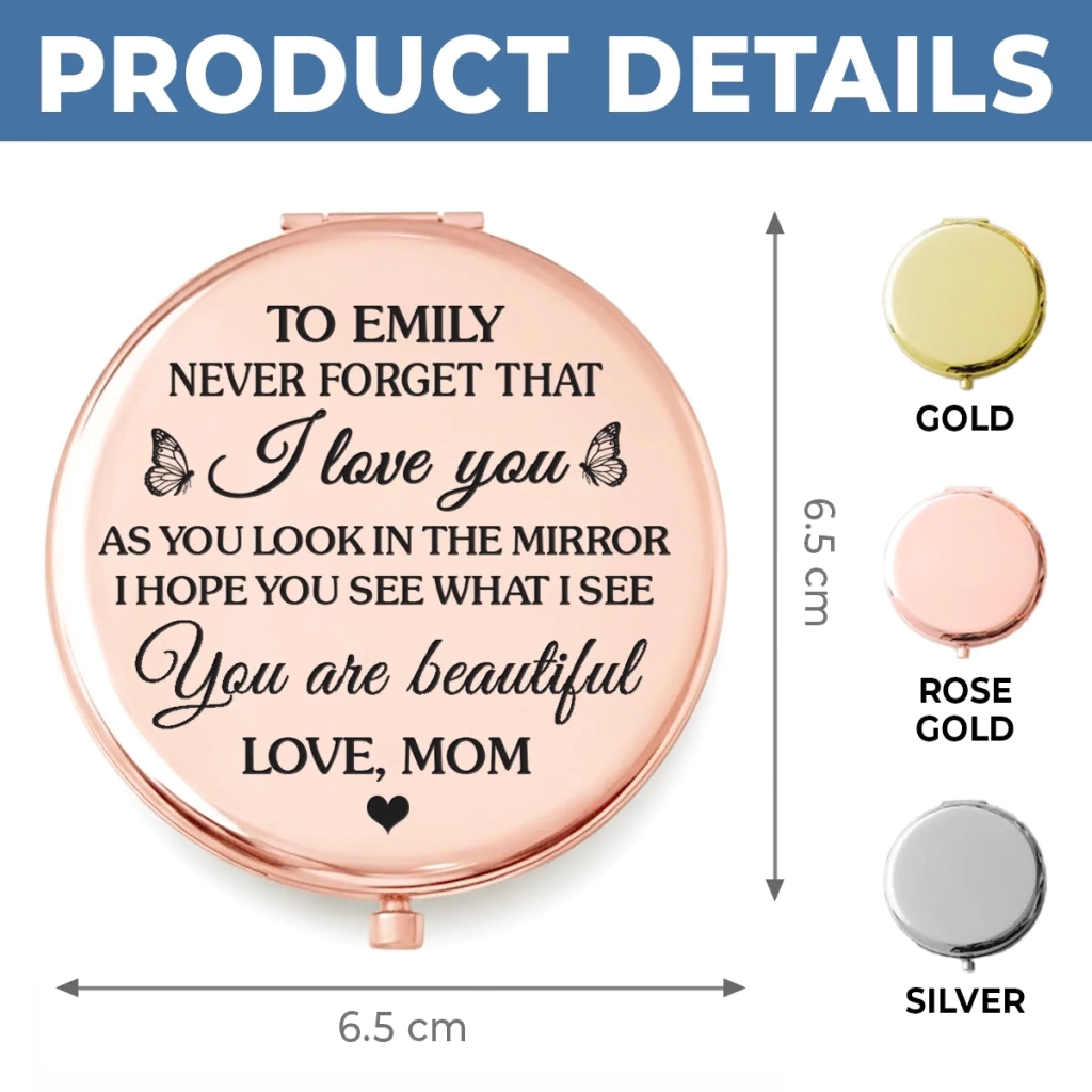 This compact mirror brings a subtle touch of elegance to everyday routines. Featuring a delicate floral design and a timeless look, it is a practical yet charming accessory to carry daily or a thoughtful gift for special moments. This is the perfect gift for anyone, suitable for all occasions: birthdays, holidays, anniversaries, graduations, Valentine’s Day, Mother’s Day, Father’s Day, and just because! Whether for friends, family, or that special someone, this versatile gift is guaranteed to bring joy and make lasting memories.