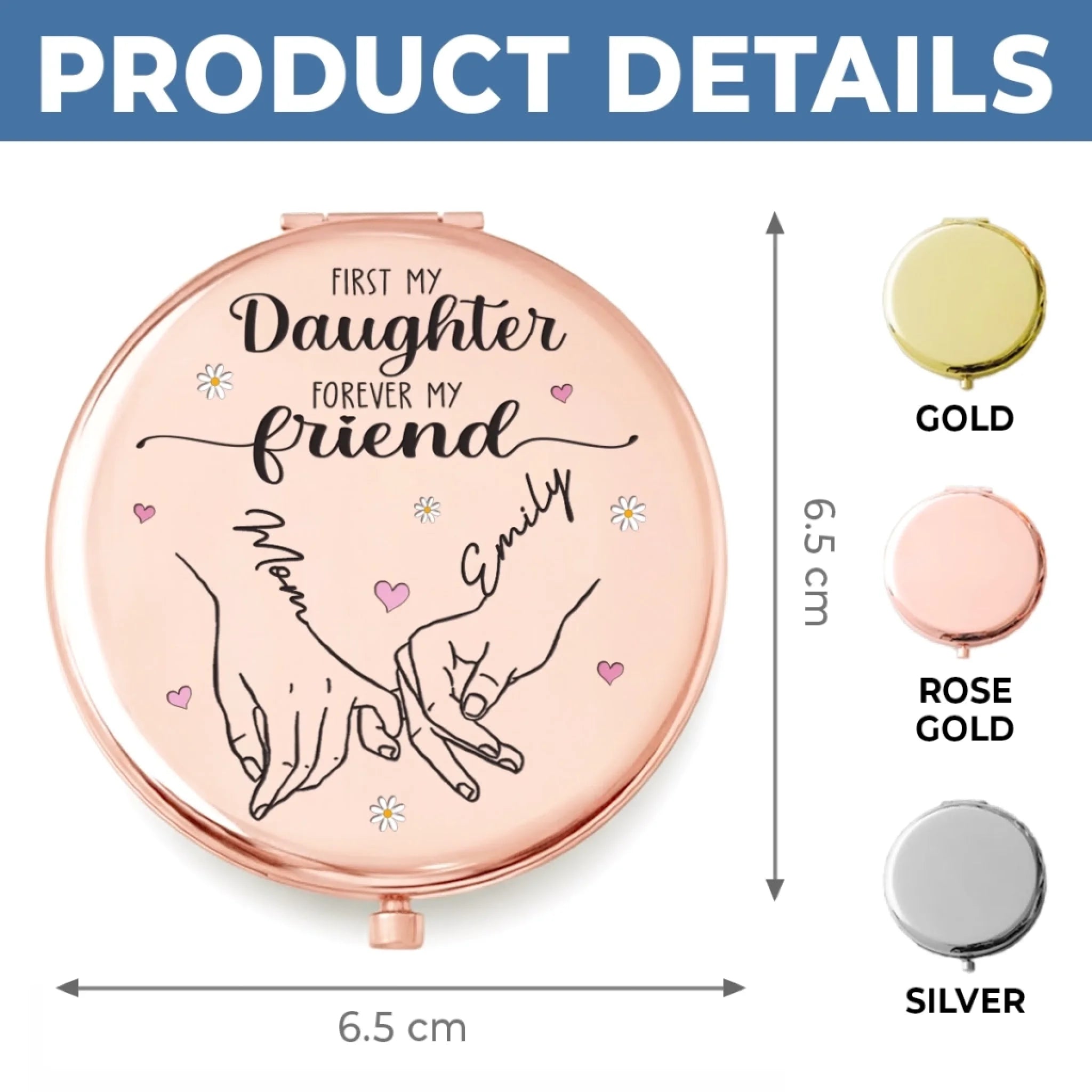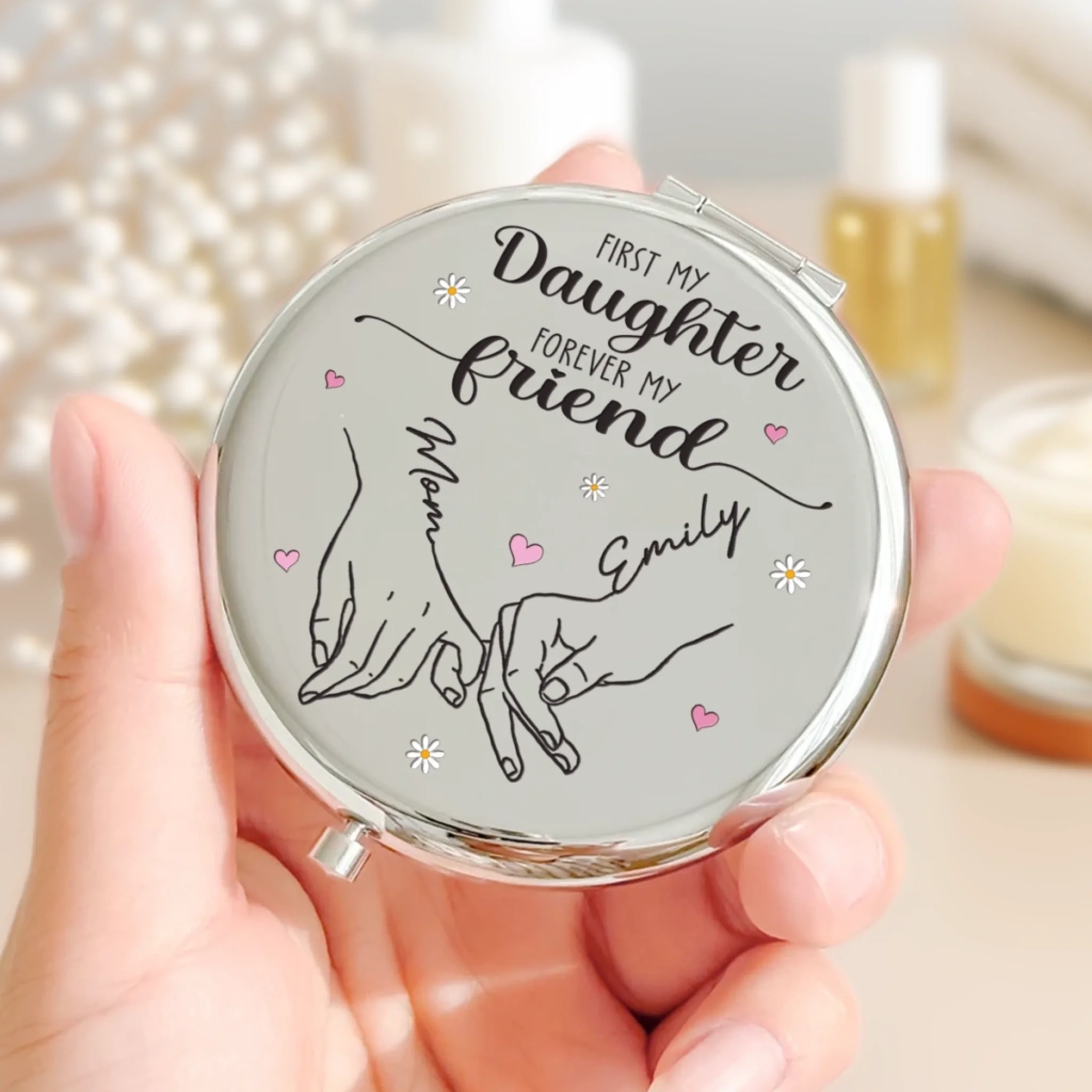 Custom Compact Mirror - Personalized Birthday Gifts For Mom, Daughter - Forever My Daughter, Always My Friend