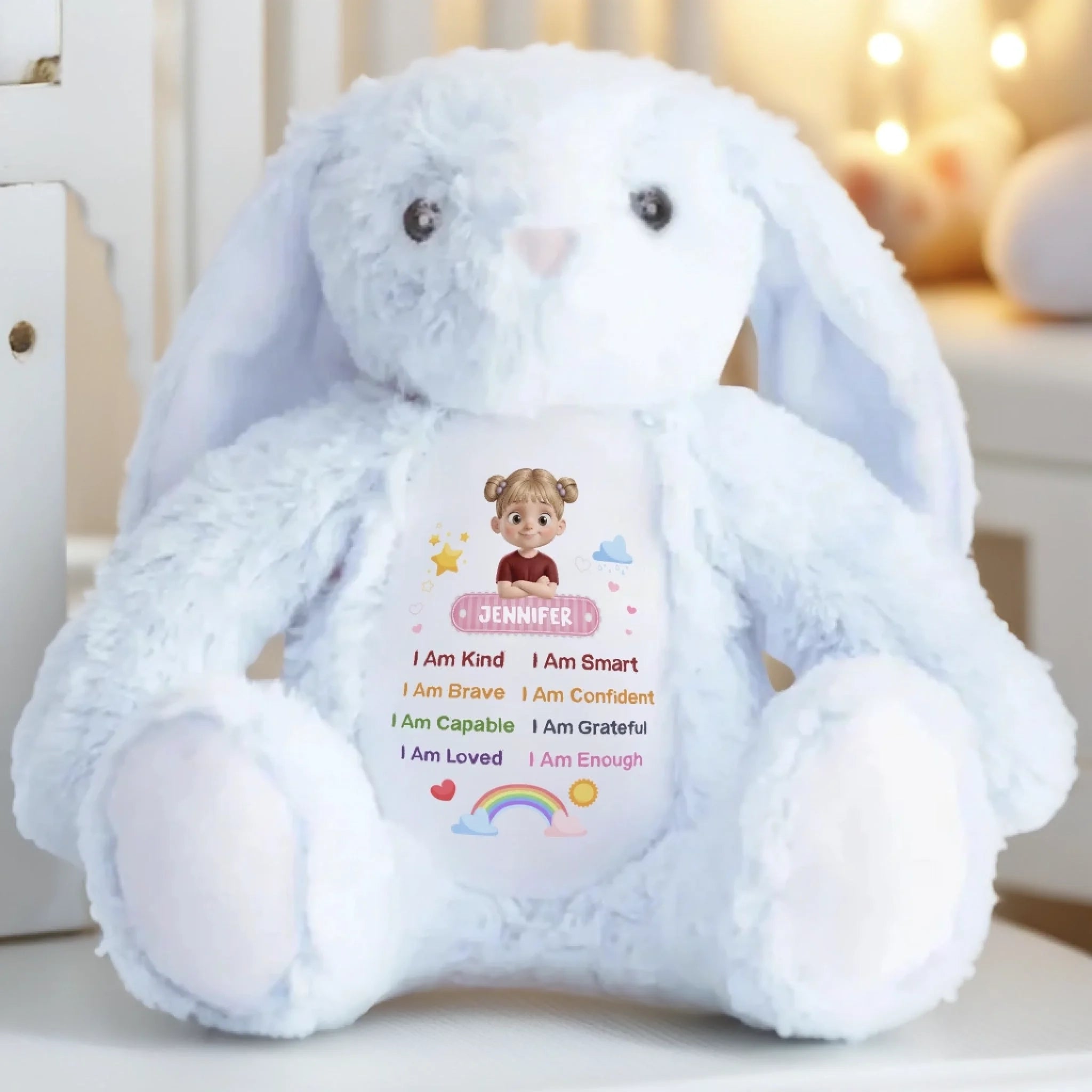 This adorable bunny plush is more than just a cuddly toy, it’s also a charming keepsake and a delightful decorative piece. With its classic rabbit design and irresistibly soft feel, it brings warmth and a sentimental touch. Whether placed anywhere in your home, this bunny adds a timeless charm that makes every moment extra special. This is the perfect gift for anyone, suitable for all occasions: birthdays, holidays, anniversaries, graduations, Valentine's Day, Mother's Day, Father's Day, and just because! Whether for friends, family, or that special someone, this versatile gift is guaranteed to bring joy and make lasting memories.