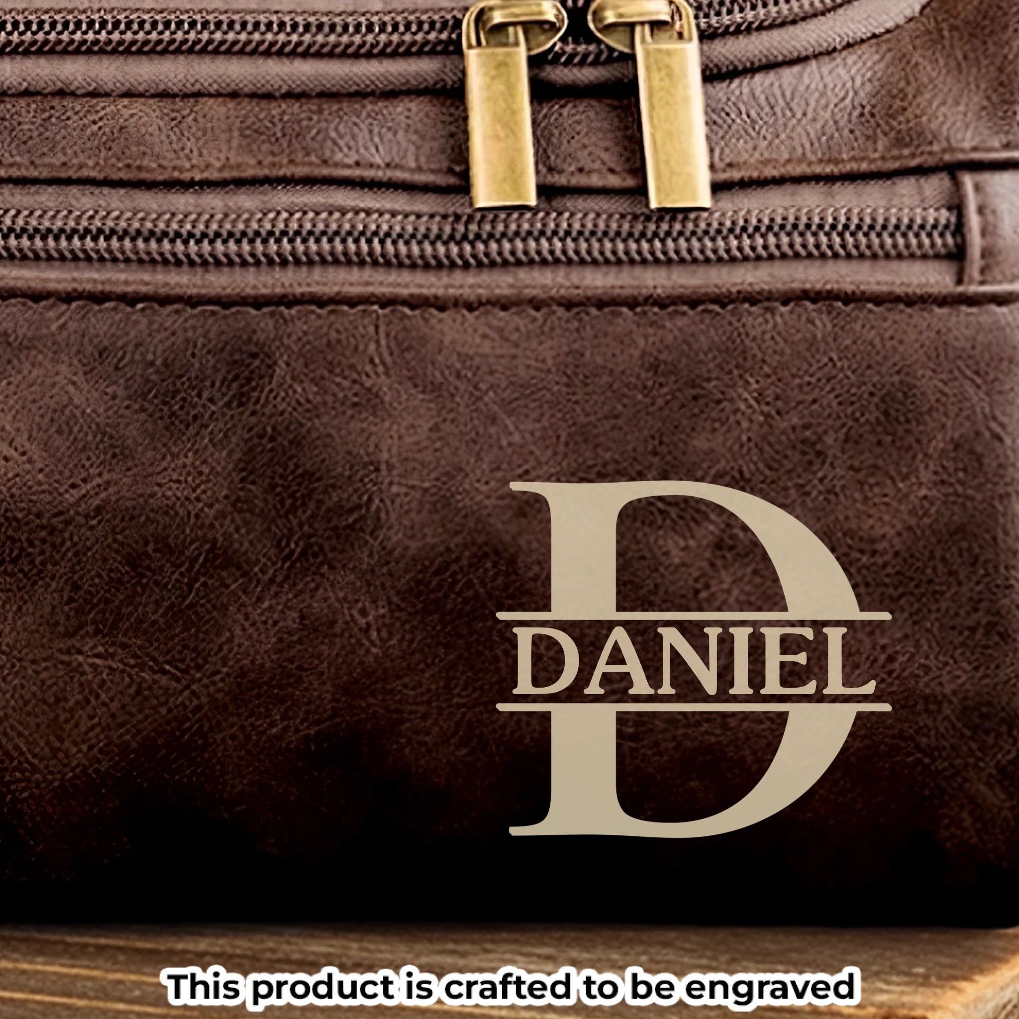 Custom Engraved Leather Toiletry Bag - Personalized Birthday Gifts For Dad, Brother, Grandpa, Husband - For The Man Who’s Always On The Move