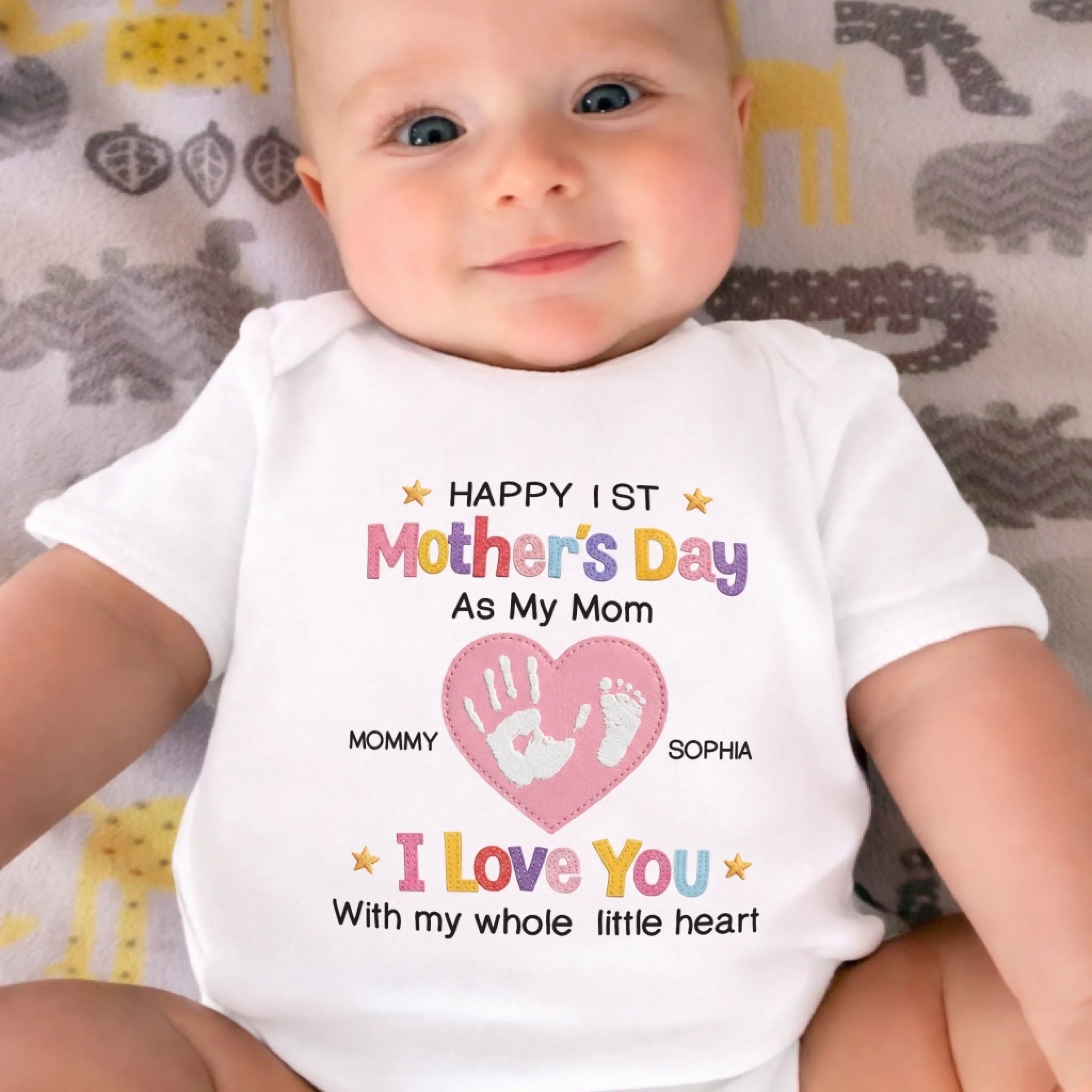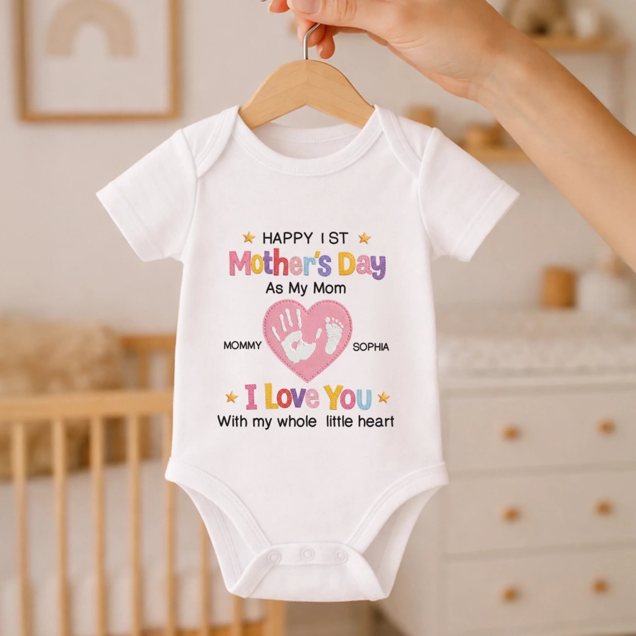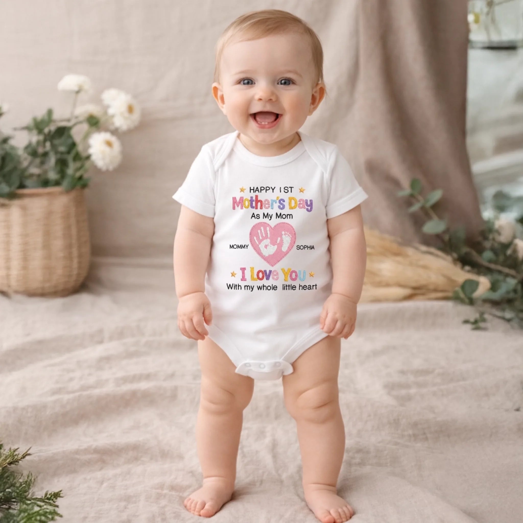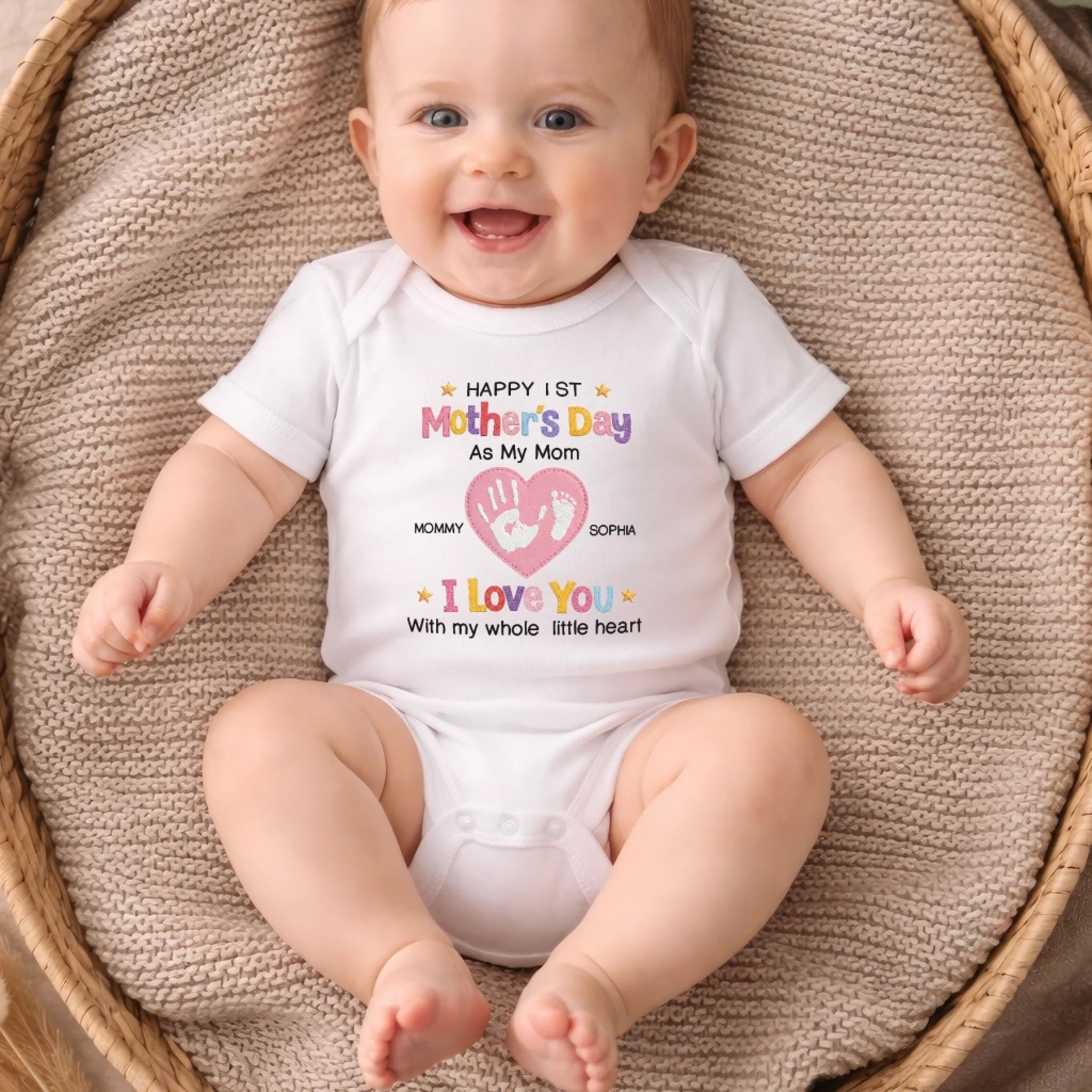Custom First Mother's Day Baby Onesie - Personalized Baby Shower, Gender Reveal Gifts For New Moms, New Parents - Love You With My Whole Little Heart