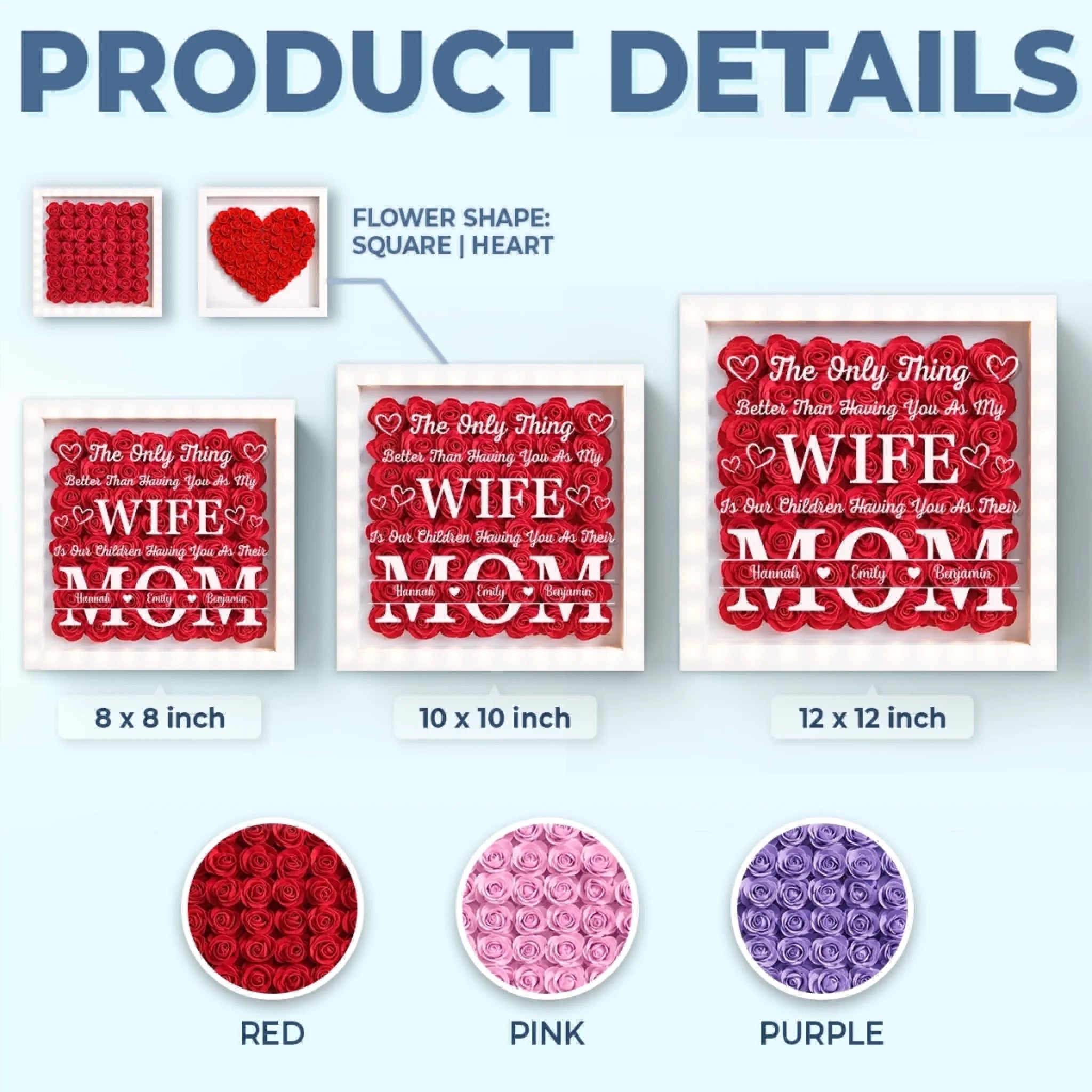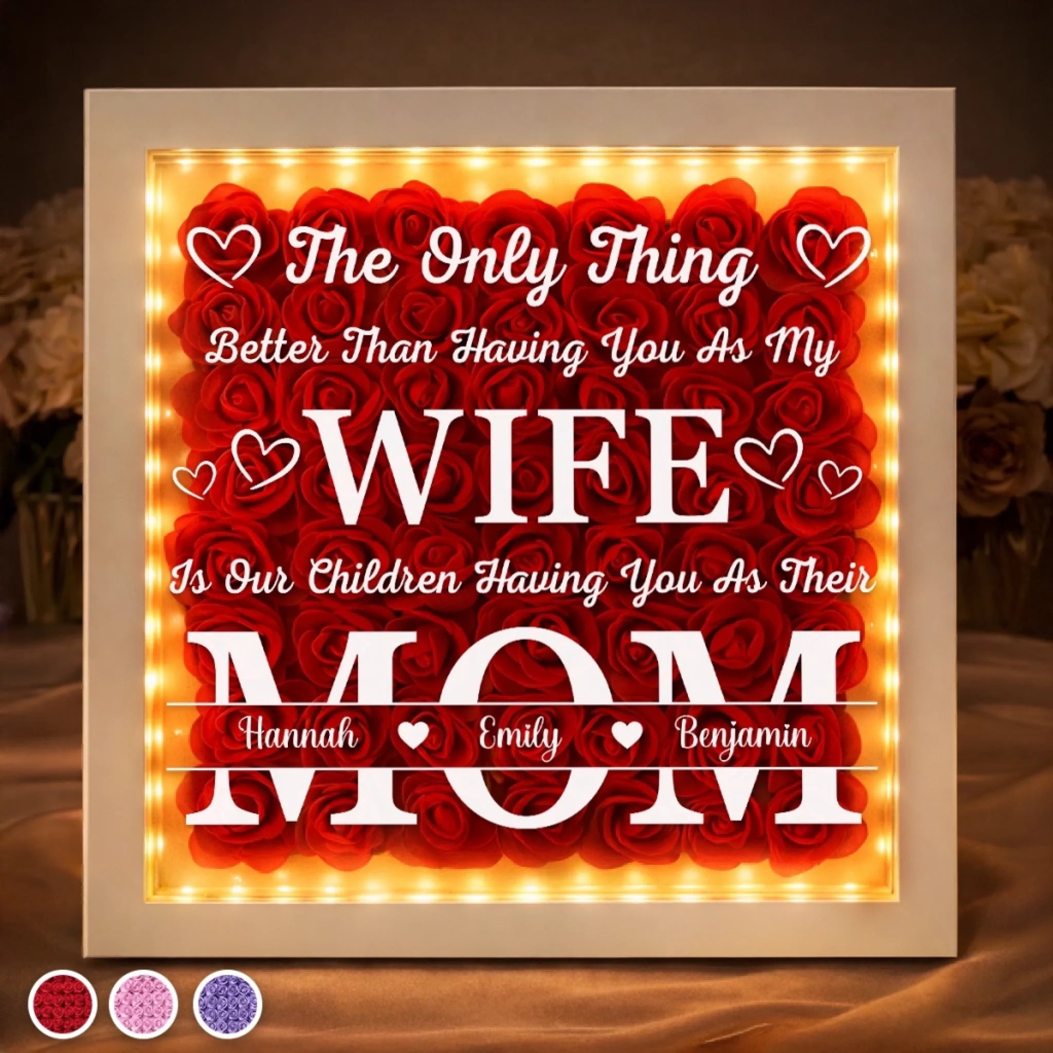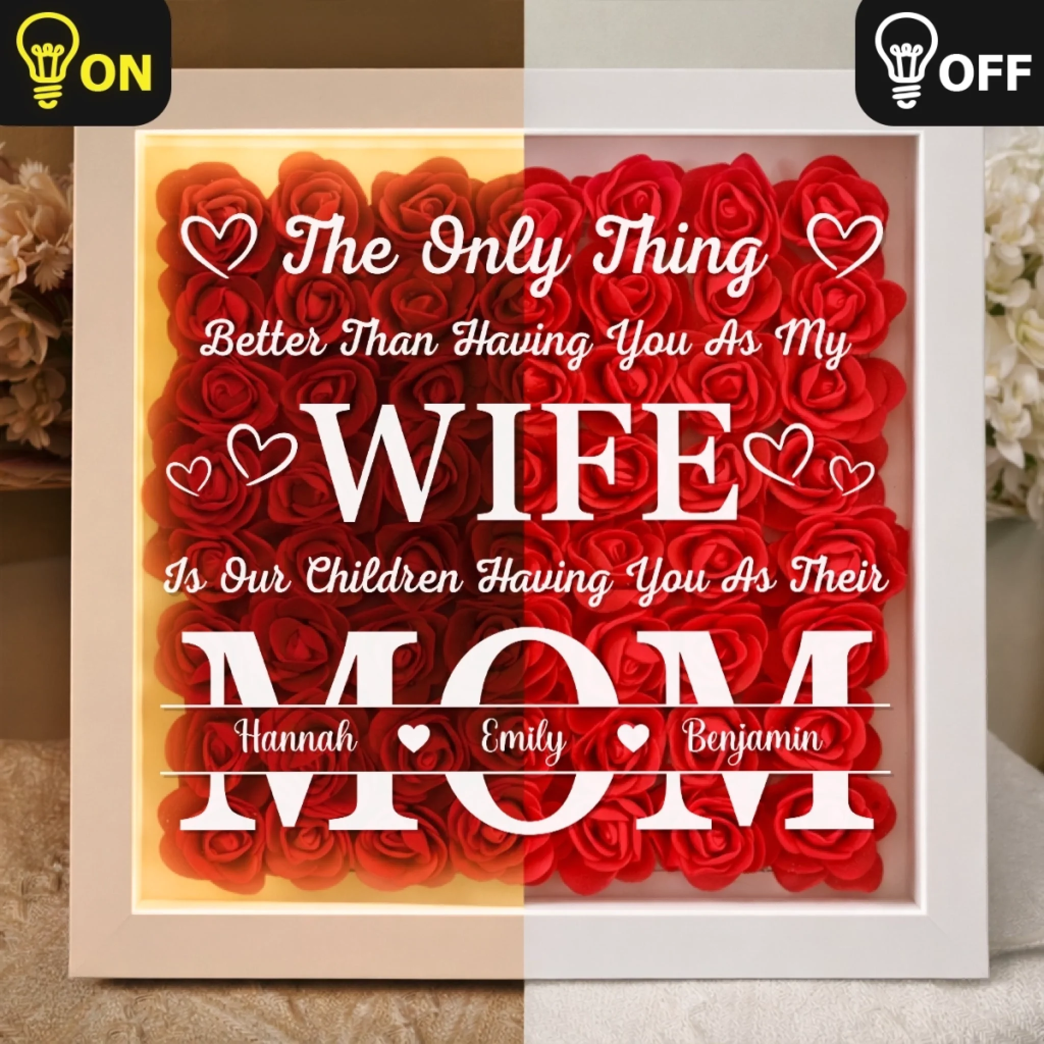 Packaging includes: 1 flower shadow box with built-in LED light.