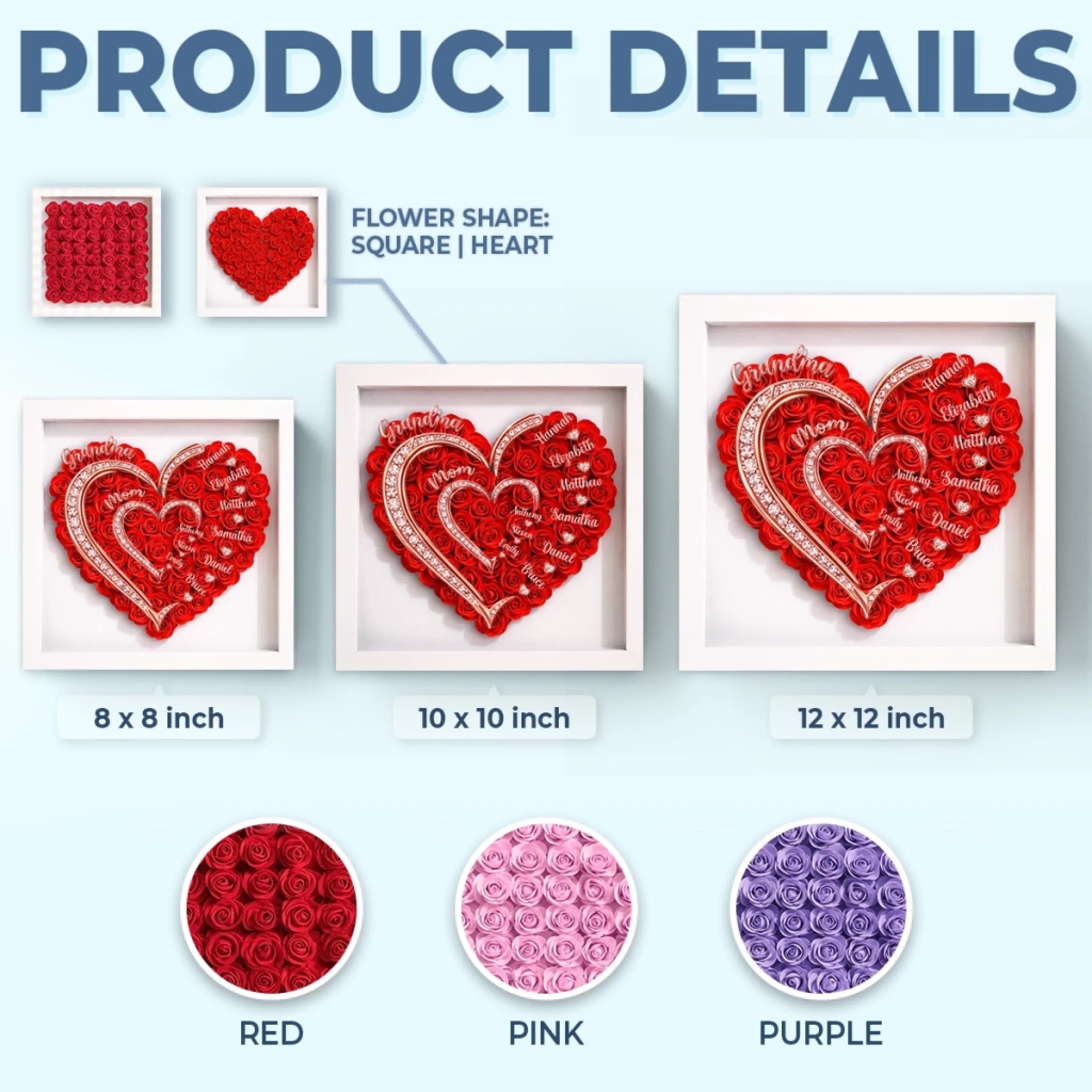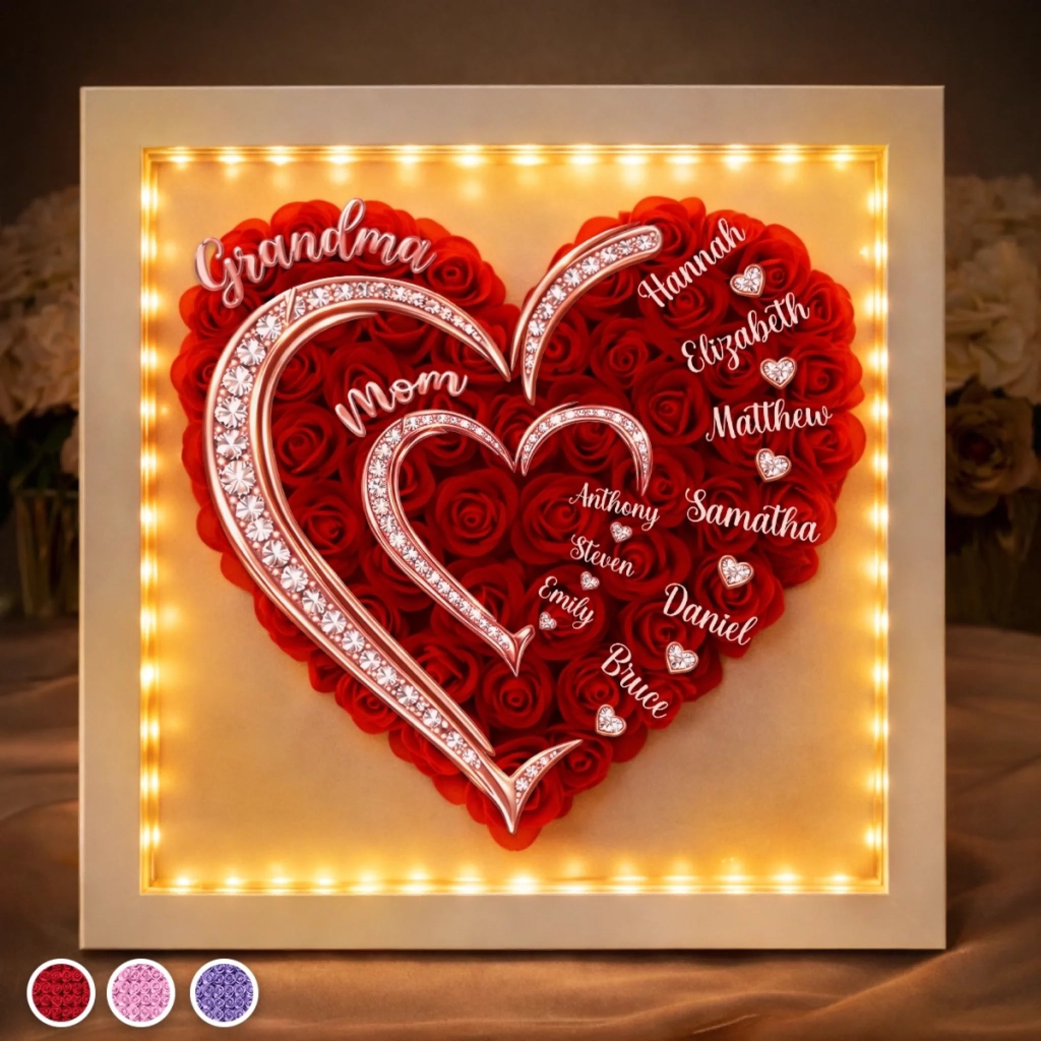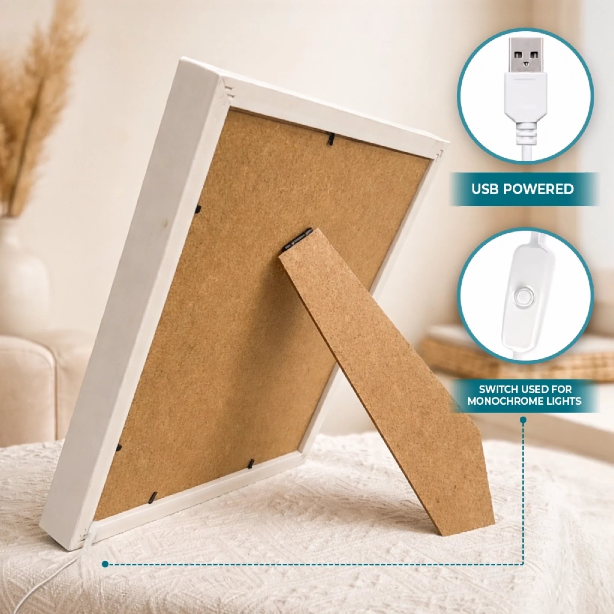 Packaging includes: 1 flower shadow box with built-in LED light.