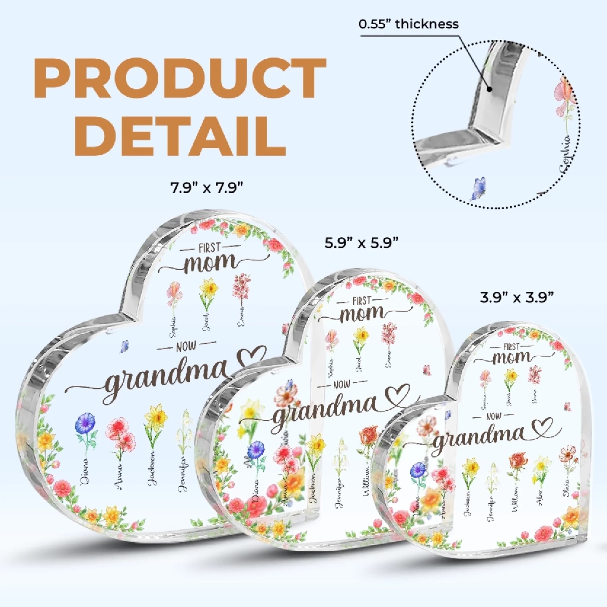 Material: Made of premium acrylic, thickness 0.55 in (1.4 cm).