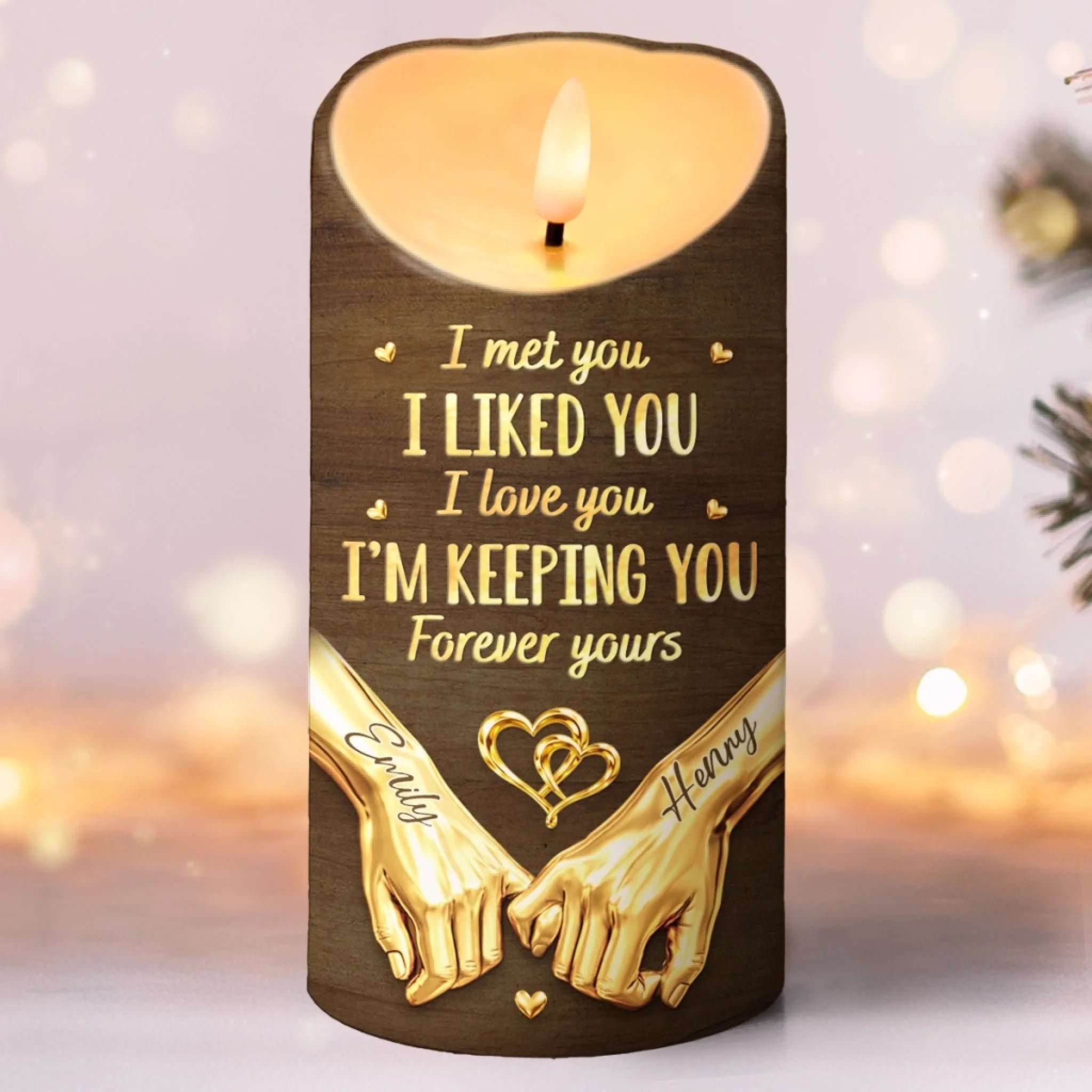 Custom LED Candle - Personalized Anniversary Wedding Gifts For Husband And Wife, Him And Her - Forever Starts With Us