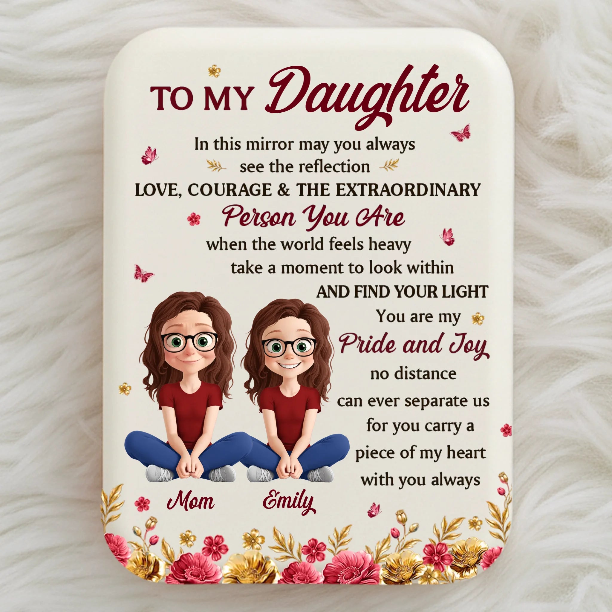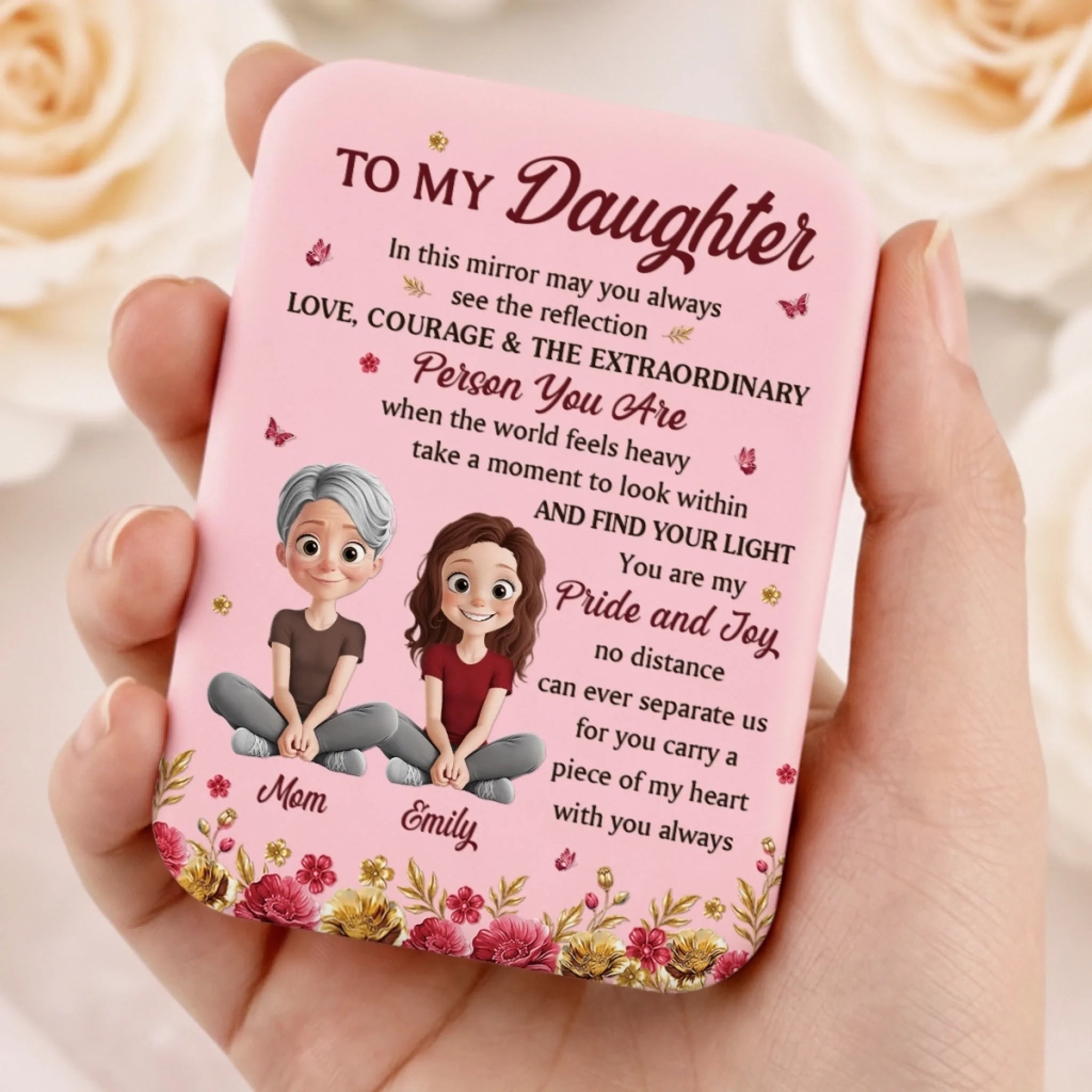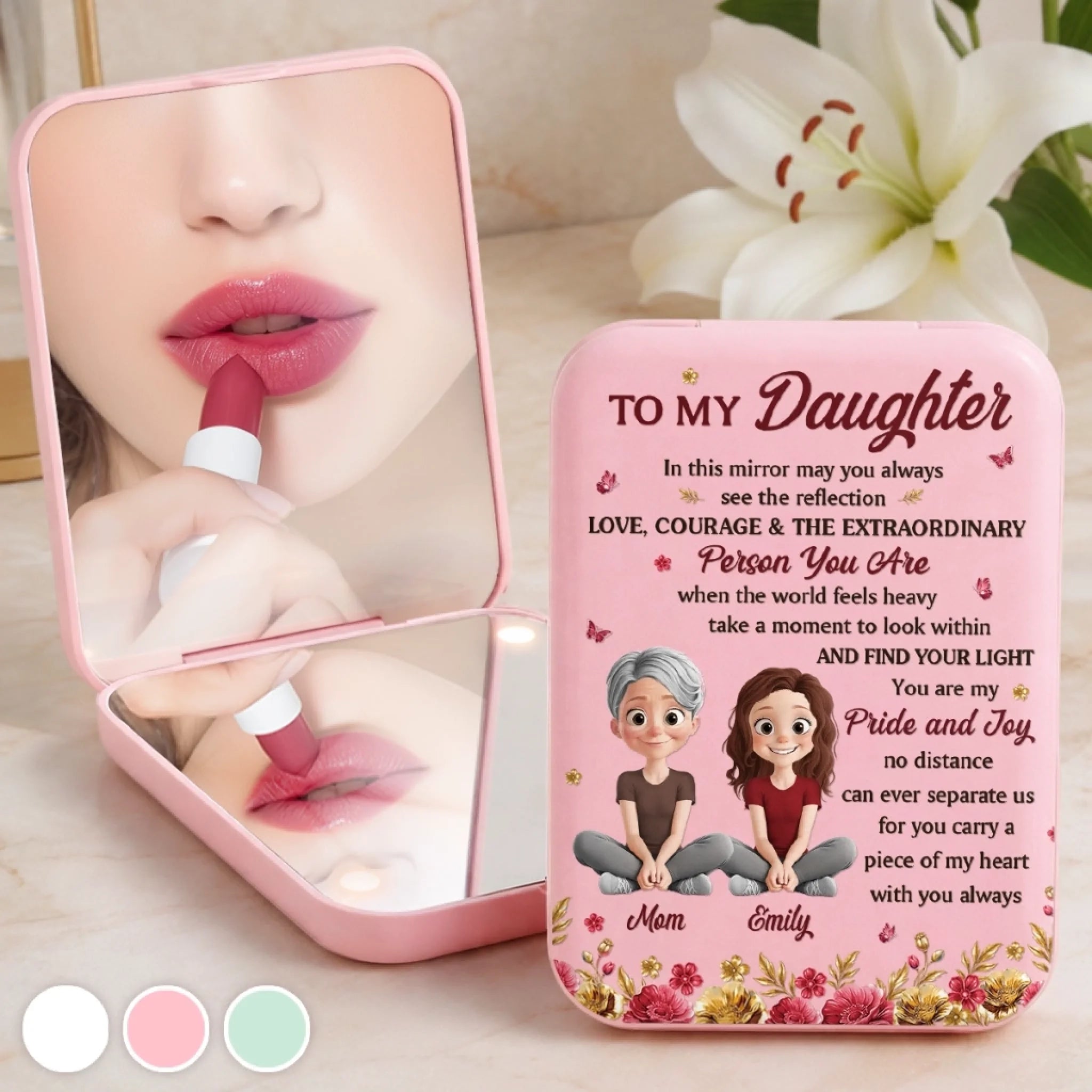 Custom LED Compact Makeup Mirror - Personalized Birthday Gifts For Daughter, Granddaughter - Daughter Makes Me Smile
