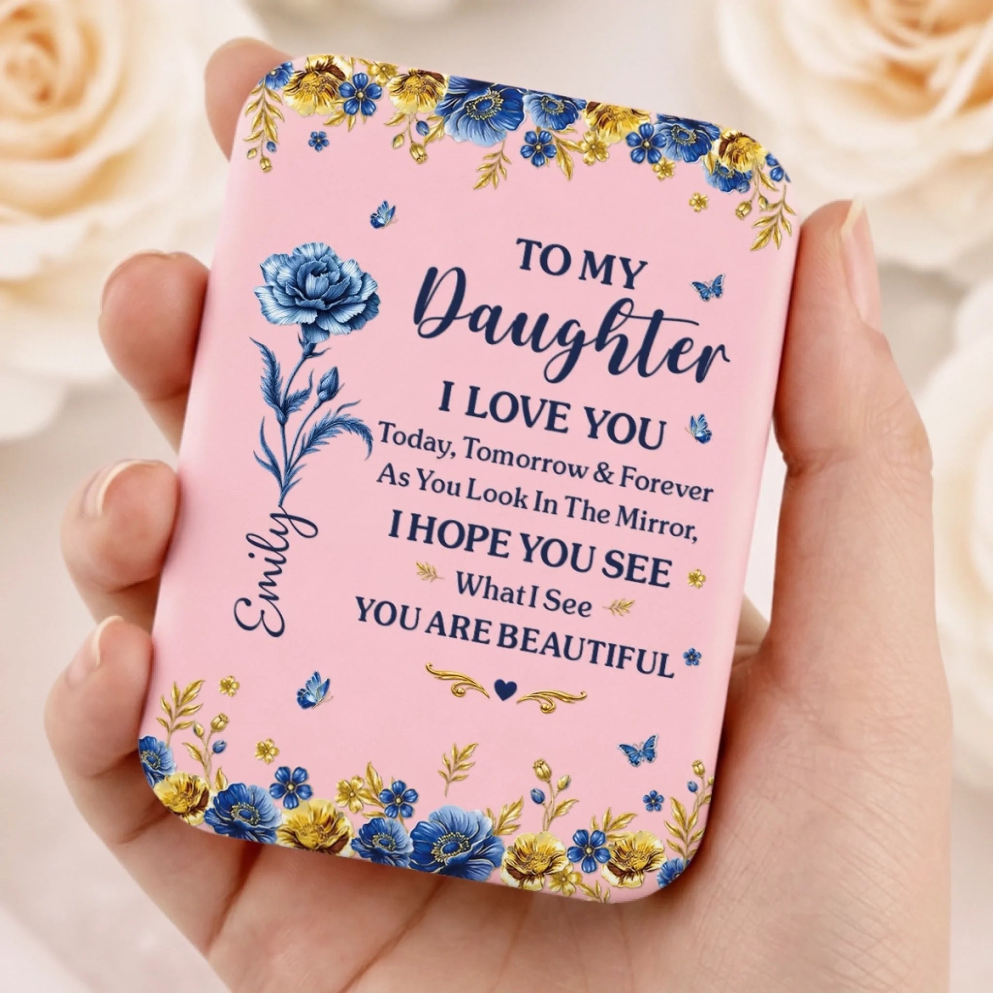 This LED compact makeup mirror is a stylish and practical accessory designed for everyday beauty routines. Compact enough to fit easily in a handbag or travel pouch, it’s a thoughtful piece that combines function with a warm, meaningful design. This is the perfect gift for anyone, suitable for all occasions: birthdays, holidays, anniversaries, graduations, Valentine's Day, Mother's Day, Father's Day, and just because! Whether for friends, family, or that special someone, this versatile gift is guaranteed to bring joy and make lasting memories.