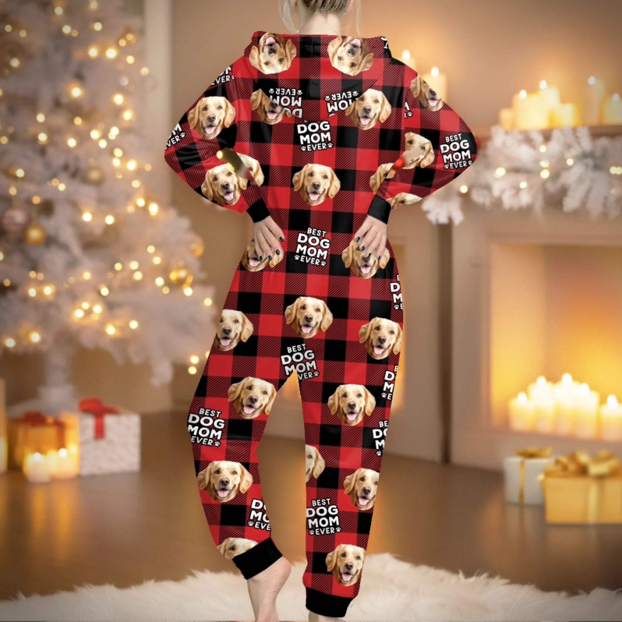 Custom Photo Adult Onesie - Personalized Christmas Birthday Gifts For Dog Cat Lovers, Dog Dad And Mom, Cat Owners - Fleece Navidad