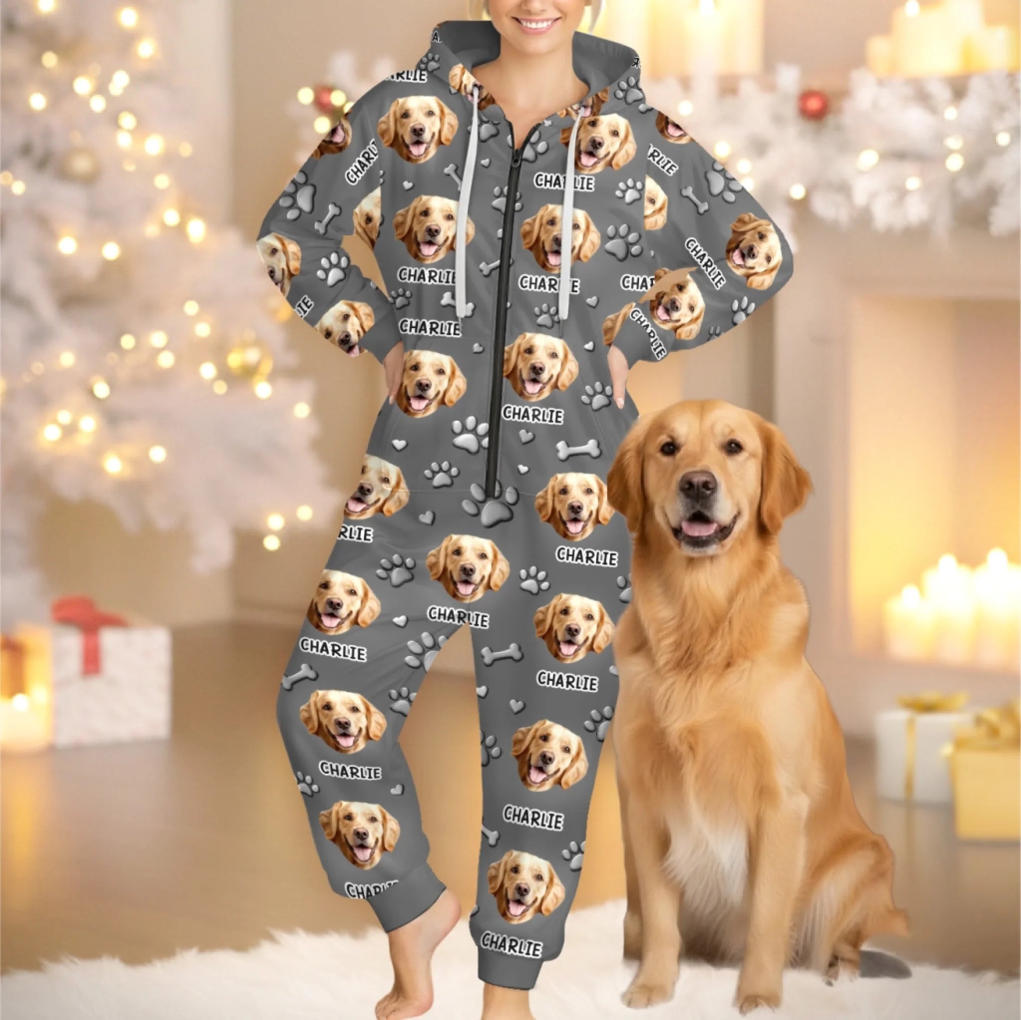 Custom Photo Adult Onesie - Personalized Christmas Birthday Gifts For Dog Cat Lovers, Dog Dad And Mom, Cat Owners - Me And My Dog, The Real Couple Goals
