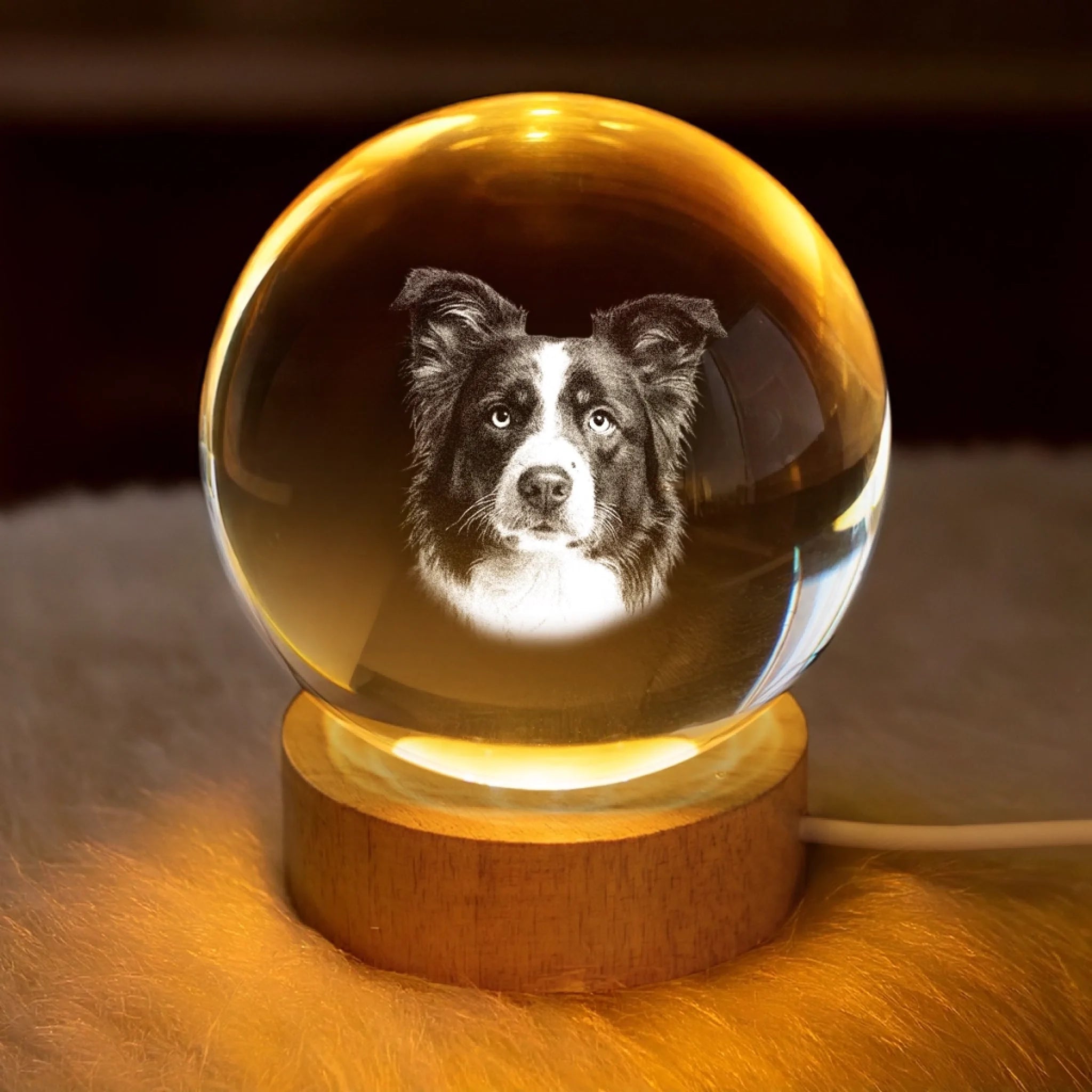 Custom Photo Crystal Globe Lamp - Personalized Pet Memorial Sympathy Gifts For Dogs, Cats - Light Carries Your Spirit