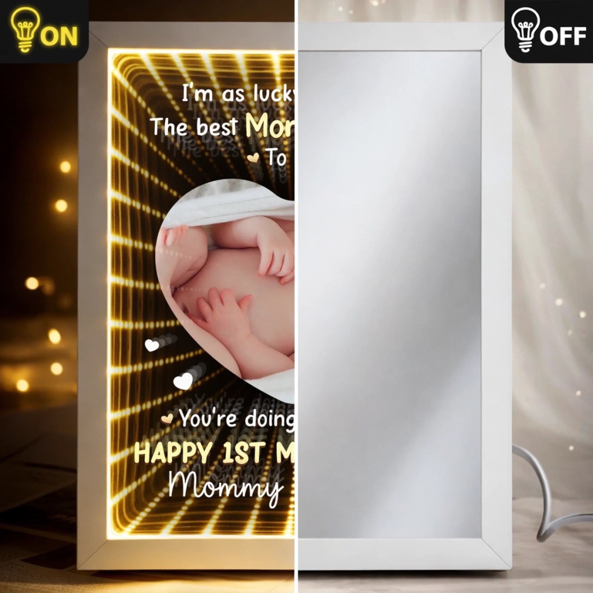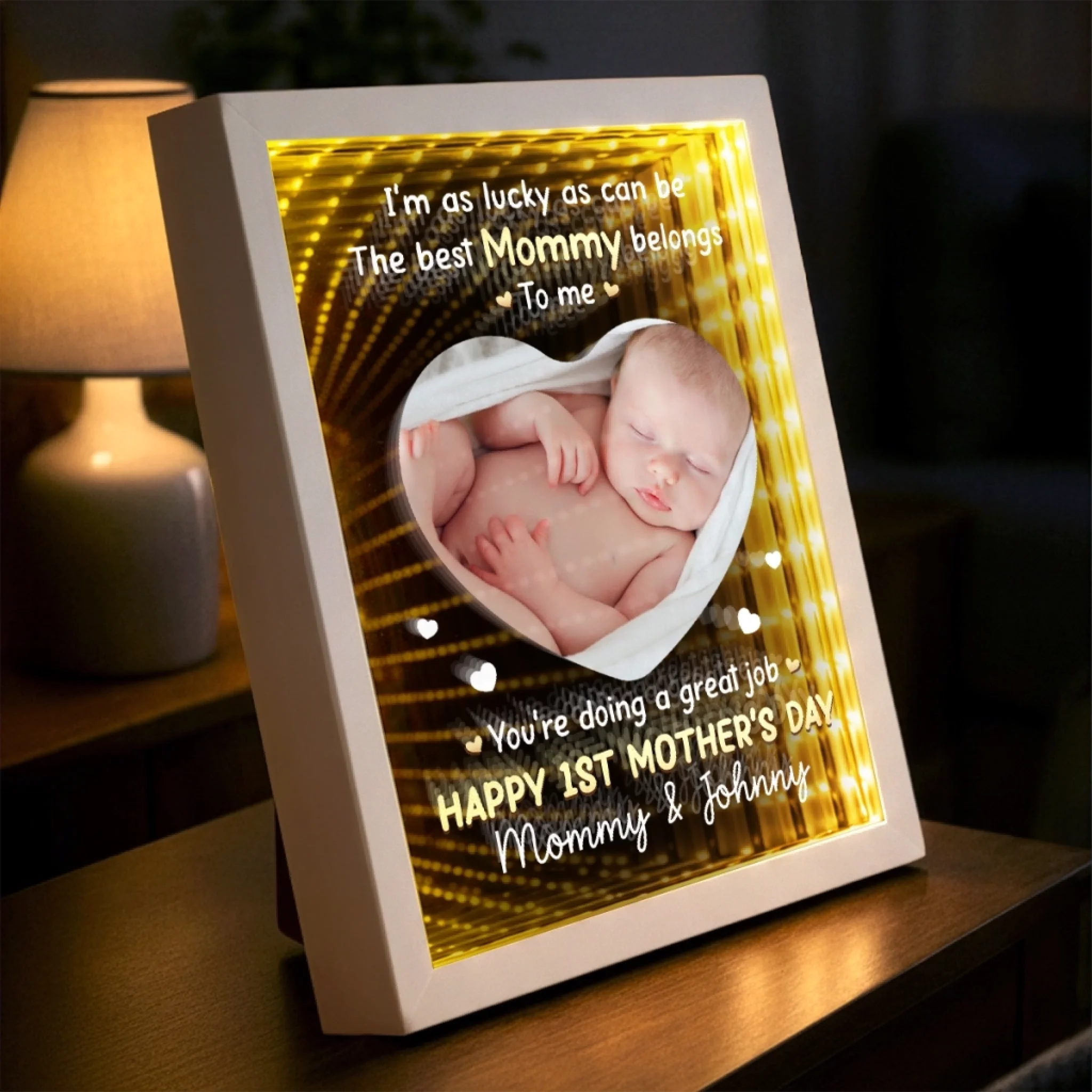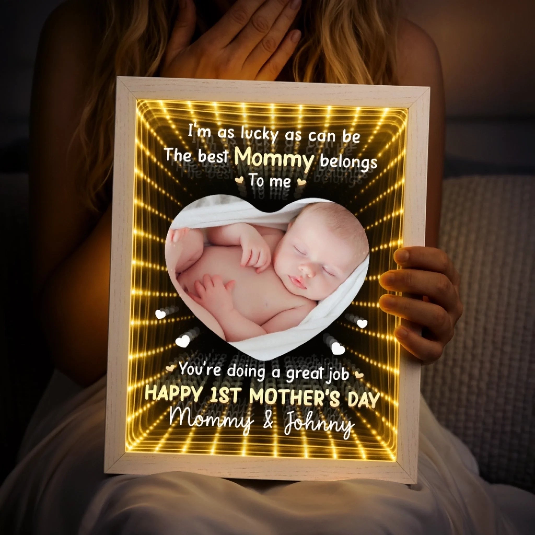 Custom Photo Infinity Mirror Light Box - Personalized Mother's Day Baby Shower, Gender Reveal Gifts For New Moms - First Mother’s Day Together