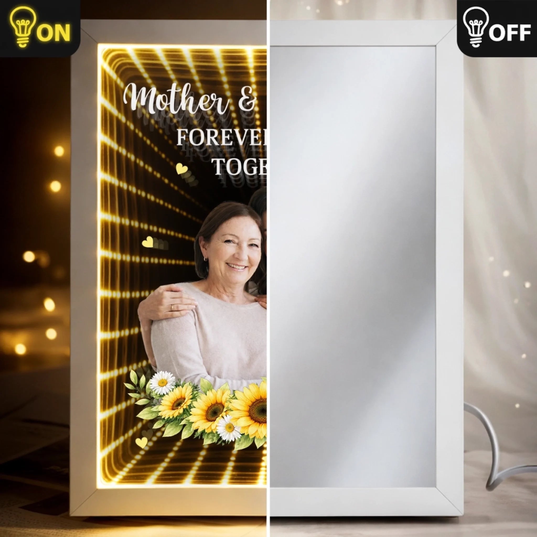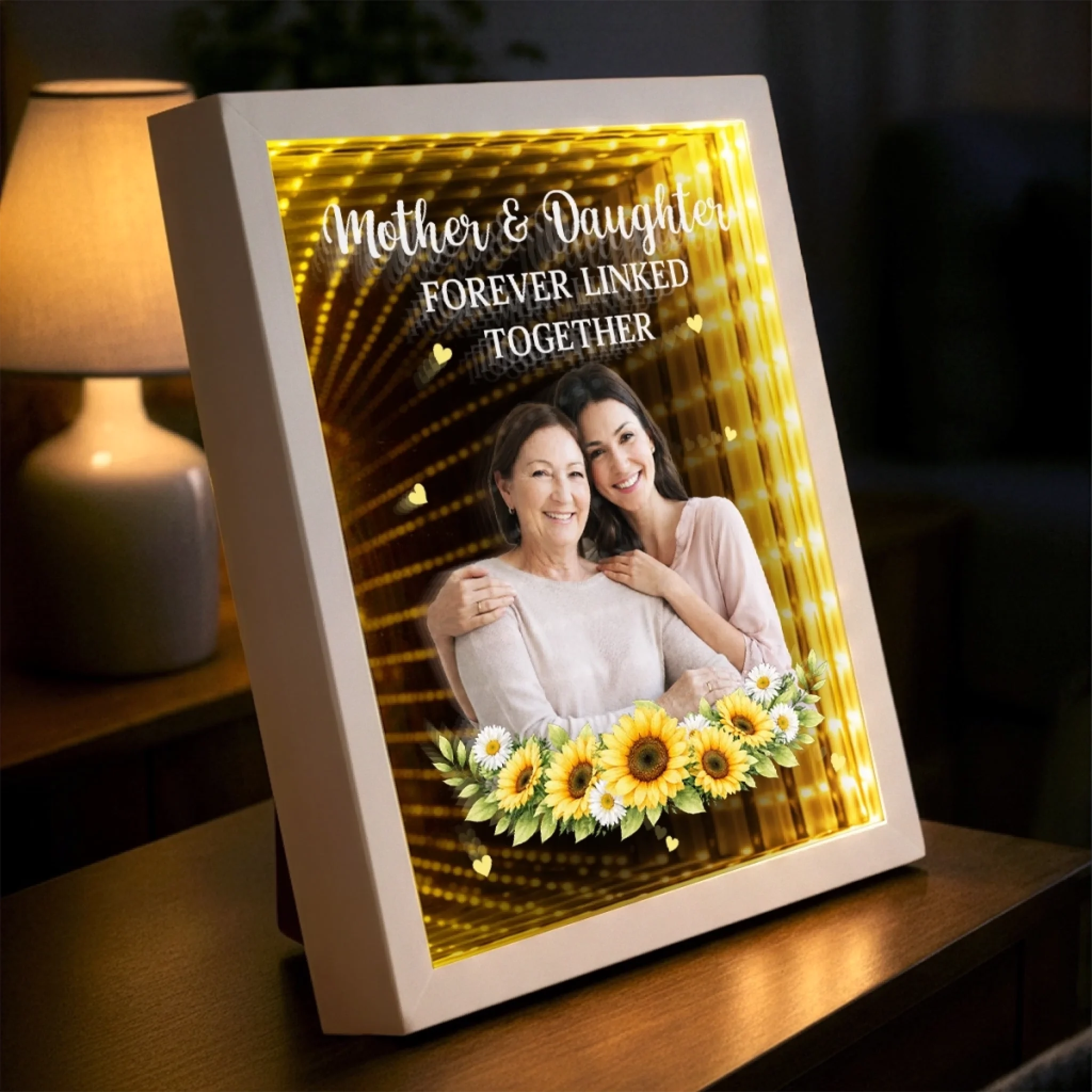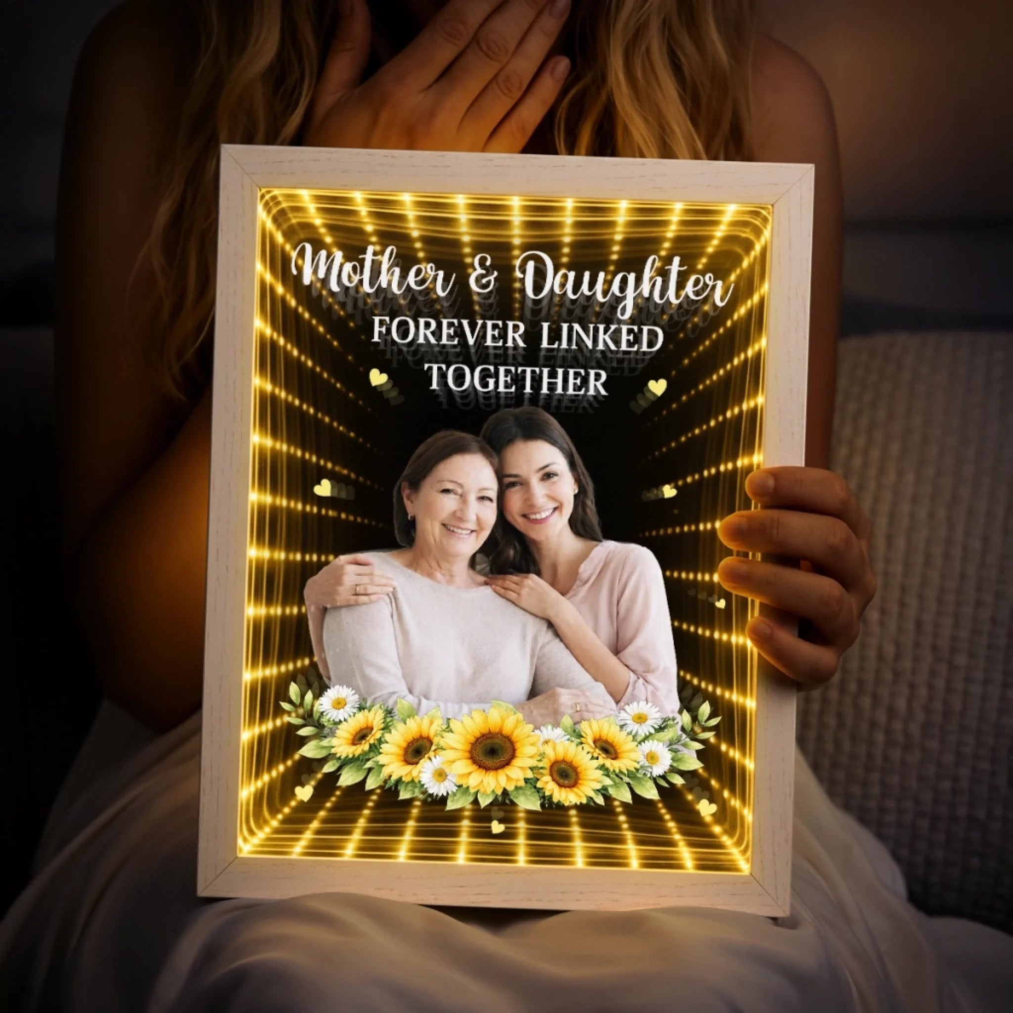 Custom Photo Infinity Mirror Light Box - Personalized Mother's Day Birthday Gifts For Mom - A Bond That Lasts Forever