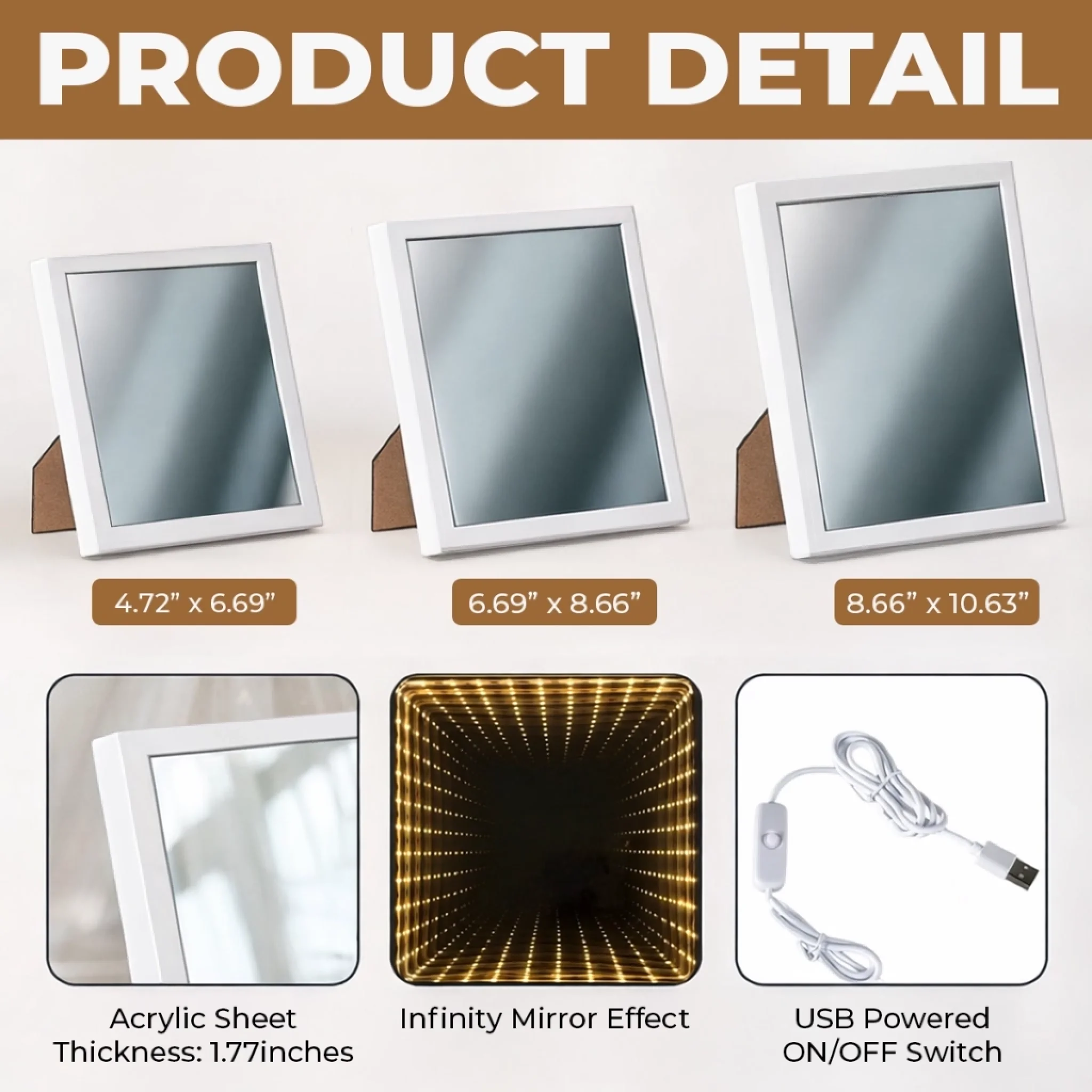 • Infinity mirror effect enhanced by vivid LED lighting for a stunning visual display.