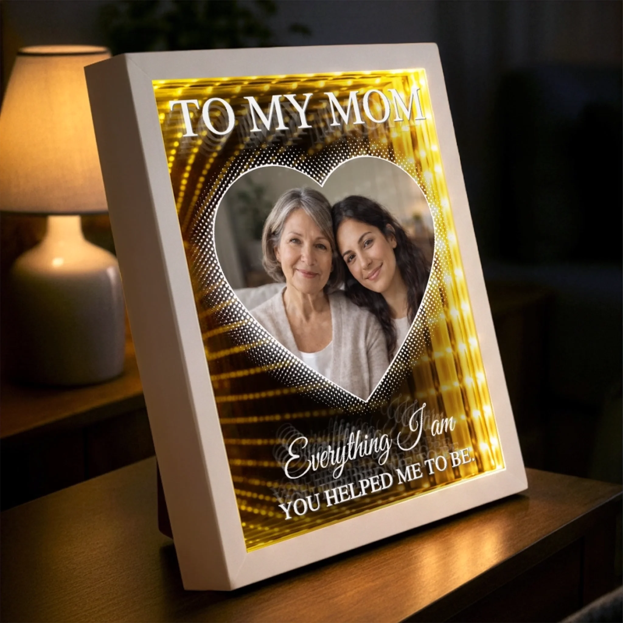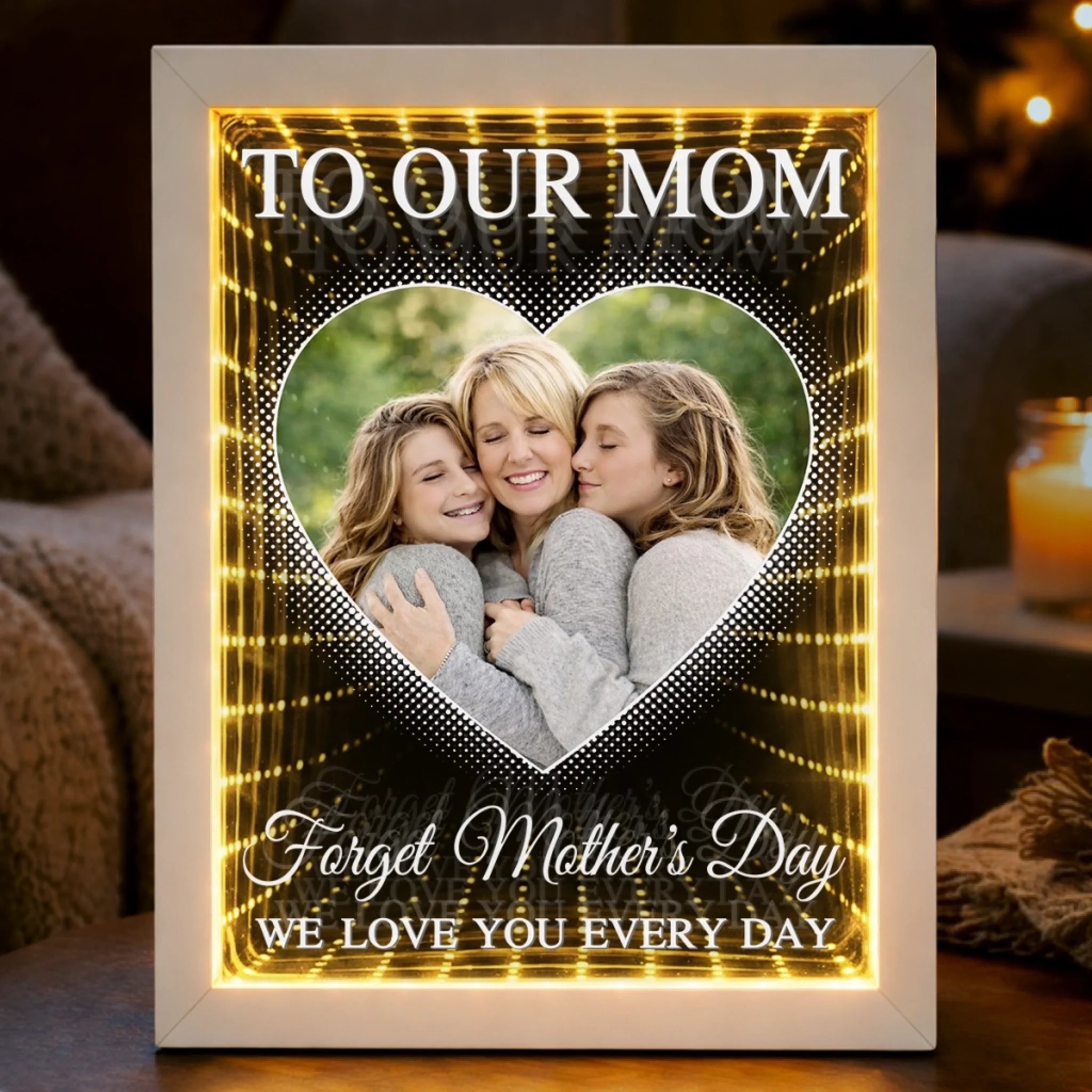 Custom Photo Infinity Mirror Light Box - Personalized Mother's Day Birthday Gifts For Mom - Celebrating Moms With Love
