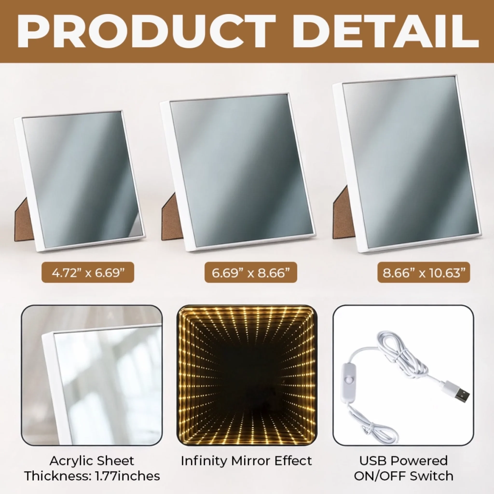 • Infinity mirror effect enhanced by vivid LED lighting for a stunning visual display.