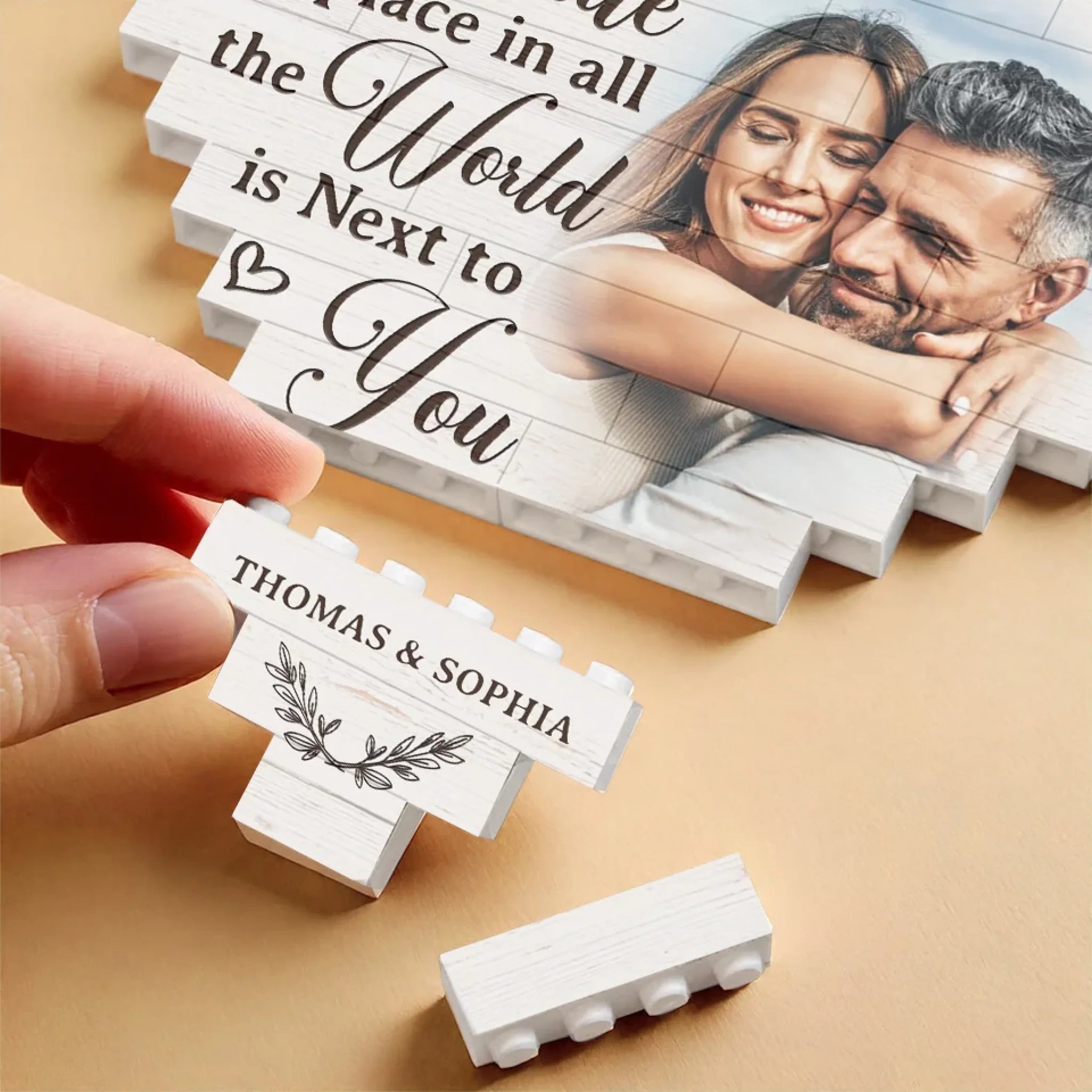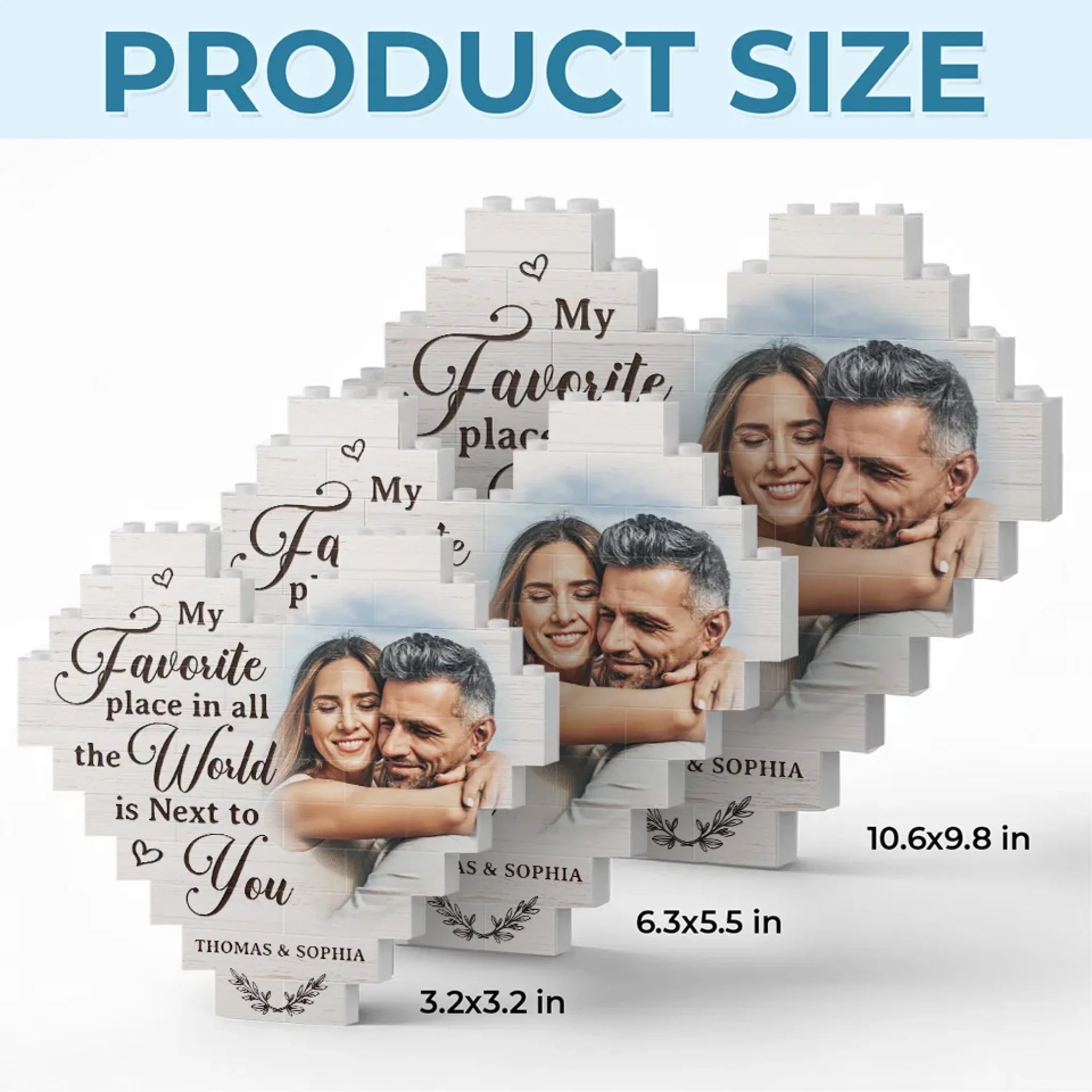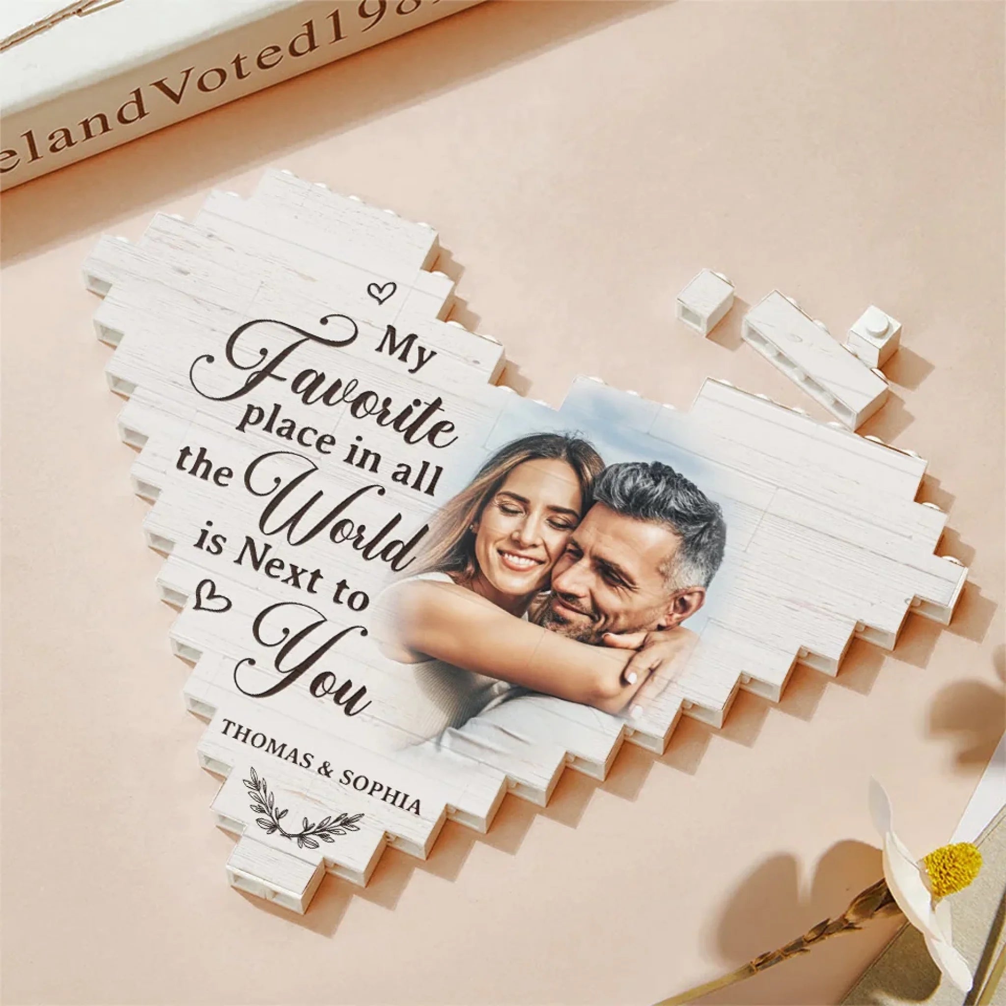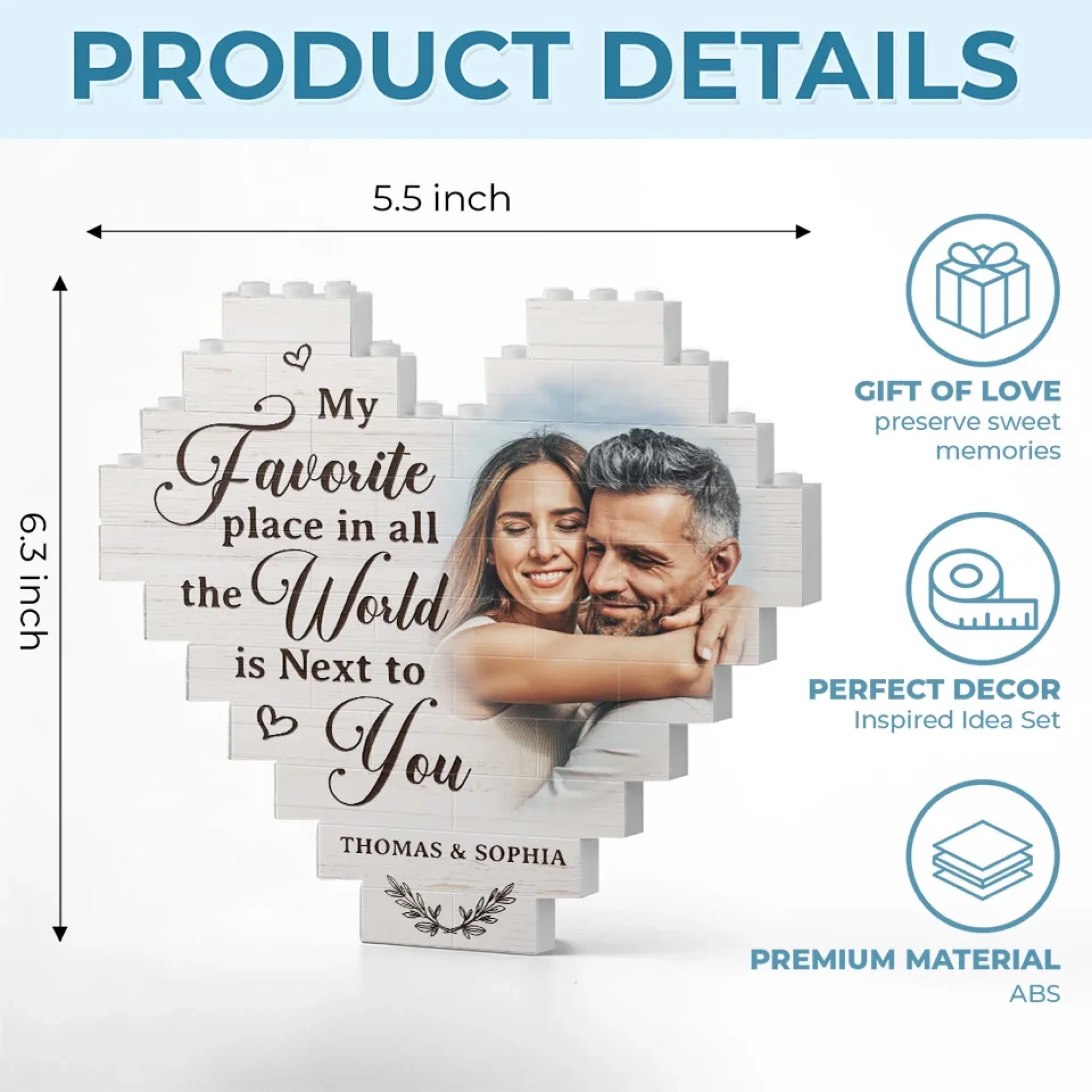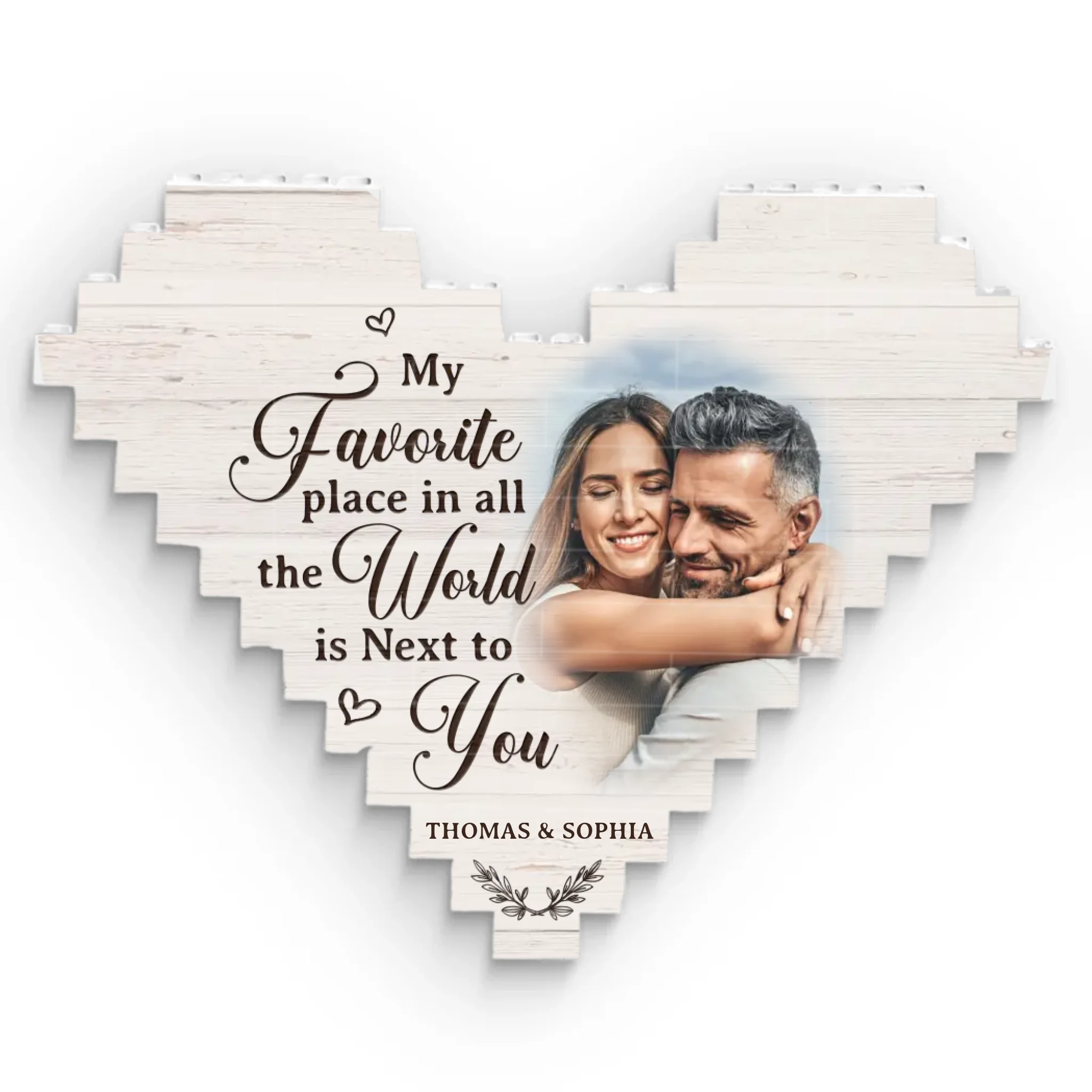 Custom Photo My Favorite Place In All The World Is You - Couple Personalized Custom Heart Shaped Building Brick Blocks - Gift For Husband Wife, Anniversary