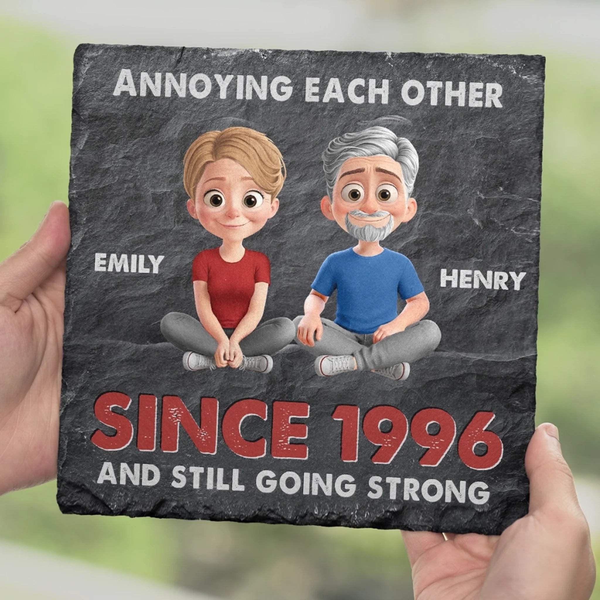 Custom Square Shaped Stone With Stand - Personalized Anniversary Wedding Gifts For Husband And Wife, Him And Her - Love, Chaos, Repeat Daily