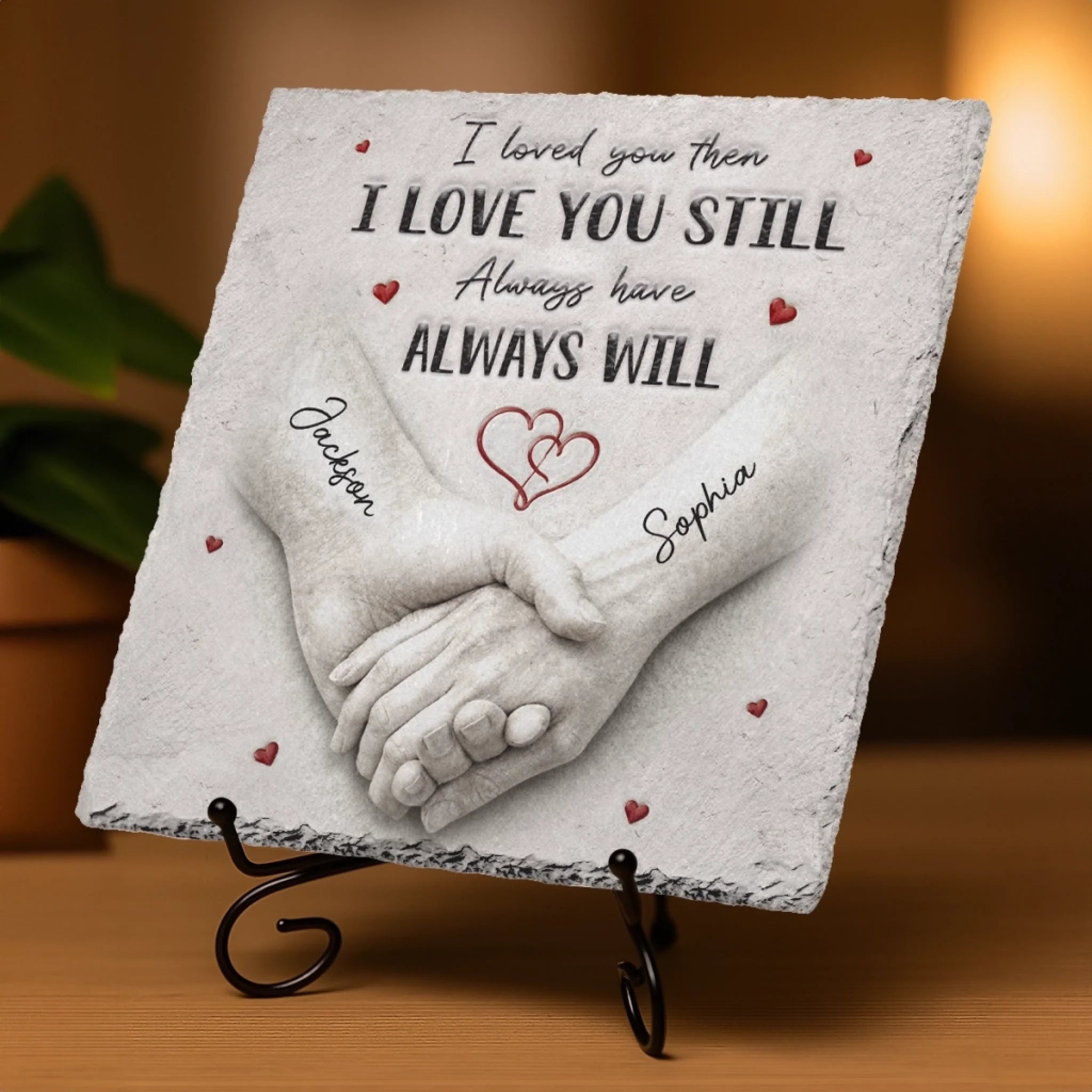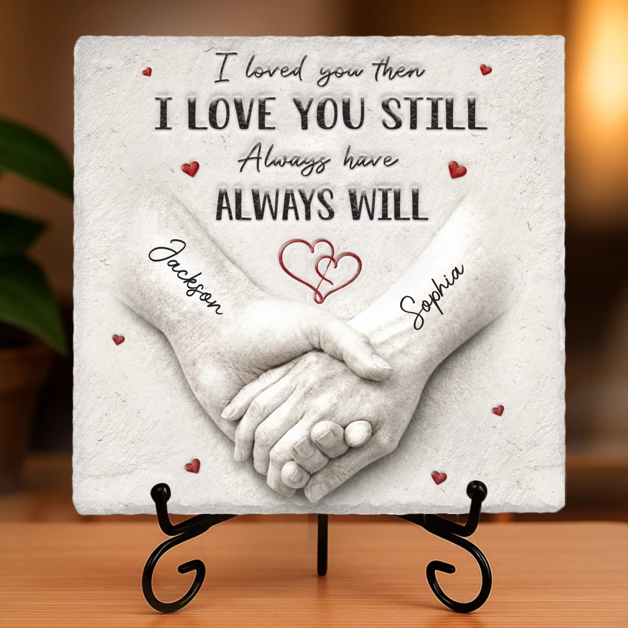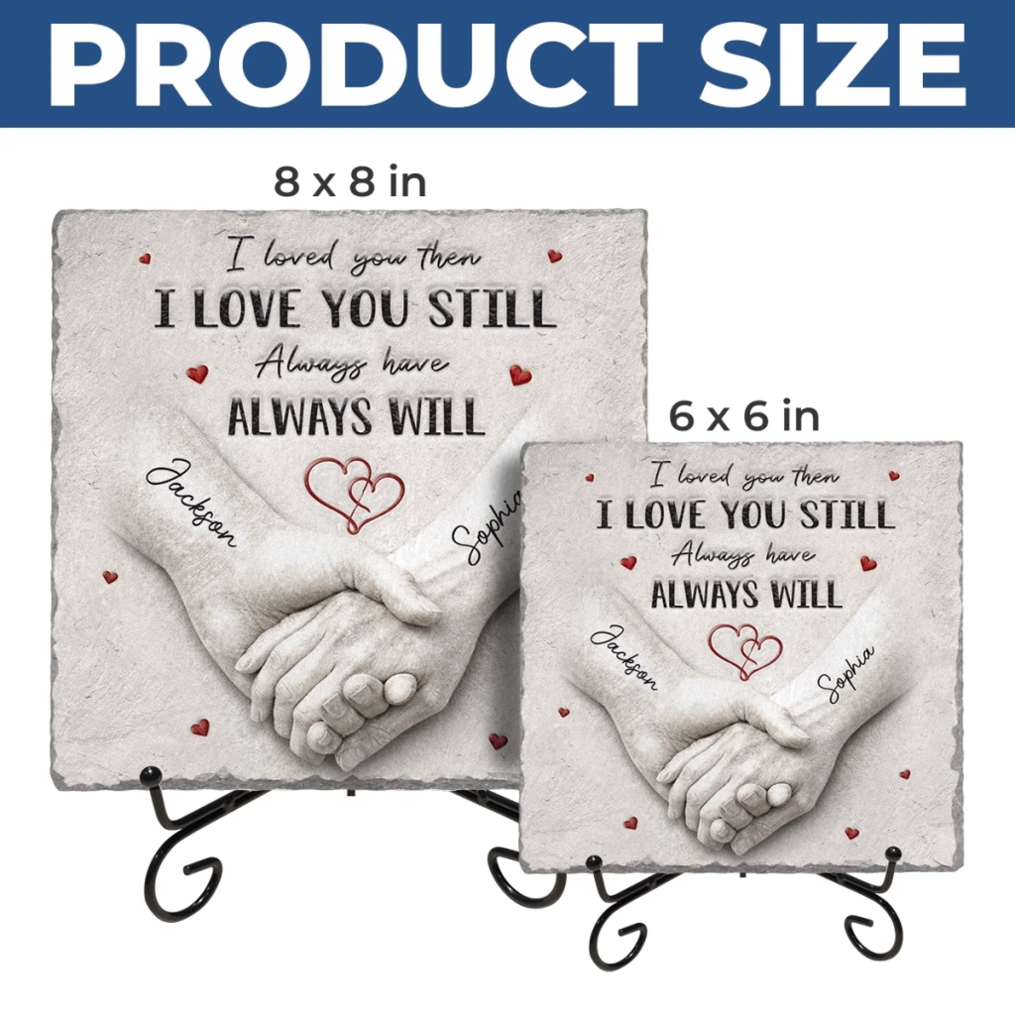 Custom Square Shaped Stone With Stand - Personalized Anniversary Wedding Gifts For Husband And Wife, Him And Her - Our Love Keeps Growing