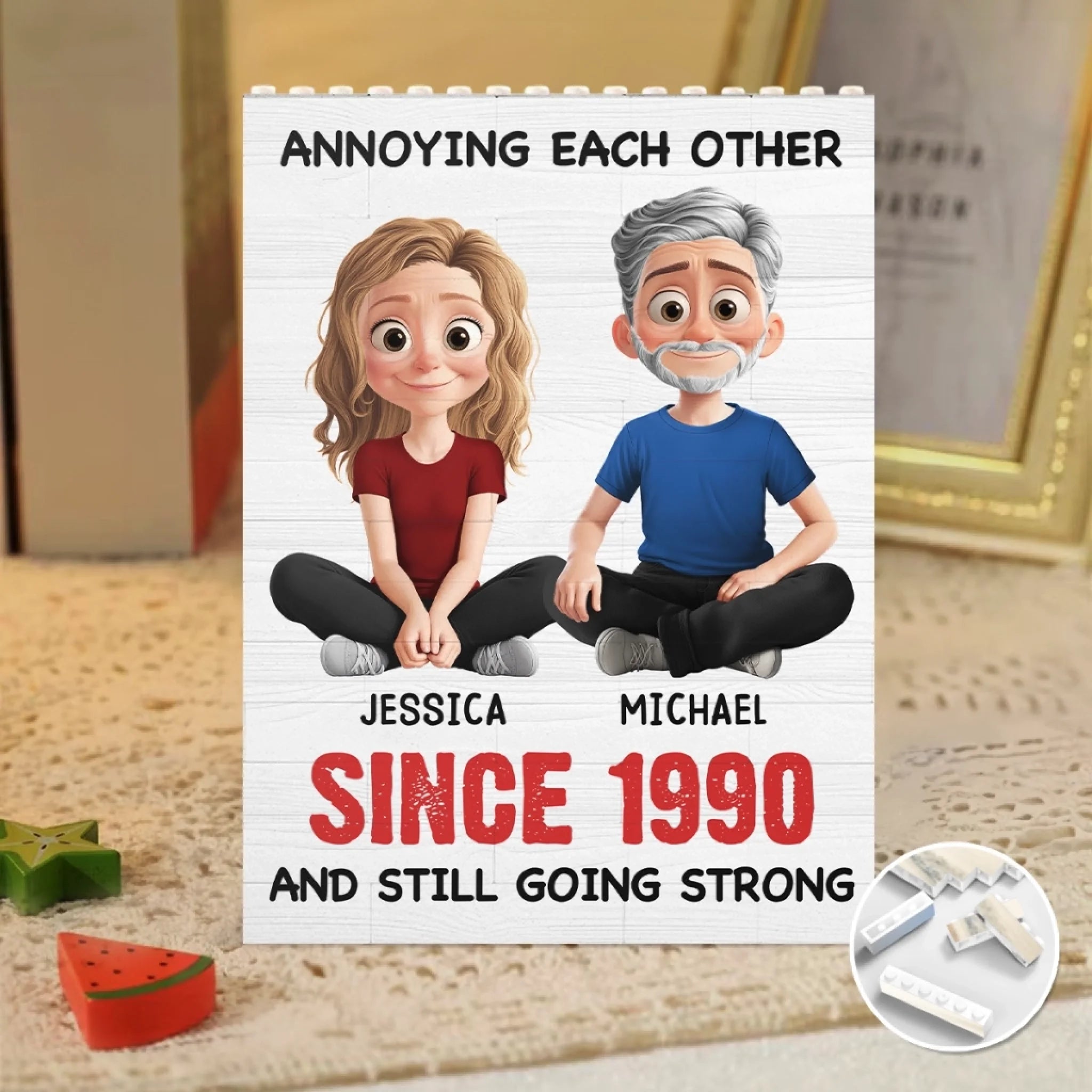 Custom Vertical Rectangle Shaped Building Brick Blocks - Personalized Anniversary Wedding Gifts For Husband And Wife, Him And Her - Still Bugging Each Other Daily