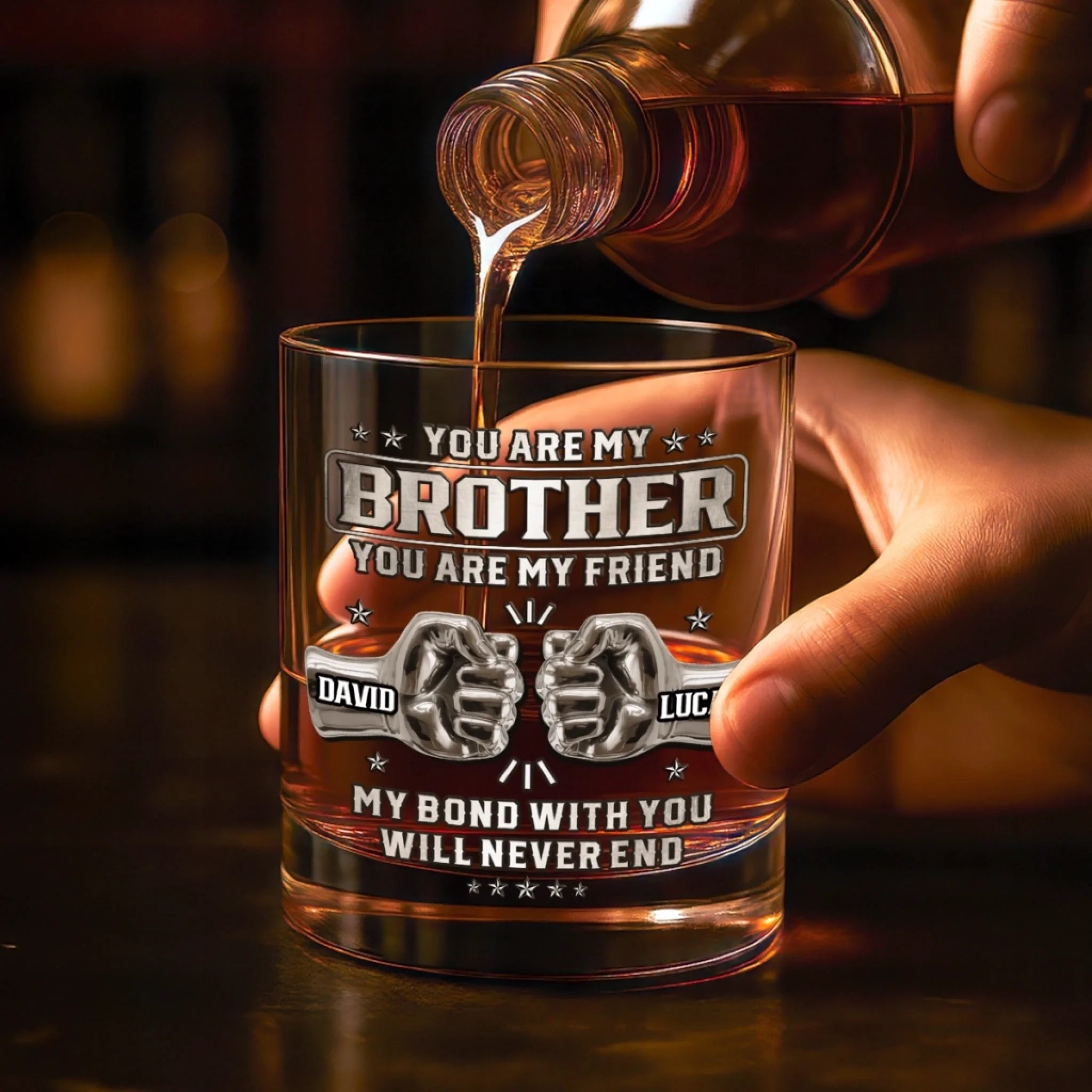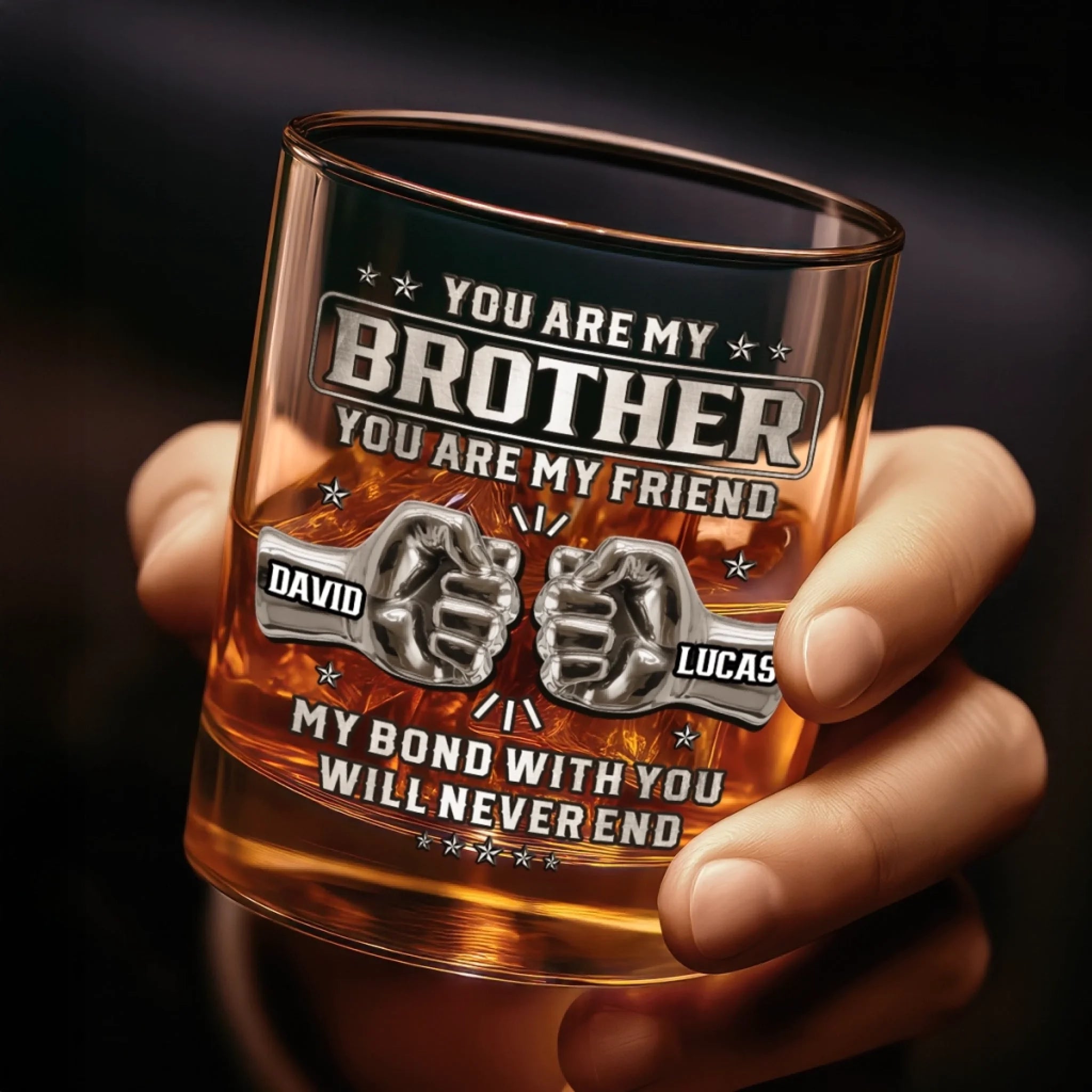 Custom Whiskey Glass - Personalized Birthday Gifts For Brother - Family By Chance, Brothers Forever
