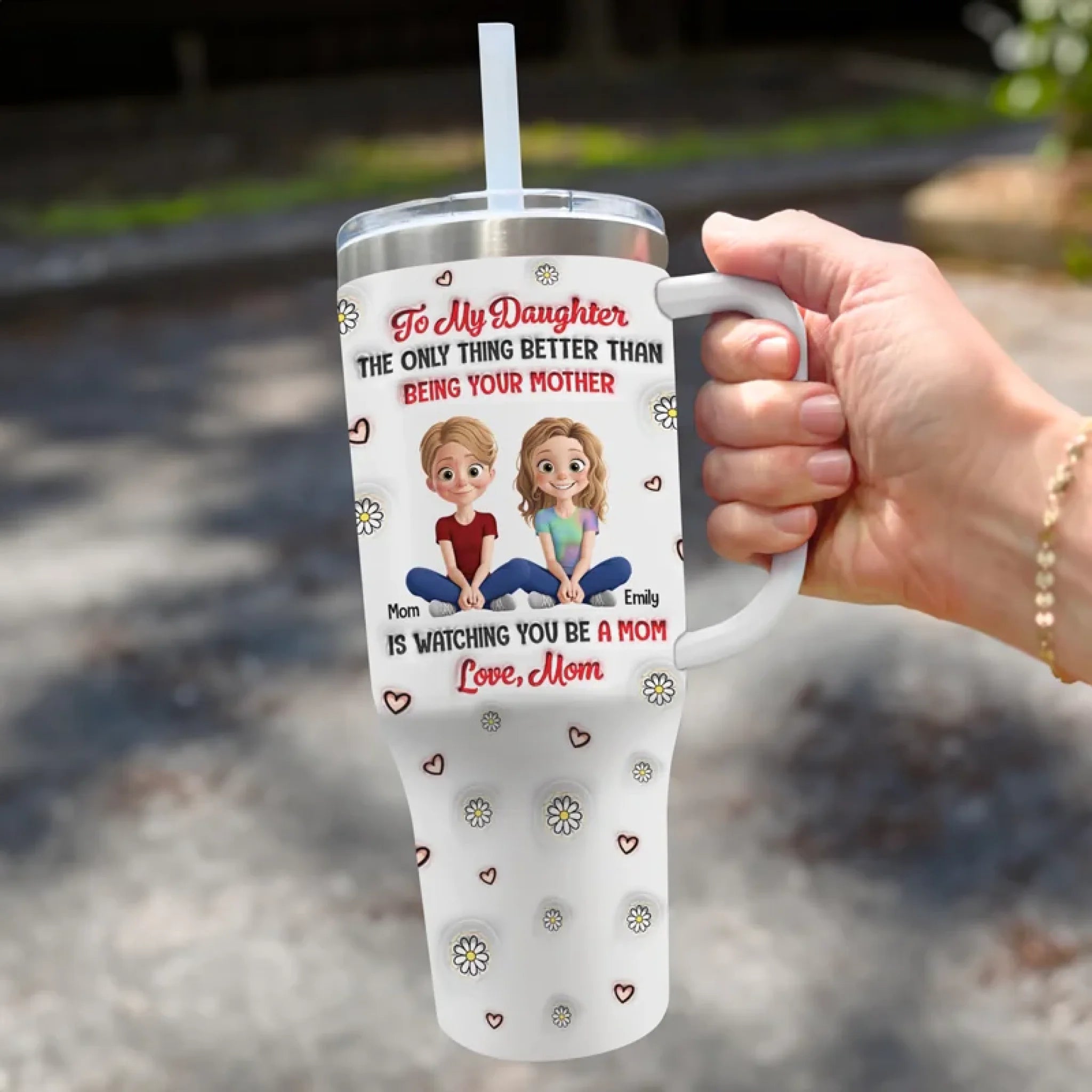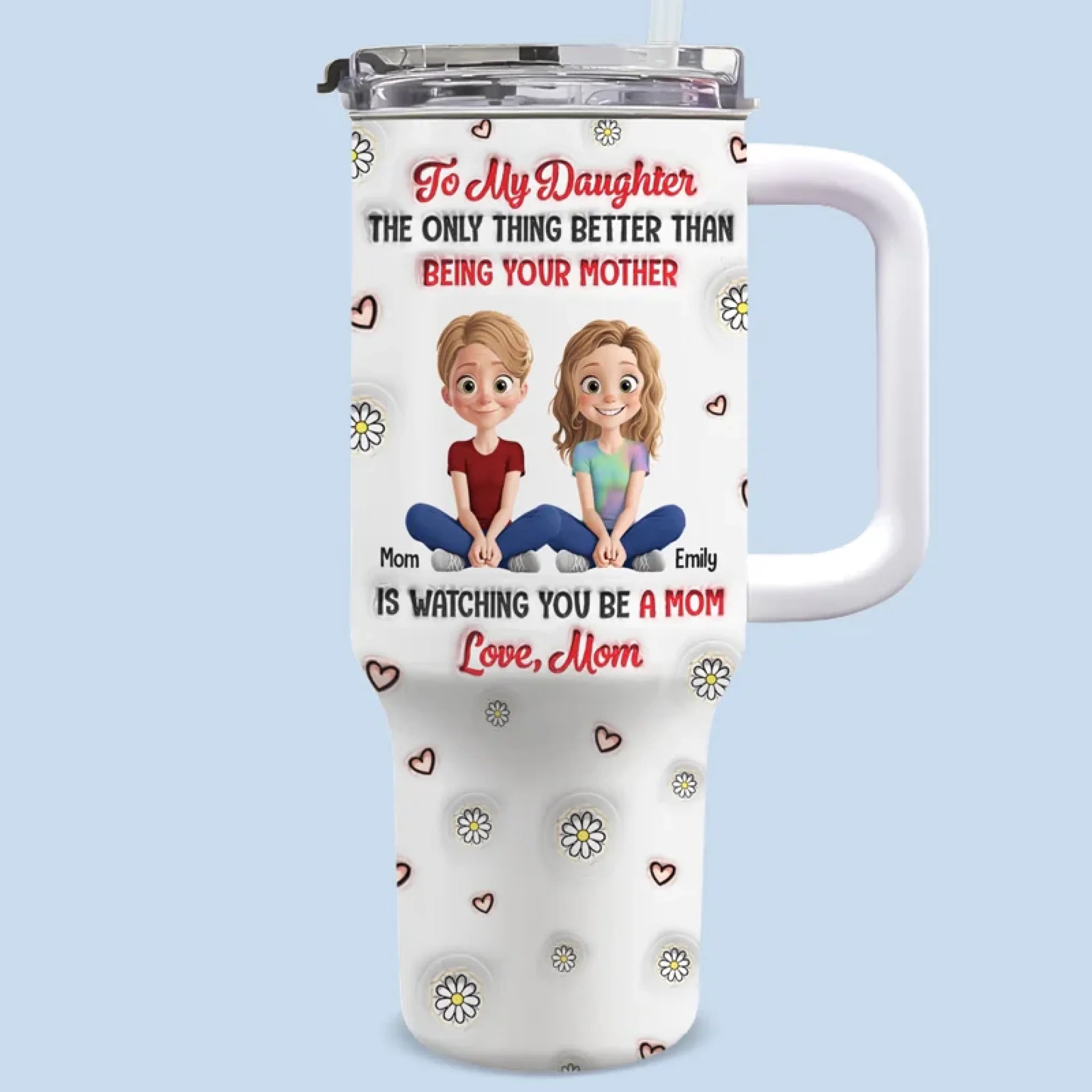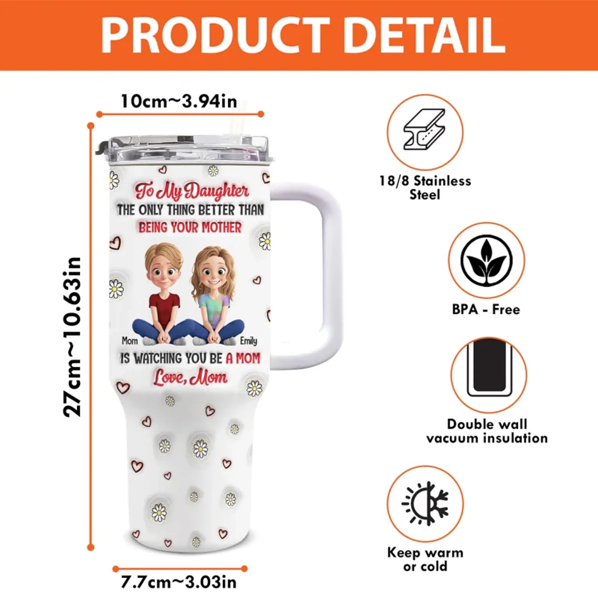 A Bond That Lasts Generations - Family Personalized Custom 3D Inflated Effect Printed 40 Oz Stainless Steel Tumbler With Handle - Mother's Day, Gift For Mom, Daughter