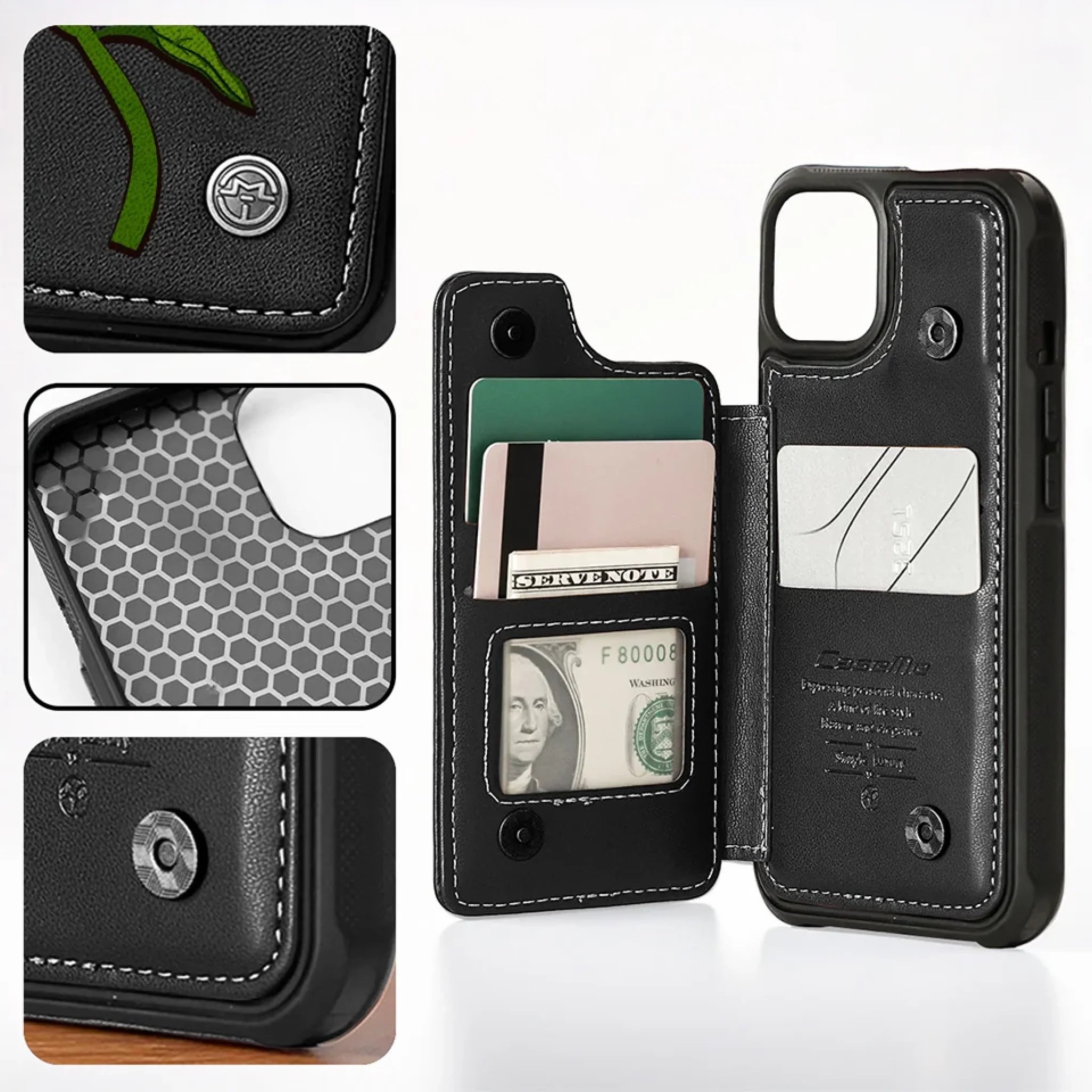 • Hidden Magnetic Design: Keeps the wallet flap secured without interfering with the phone's operation.