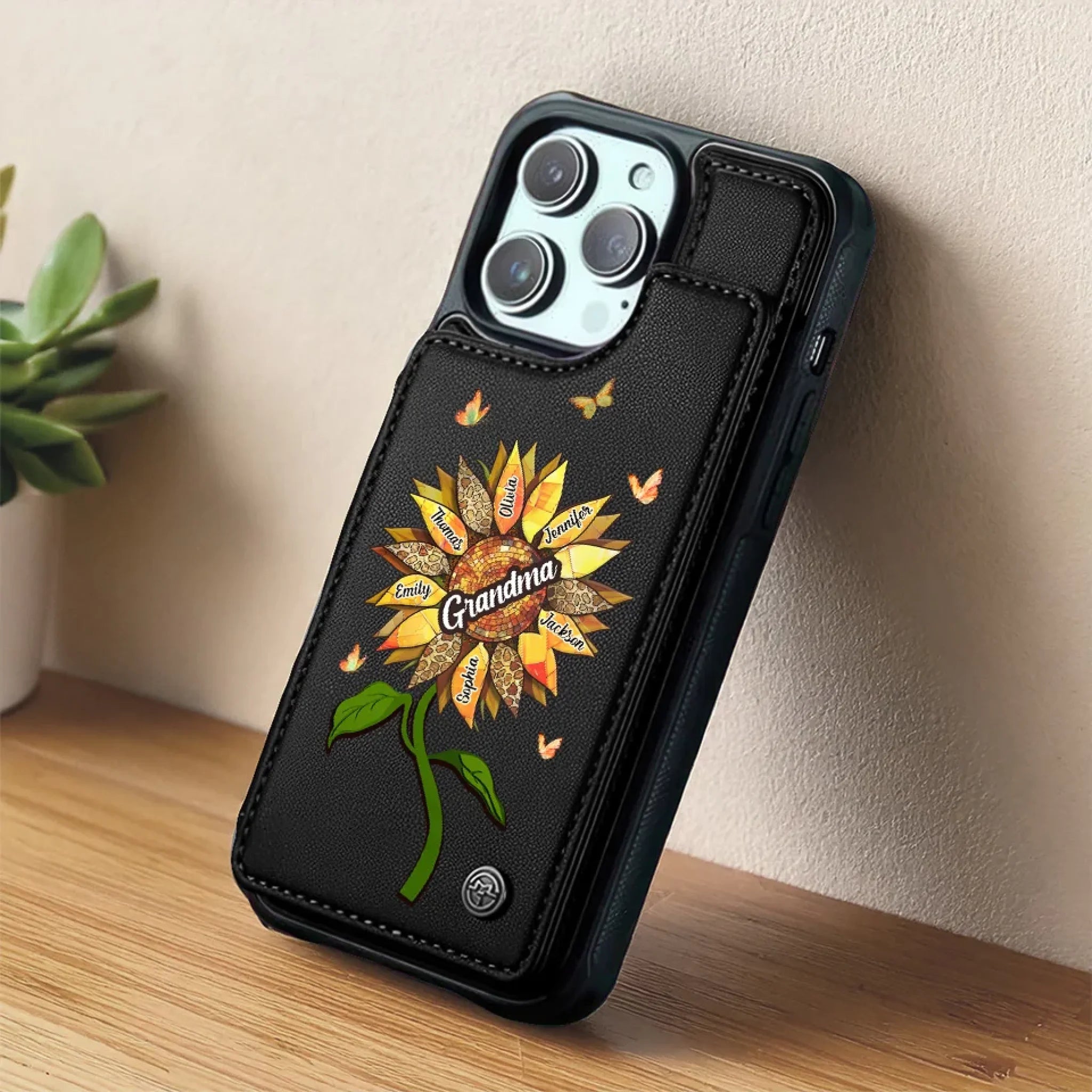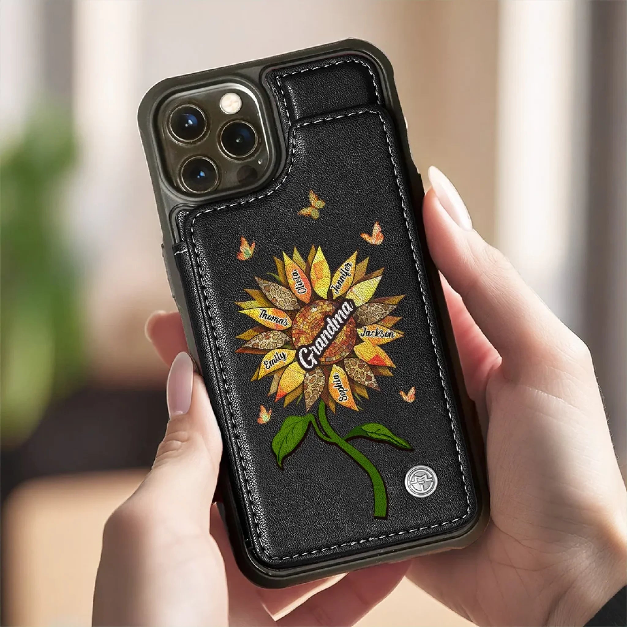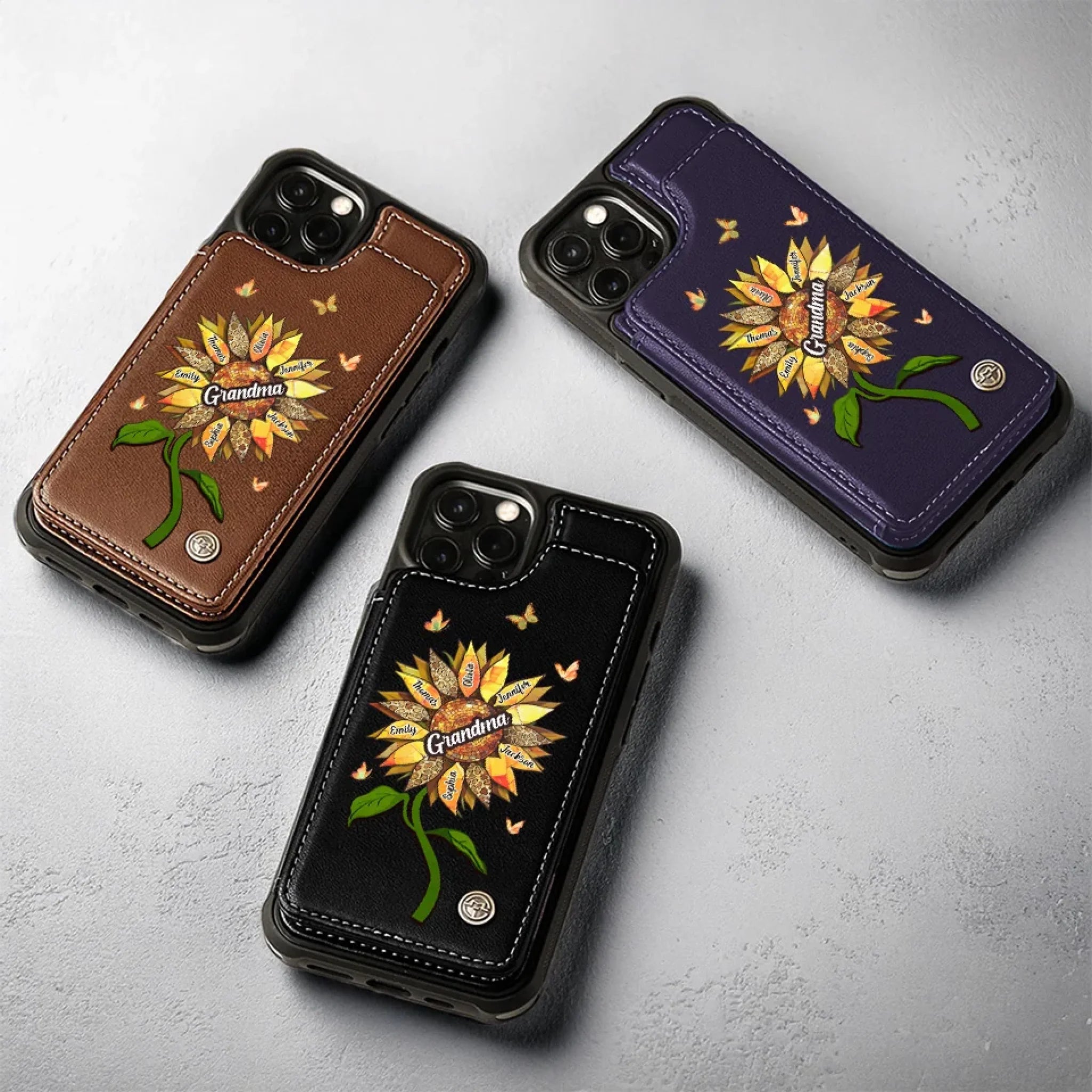 A Sunflower Teaches Us So Much About Love - Family Personalized Custom Leather Flip Wallet Phone Case - Mother's Day Gift For Mom, Grandma