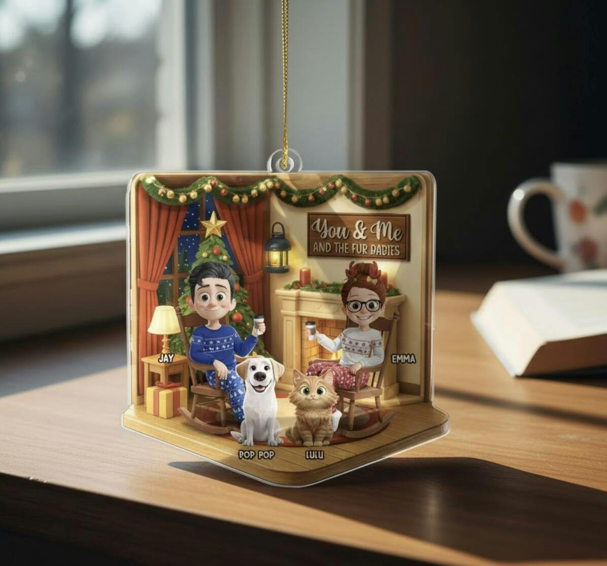 Custom Acrylic Ornament - Personalized Anniversary Christmas Wedding Gifts For Husband And Wife, Dog Cat Lovers - The Pawfect Little Family