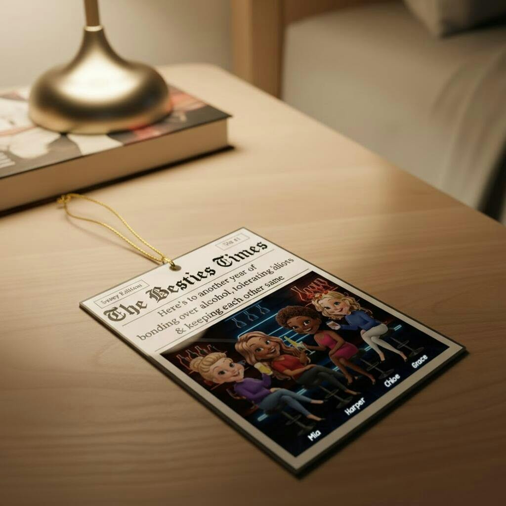 Custom Acrylic Ornament - Personalized Best Friend Christmas Birthday Gifts For Women, Besties, Sisters, BFF - Festive Hearts Forever Friends