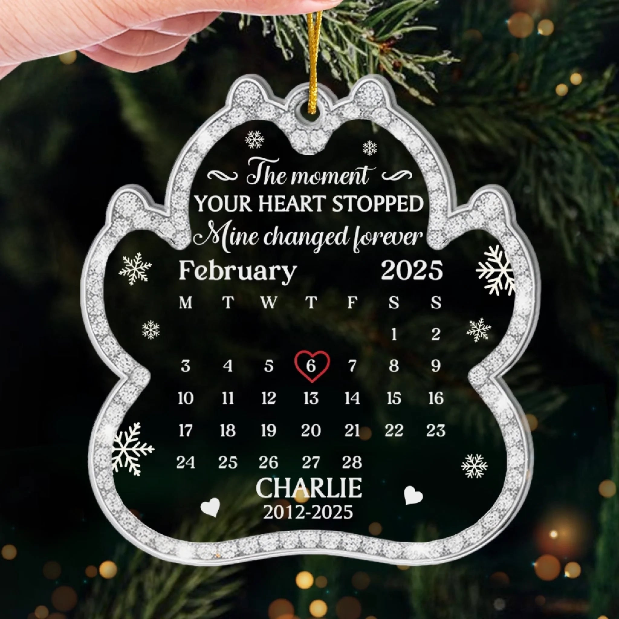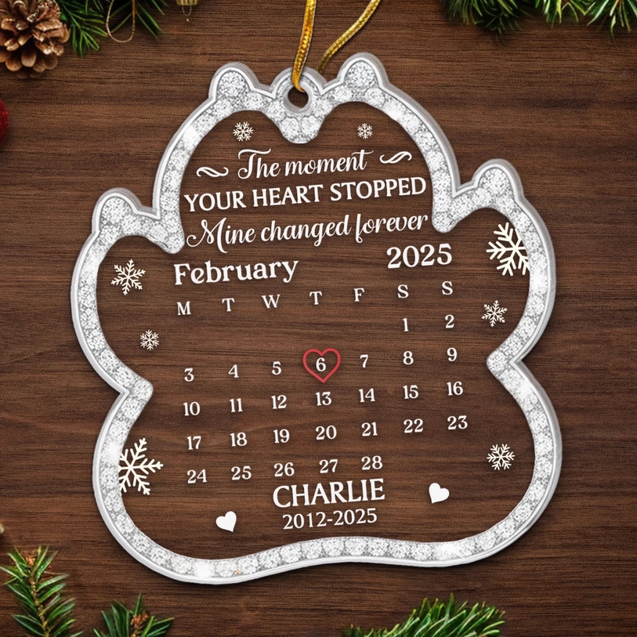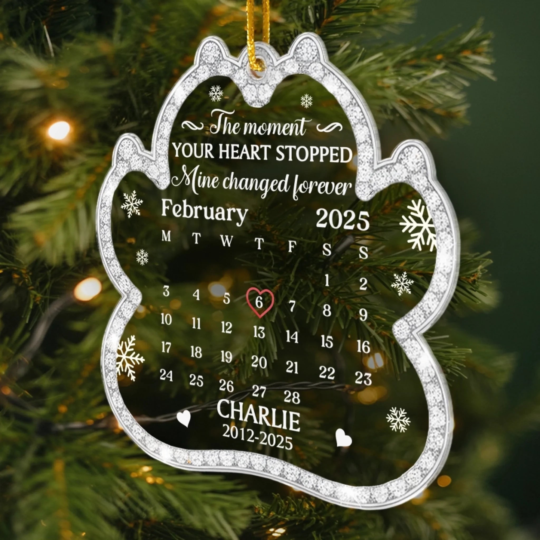 Custom Acrylic Ornament - Personalized Pet Christmas Memorial Sympathy Gifts For Dogs, Cats - Love Leaves Gentle Pawprints