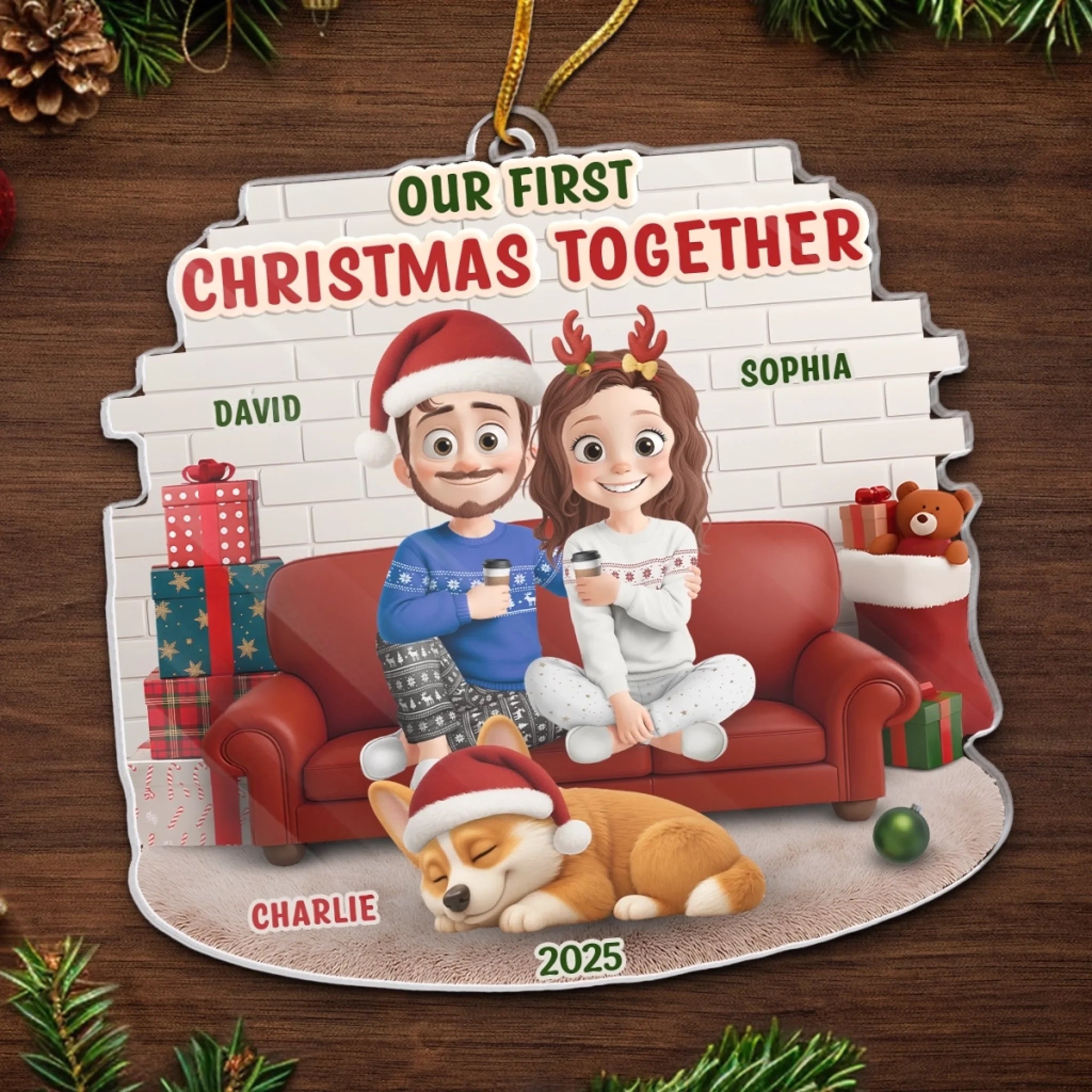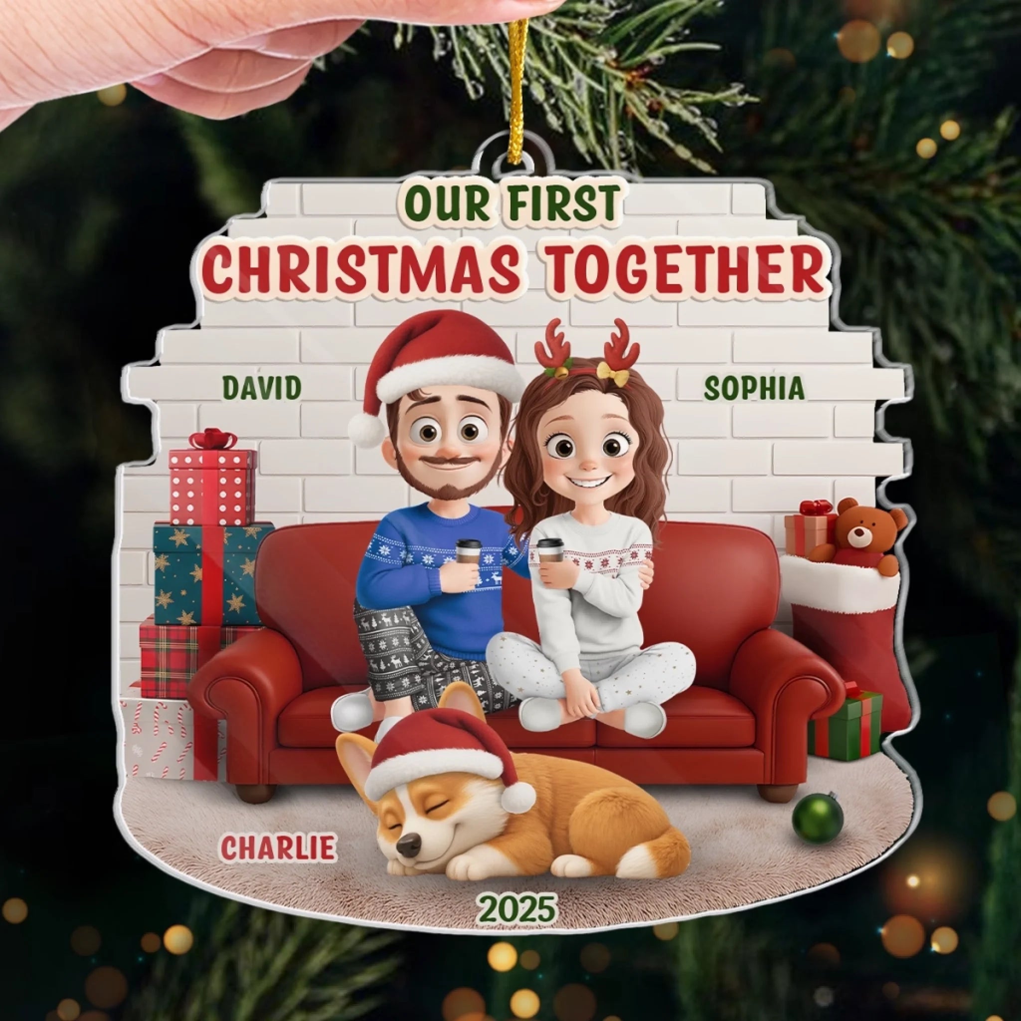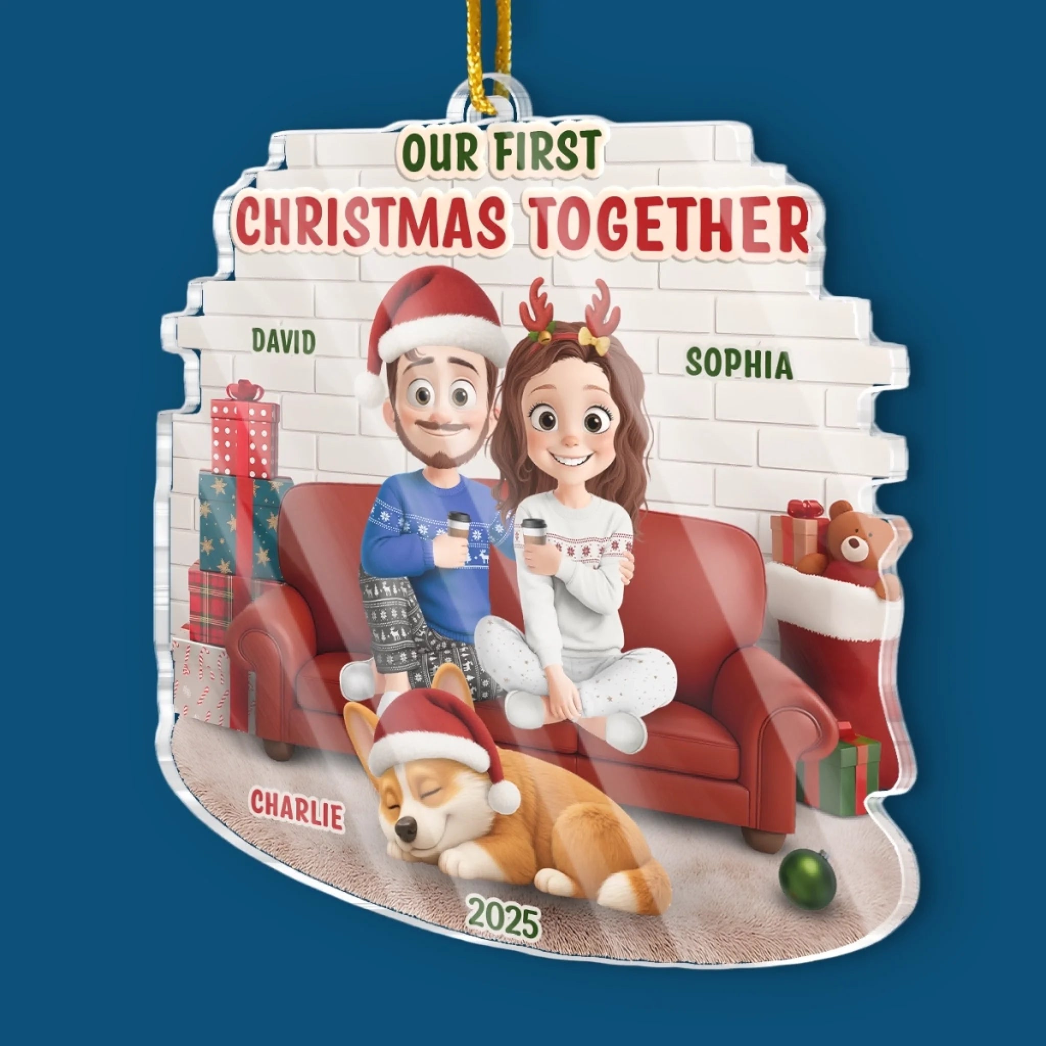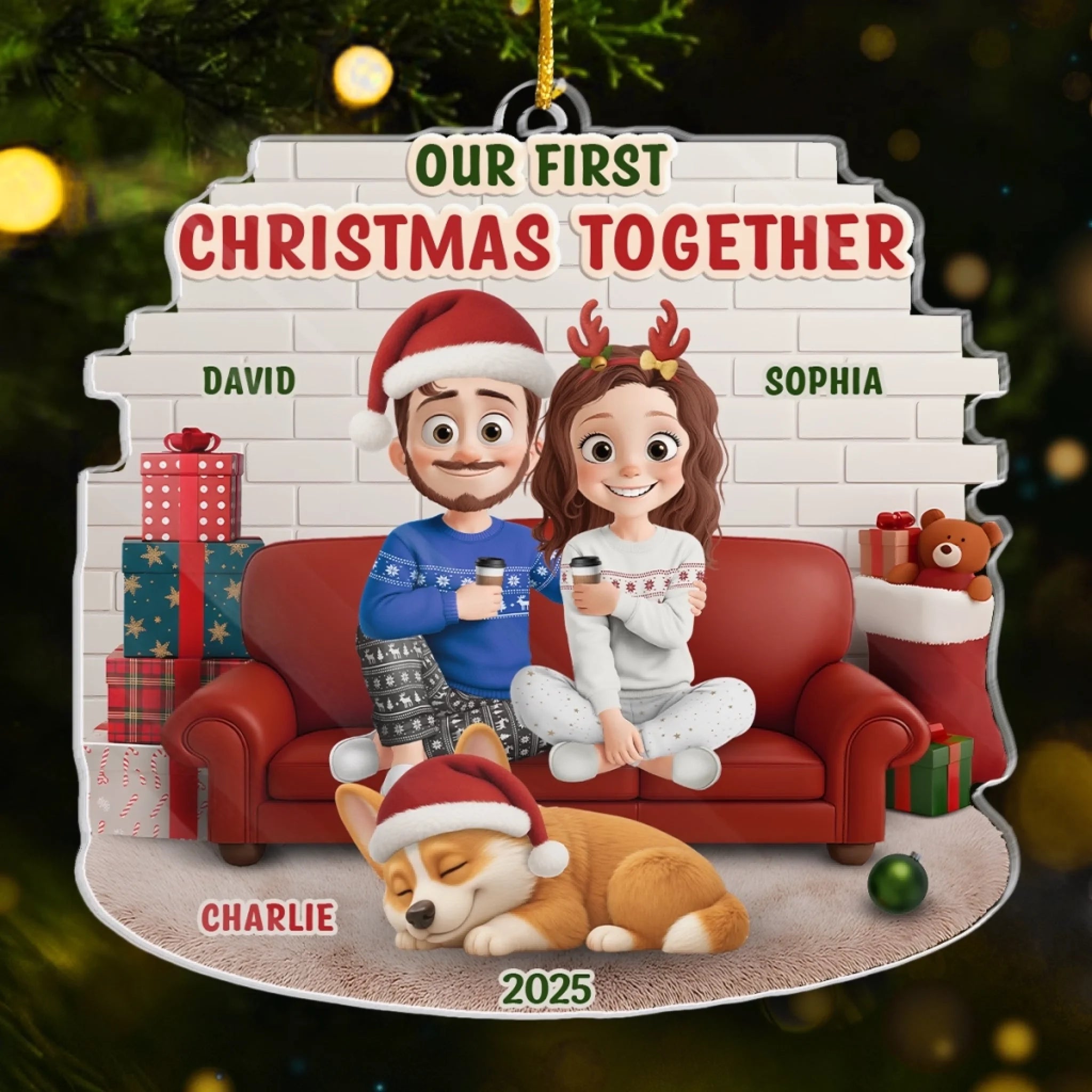 Custom First Christmas Acrylic Ornament - Personalized Anniversary Christmas Wedding Gifts For Husband And Wife, Dog Dad And Mom - Pawfect Match, Confirmed By Santa