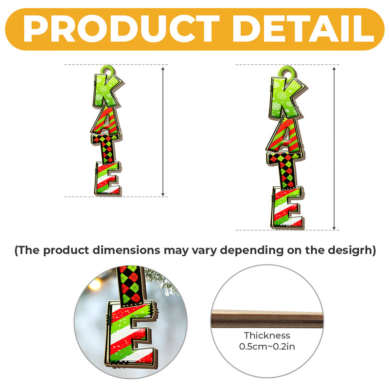 Custom Green Christmas Letter Wooden Ornament - Personalized Christmas Birthday Gifts For Mom, Dad, Brother, Sister, Kids - The Perfect Pop Of Festive Fun