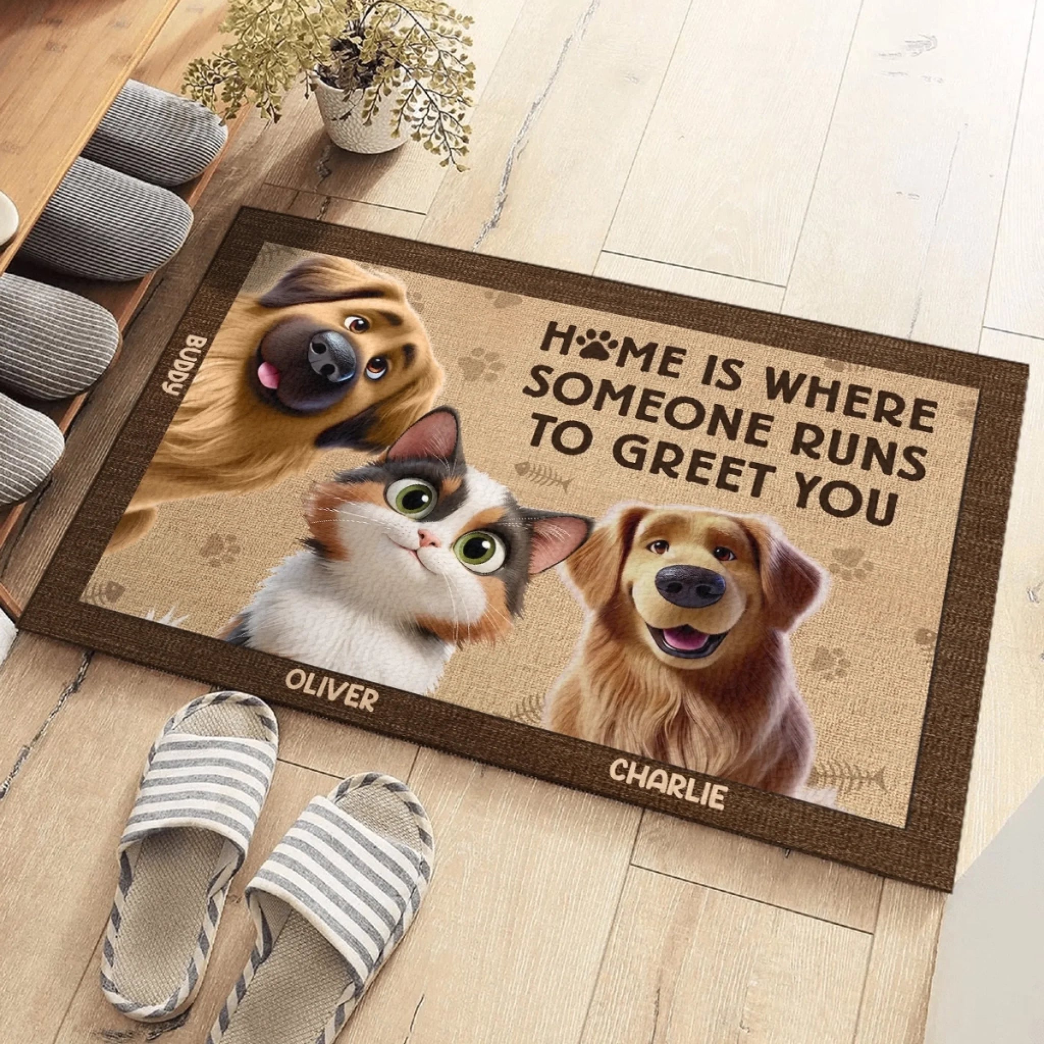 Custom Home Decor Decorative Mat - Personalized Birthday Gifts For Dog Cat Lovers, Dog Dad And Mom, Cat Owners - Home Is Where The Paw Is