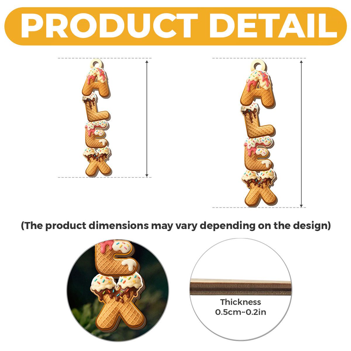 Custom Ice Cream Letter Wooden Ornament - Personalized Christmas Birthday Gifts For Mom, Dad, Brother, Sister, Kids - Love Dipped In Sugar