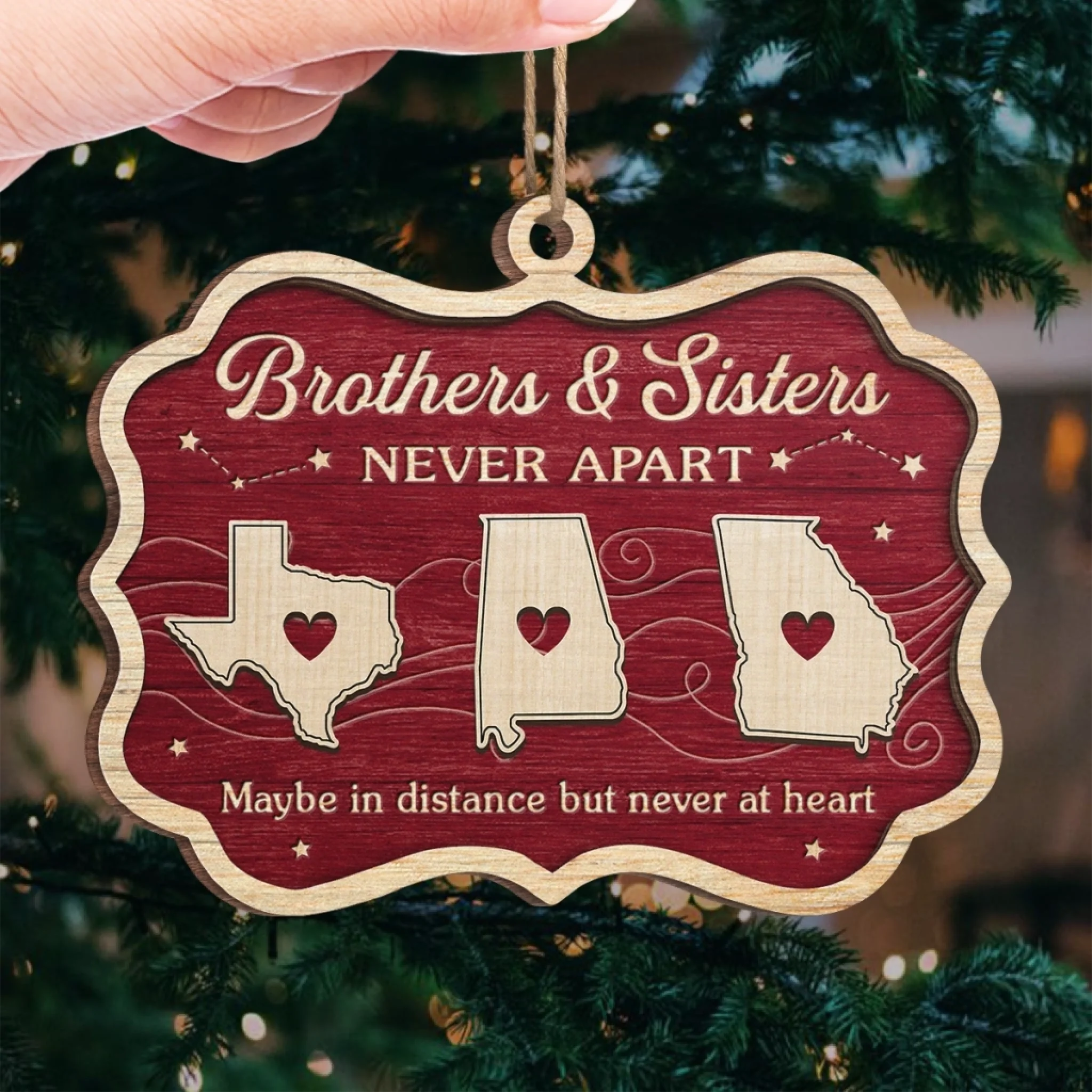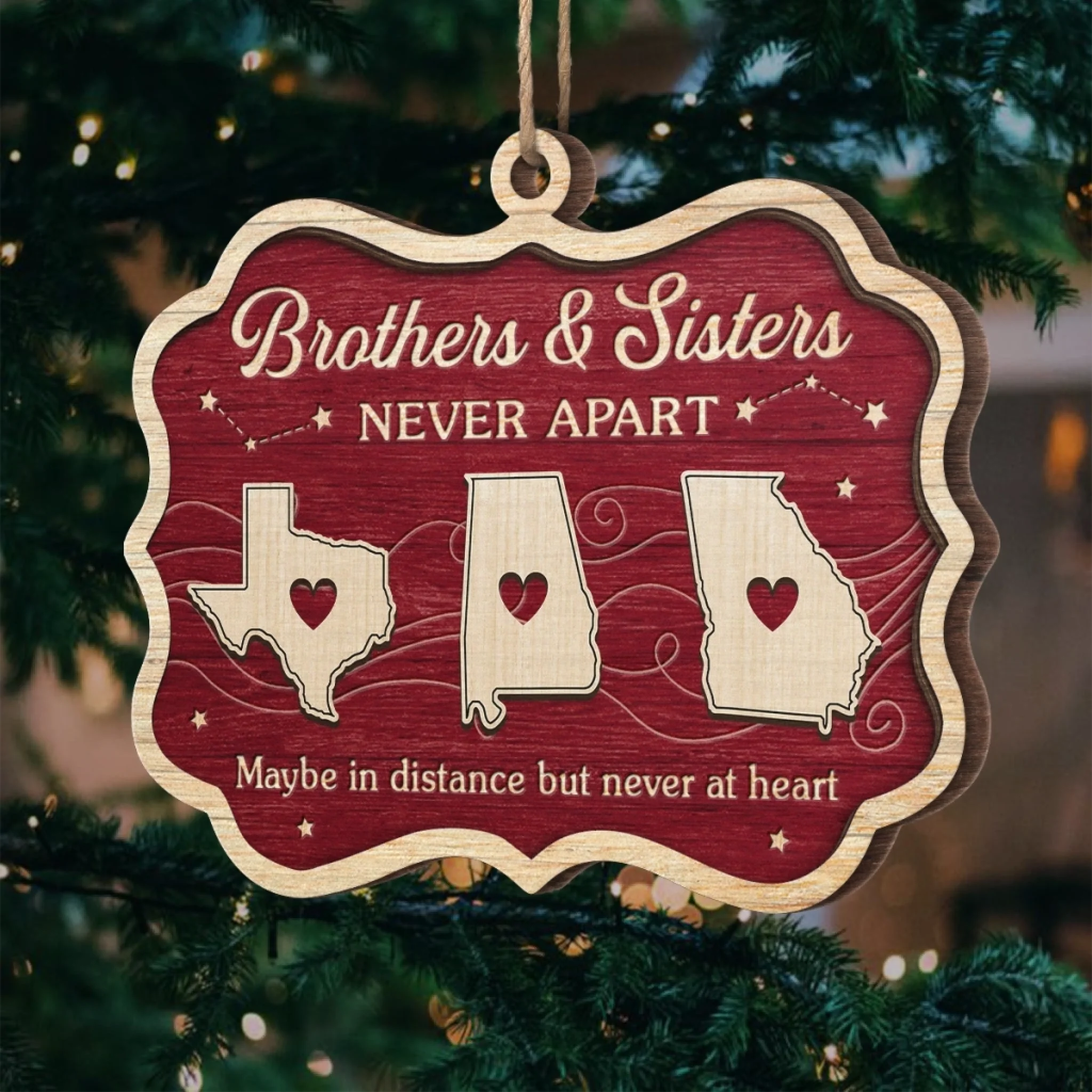 Custom Long Distance Wood Ornament - Personalized Christmas Birthday Gifts For Brother, Sister - Sibling Love Knows No Borders