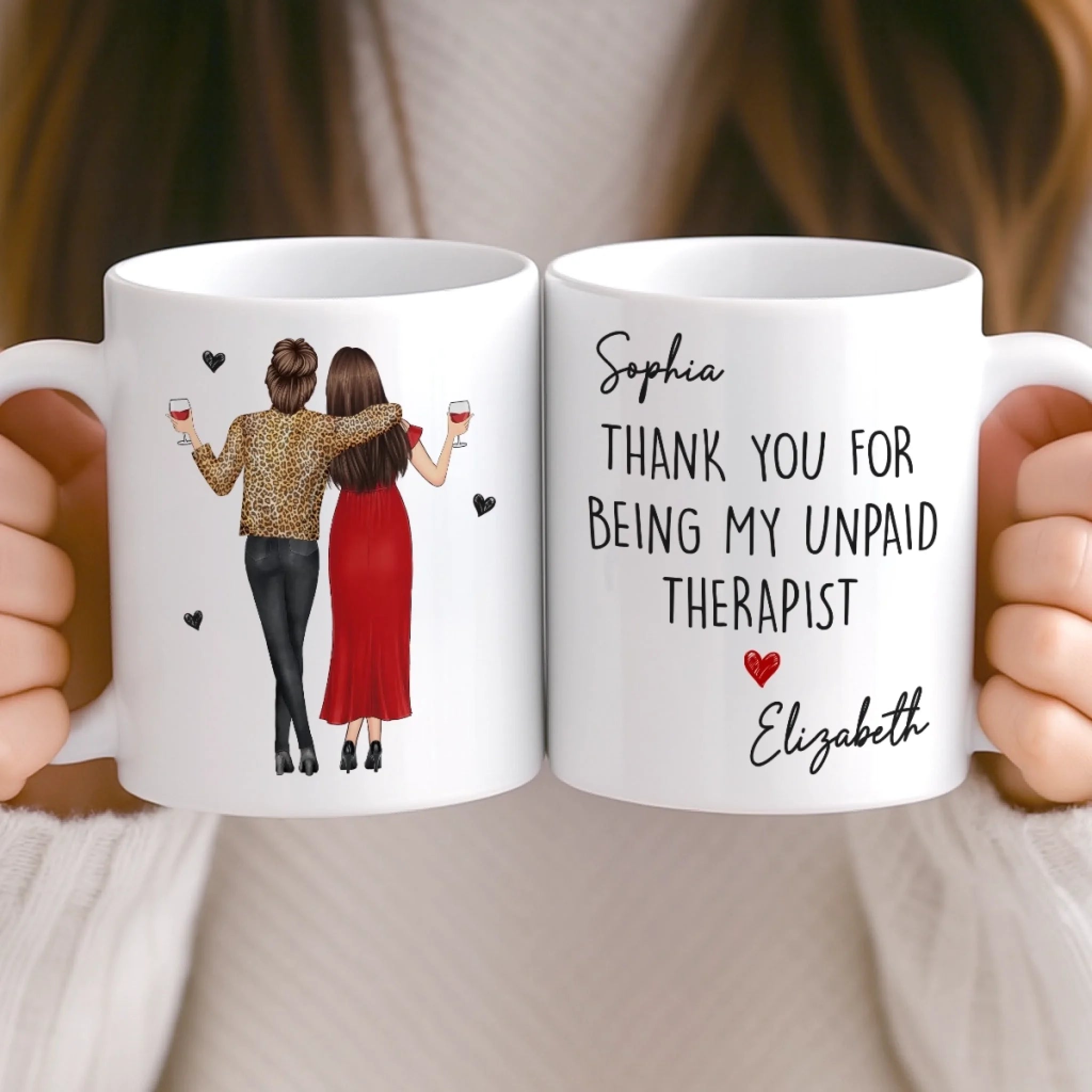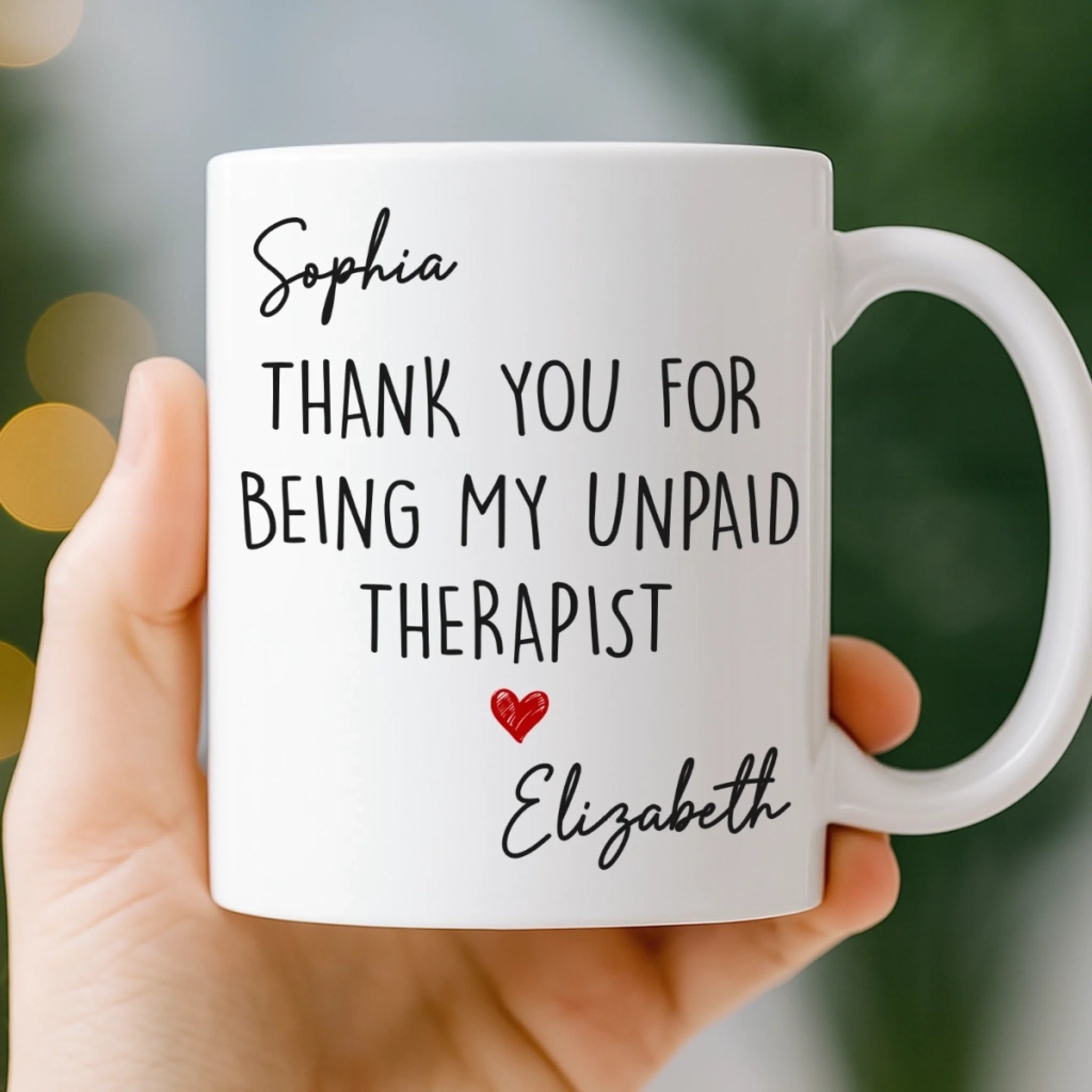 Custom Mug - Personalized Best Friend Birthday Gifts For Women, Besties, Sisters, BFF - Thank You For Being My Unpaid Therapist