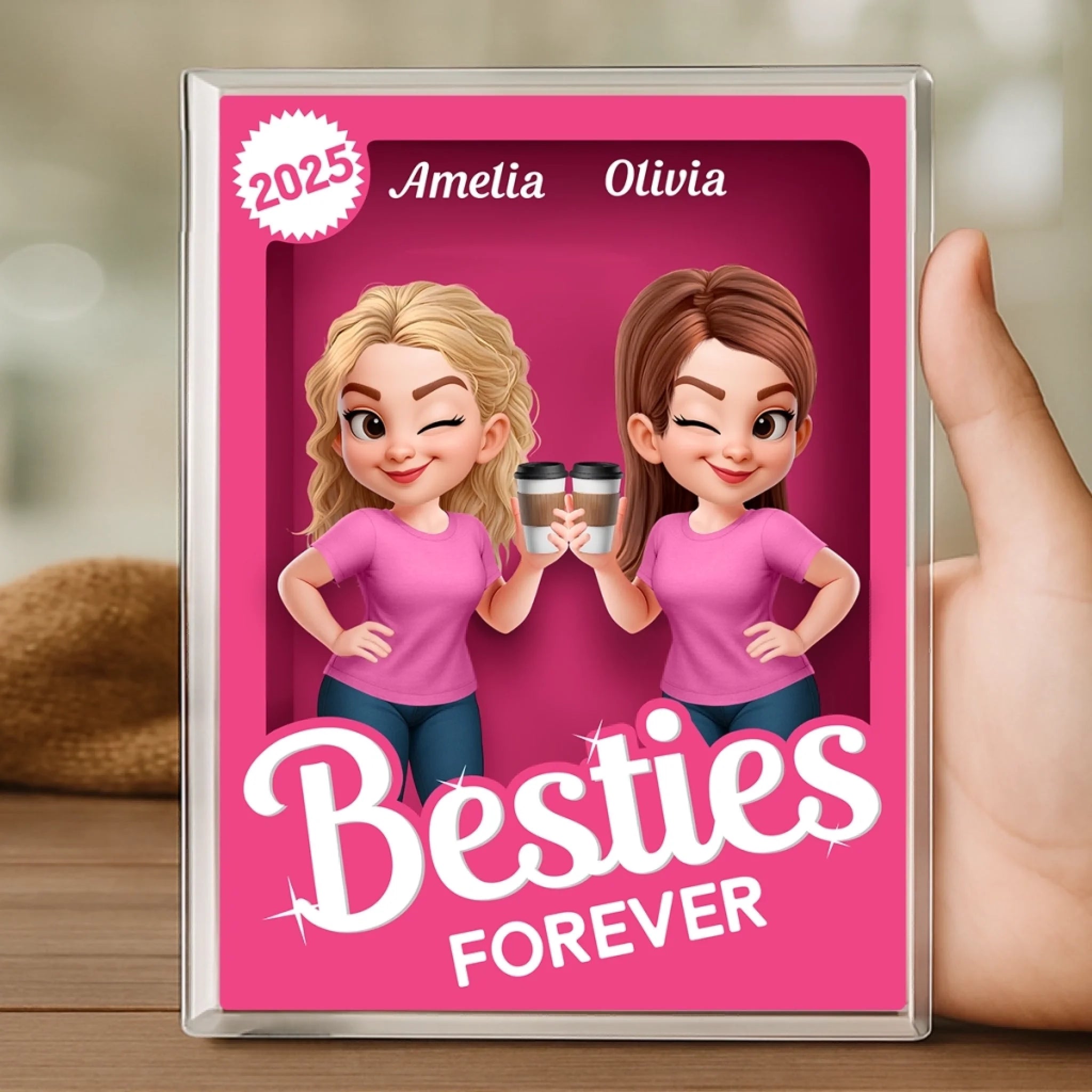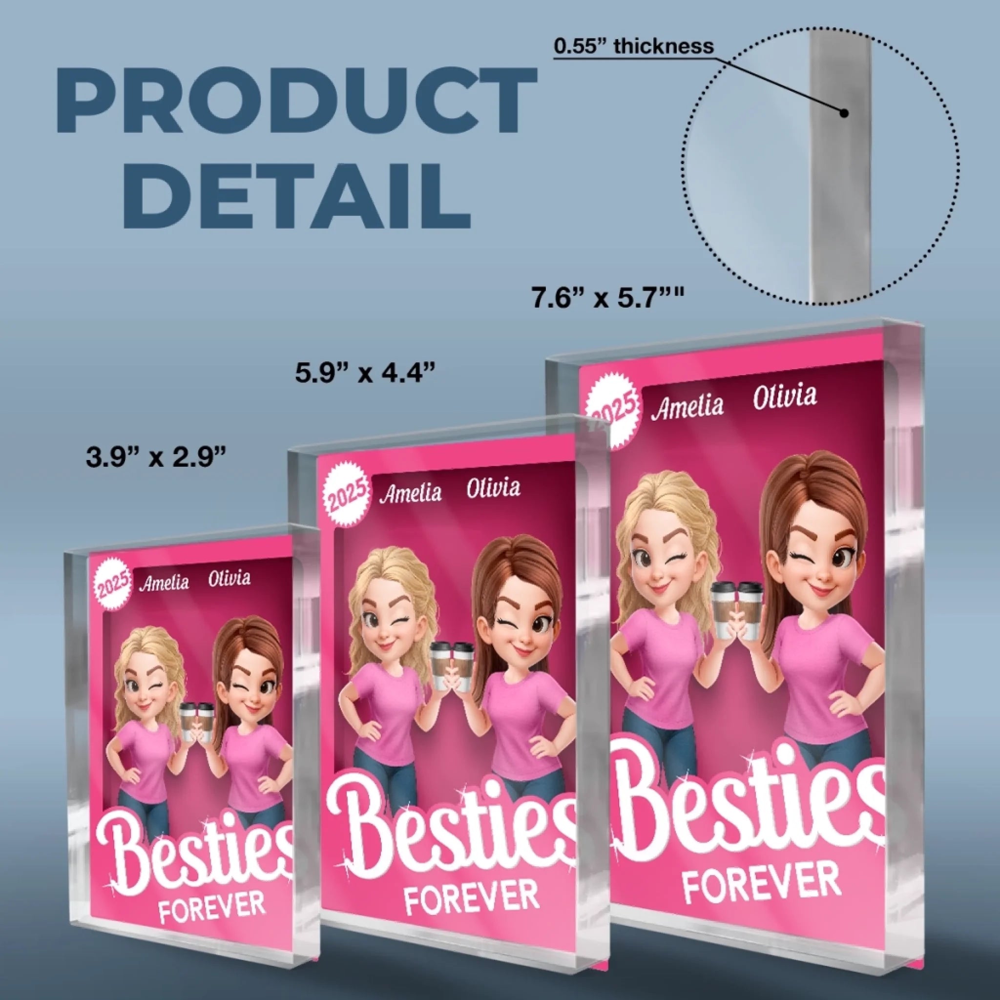 Crafted from durable clear acrylic, this plaque features vibrant printed artwork and a playful action-figure twist. Personalize it with your names and a heartfelt message to turn it into a meaningful keepsake. No frame needed – it stands sturdily on any desk, shelf, or dresser.