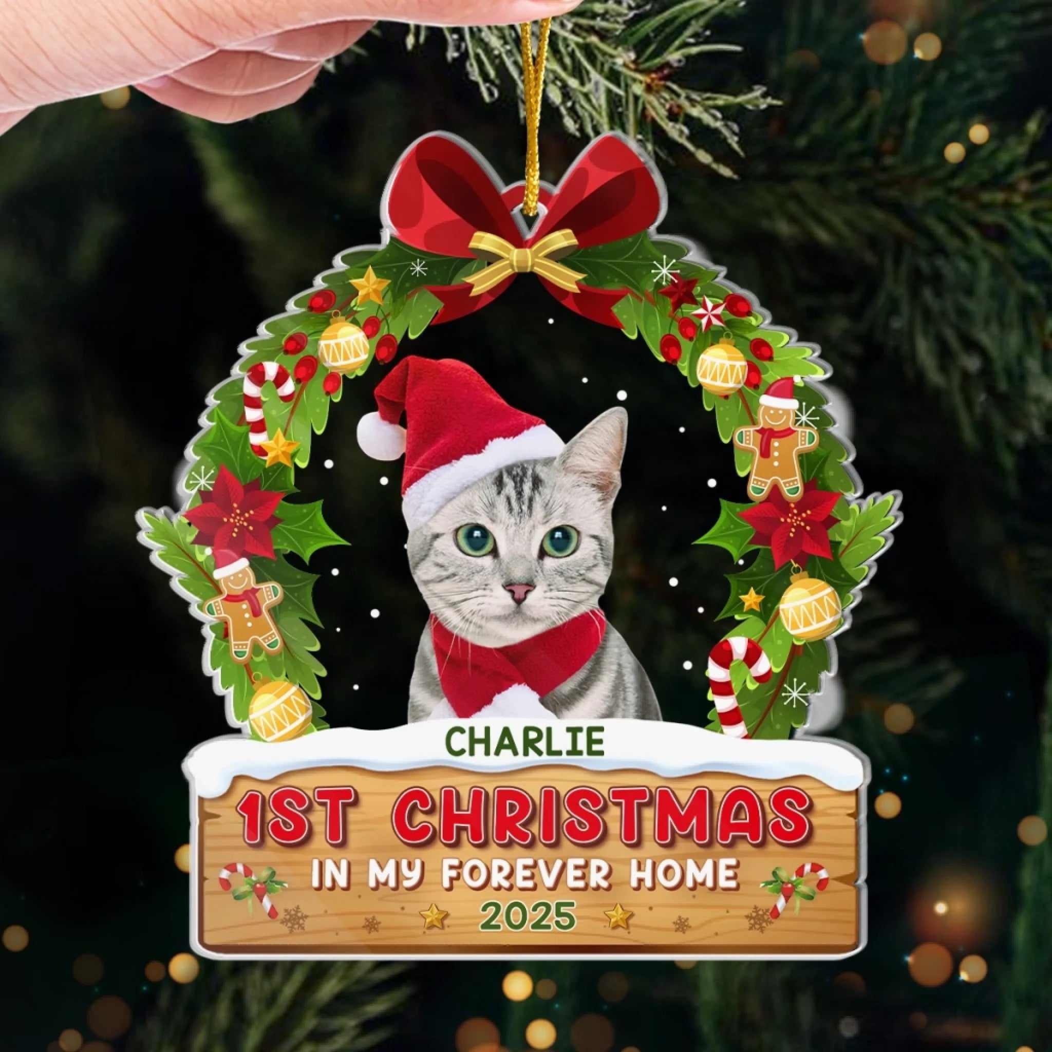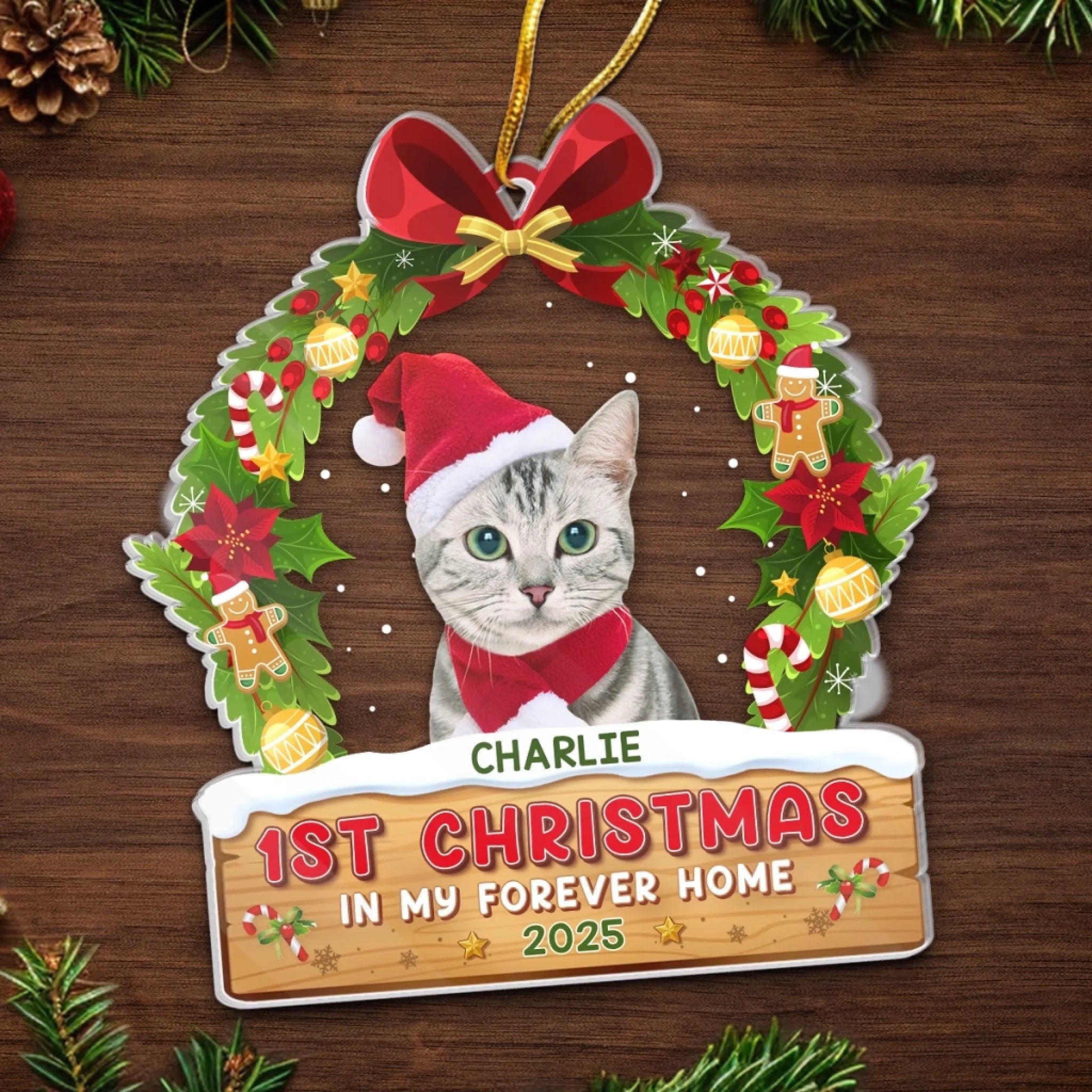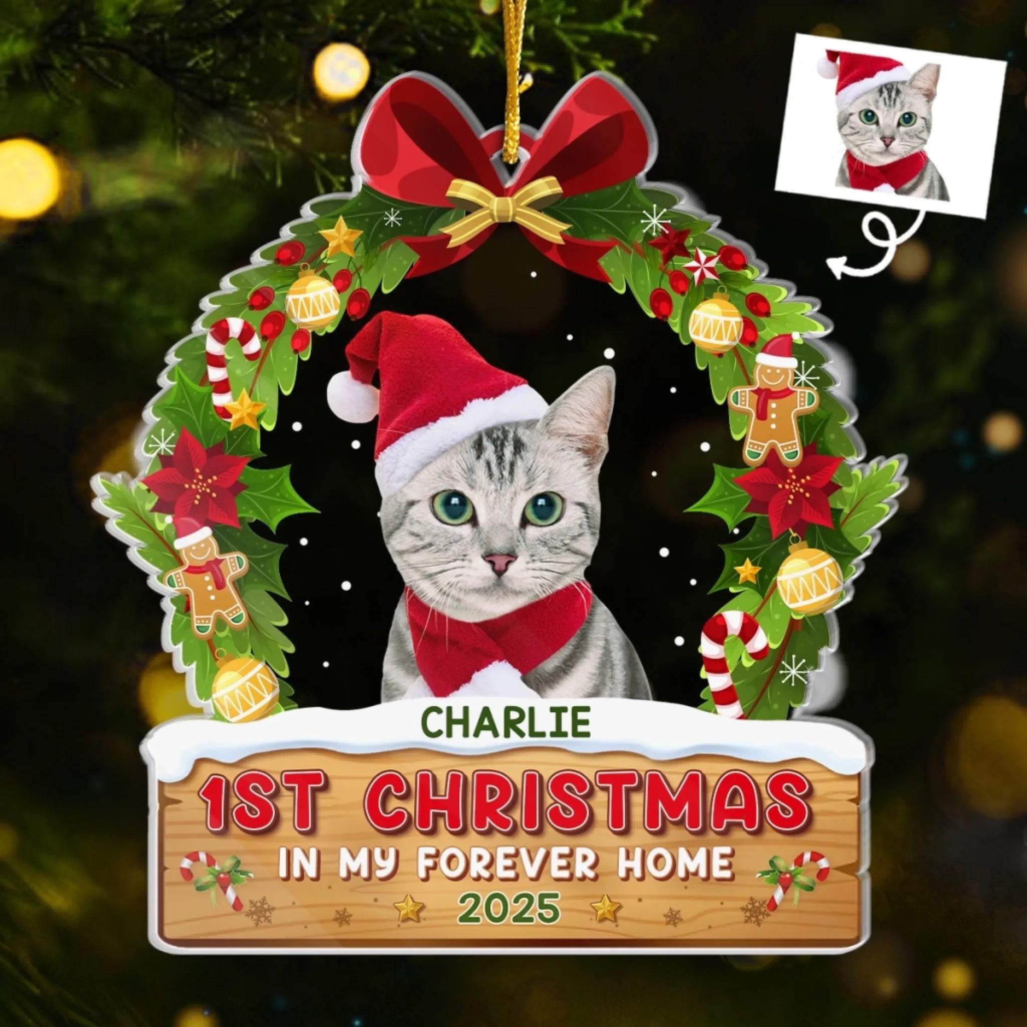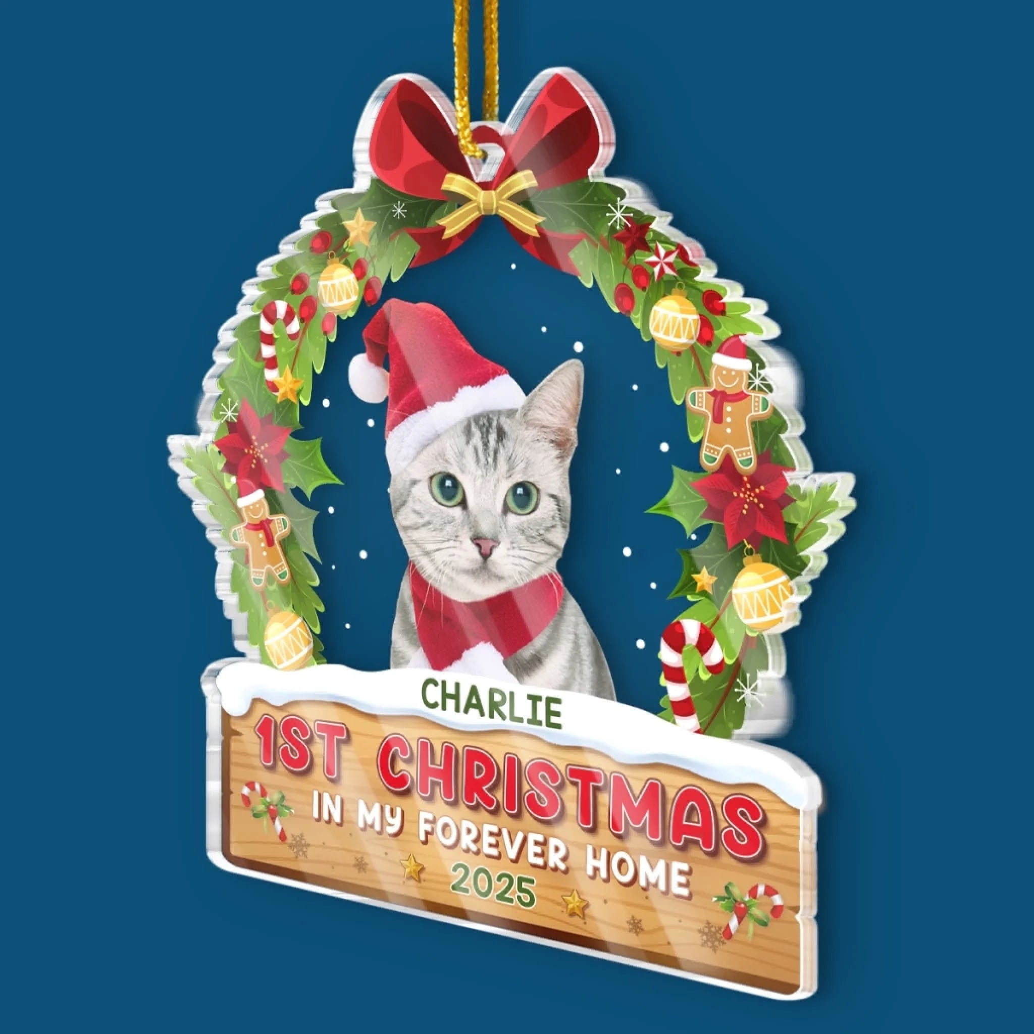 Custom Photo Acrylic Ornament - Personalized Pet Christmas Memorial Sympathy Gifts For Dogs, Cats - Forever In Our Hearts, Our Faithful Friend