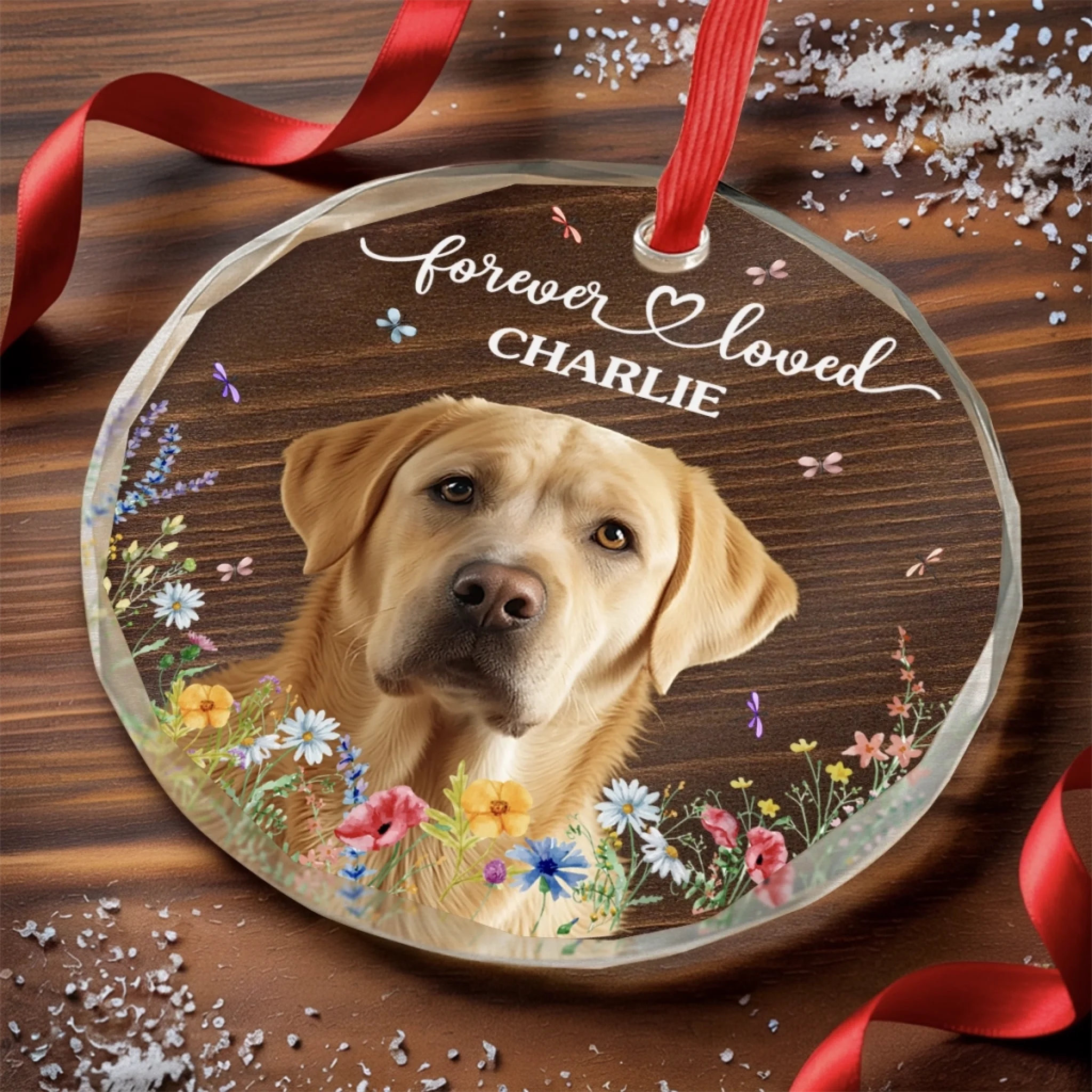 Custom Photo Circle Glass Ornament - Personalized Pet Christmas Memorial Sympathy Gifts For Dogs, Cats - Love That Never Fades