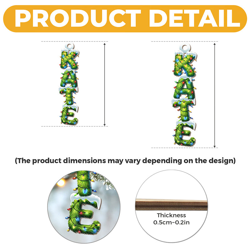 Custom Pine Tree Letter Wooden Ornament - Personalized Christmas Birthday Gifts For Mom, Dad, Brother, Sister, Kids - Evergreen Hearts
