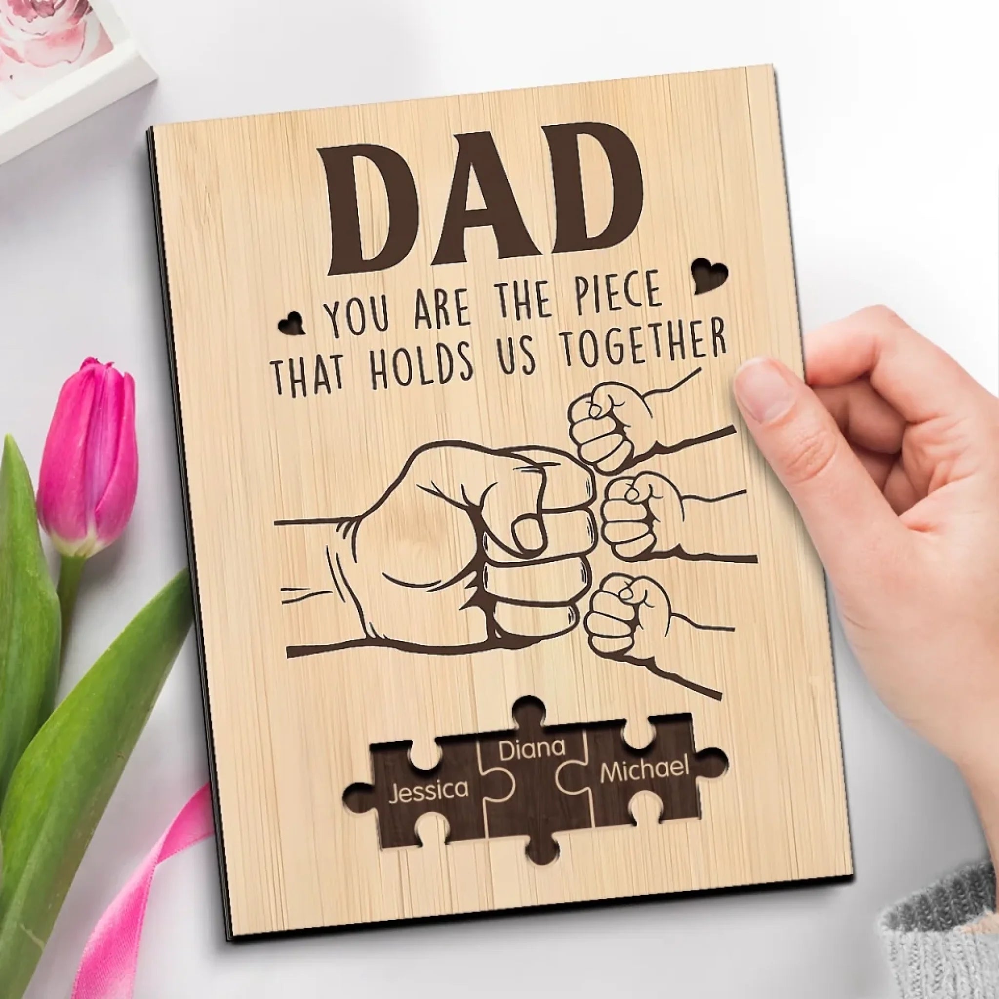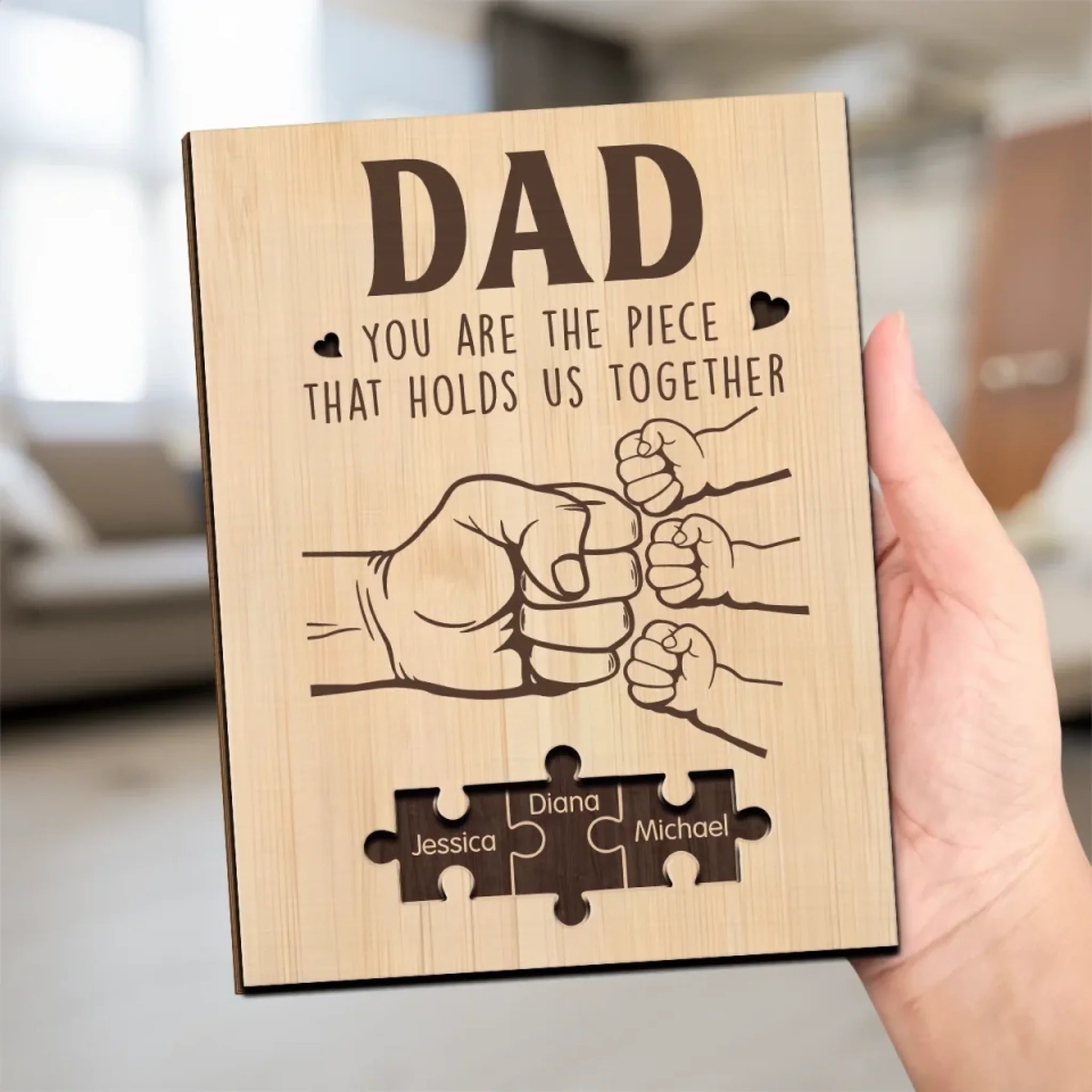 Dad, You Are The Piece That Holds Us Together - Family Personalized Custom 2-Layered Wooden Plaque With Stand - Father's Day, Gift For Dad, Grandpa