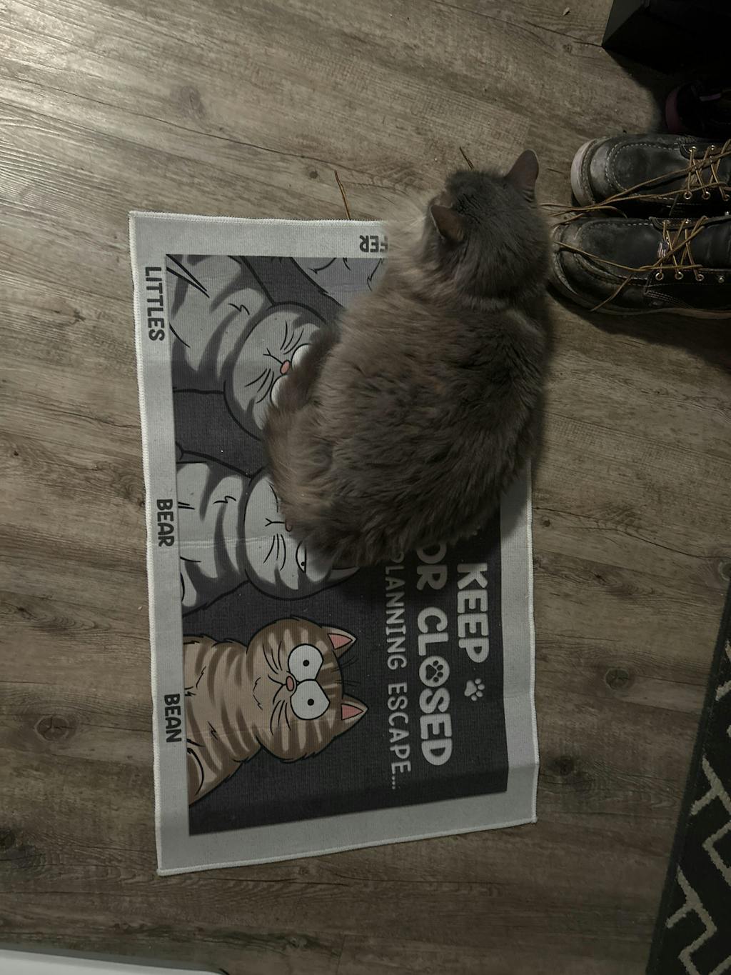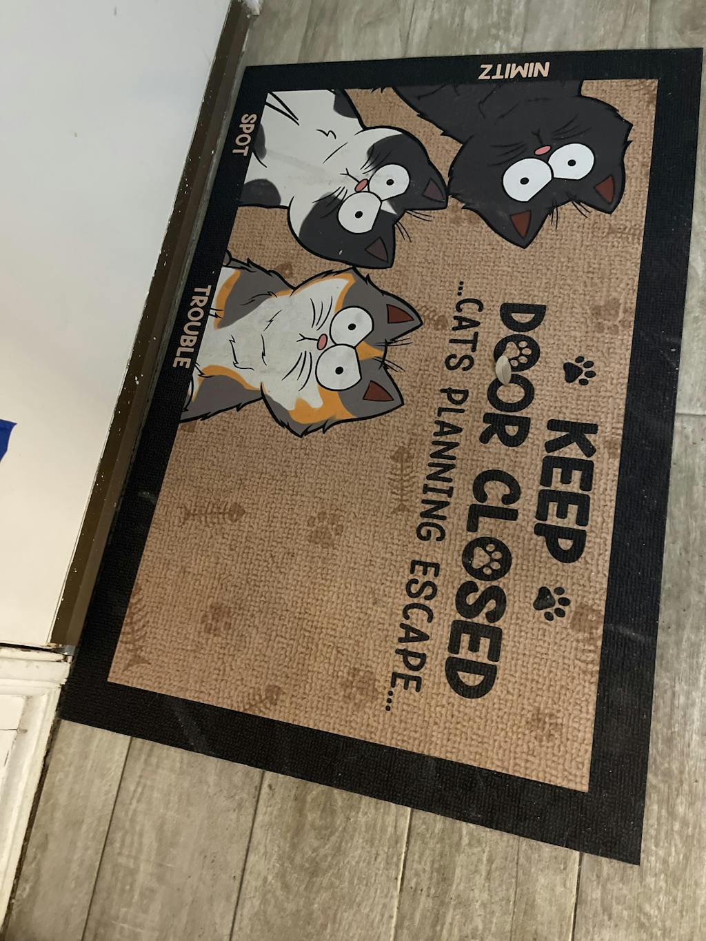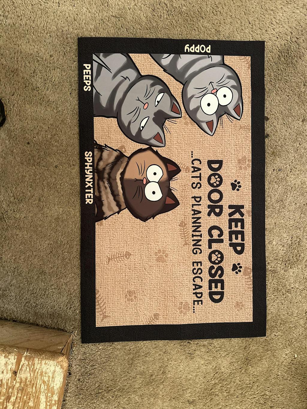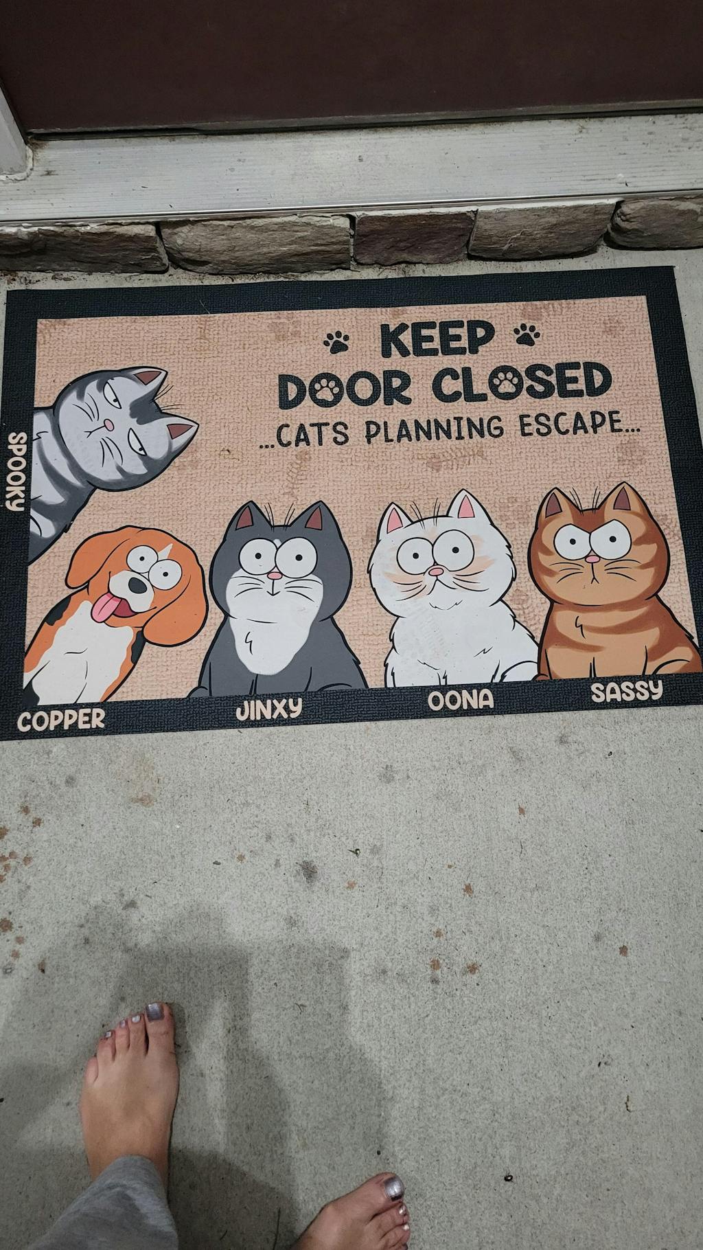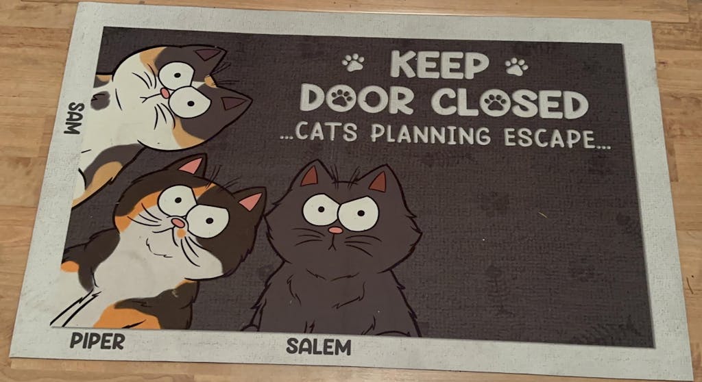 Message: "Keep door closed - Cats/Dogs/Pets planning escape...".