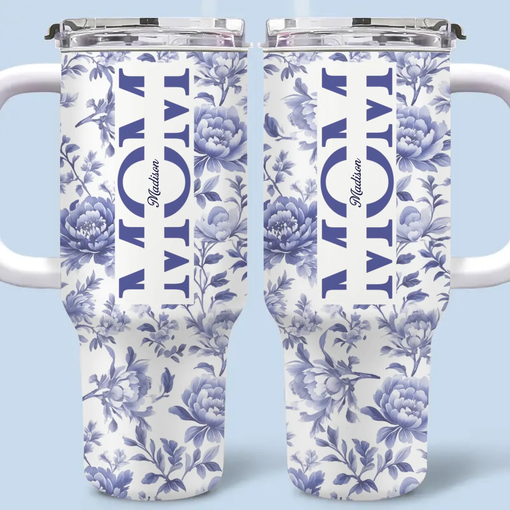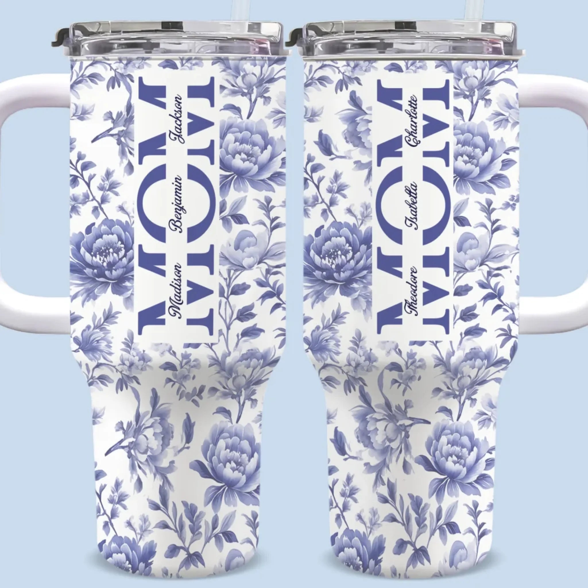 Mom, A Name Woven In Petals And Love - Family Personalized Custom 40 Oz Stainless Steel Tumbler With Handle - Mother's Day, Gift For Mom, Grandma