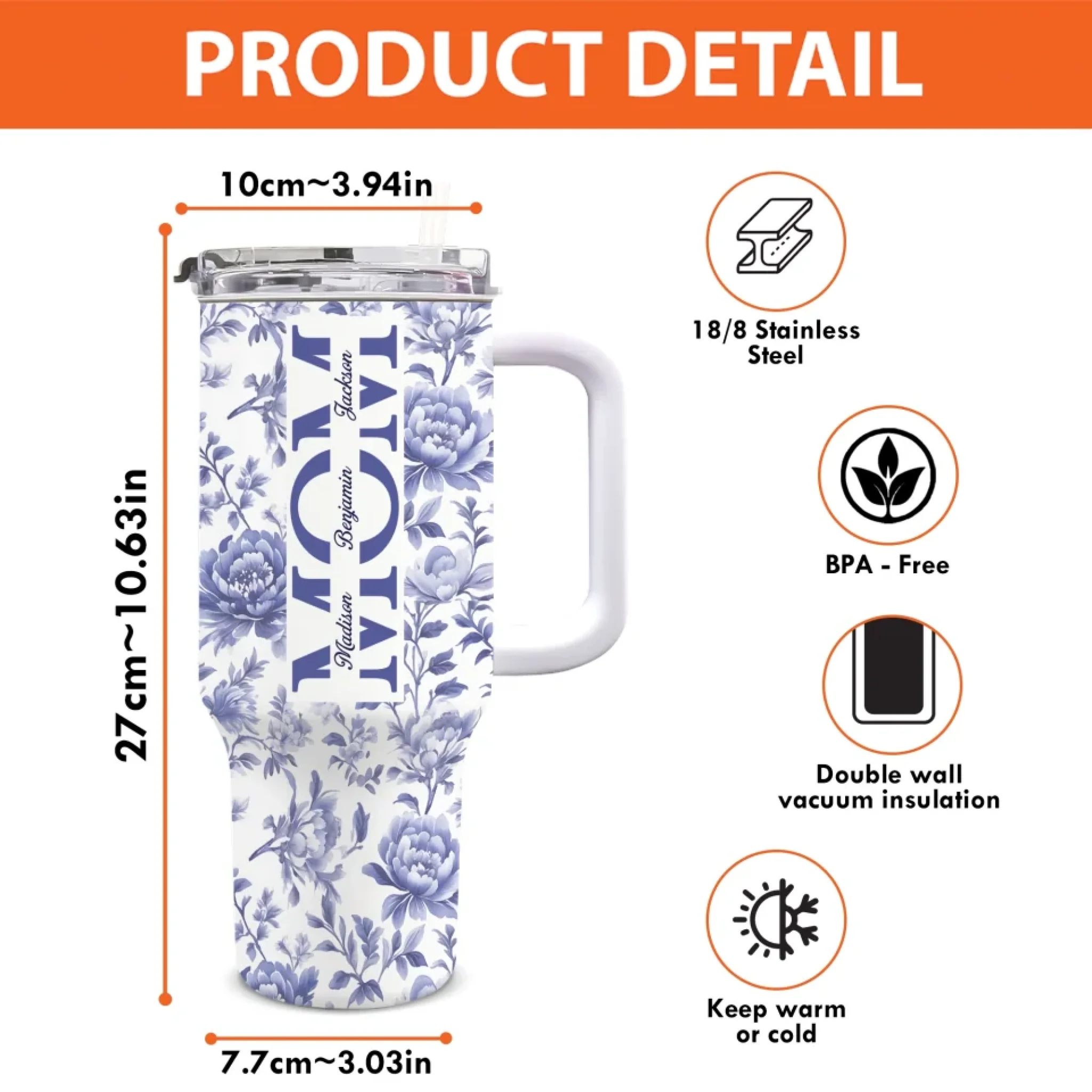 Package included: 1 tumbler (with your custom design).