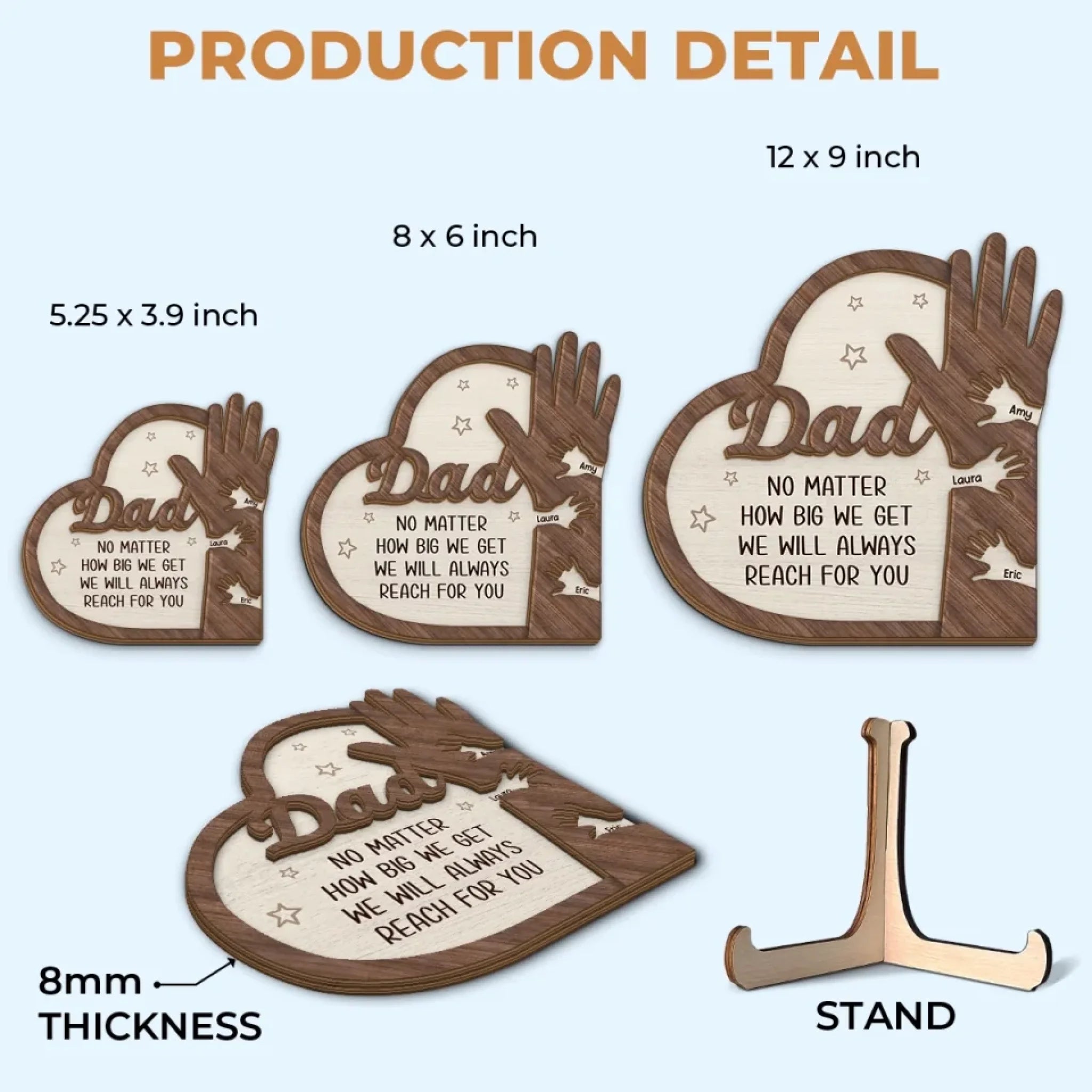 No Matter How Big I Get, I Will Always Reach For You - Family Personalized Custom 2-Layered Wooden Plaque With Stand - Father's Day, Gift For Dad, Grandpa