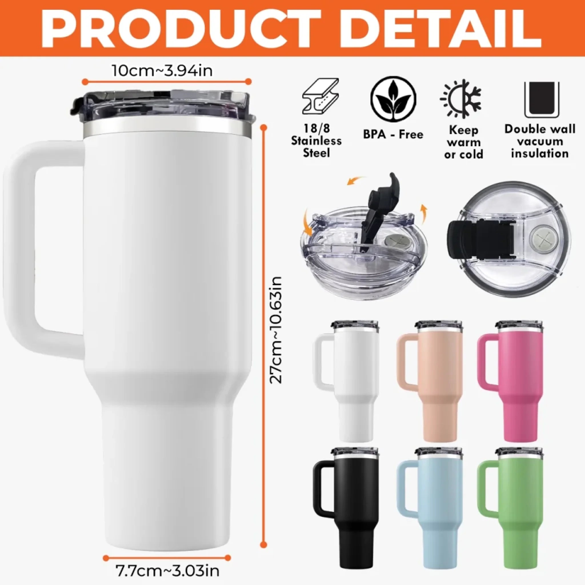 Our custom engraved 40oz tumbler is a cherished keepsake for you or your loved ones. With a sturdy handle and spill-resistant lid, it’s perfect for busy mornings, road trips, or peaceful moments at home, serving as a daily reminder of love and care. This is the perfect gift for anyone, suitable for all occasions: birthdays, holidays, anniversaries, graduations, Valentine's Day, Mother's Day, Father's Day, and just because! Whether for friends, family, or that special someone, this versatile gift is guaranteed to bring joy and make lasting memories.